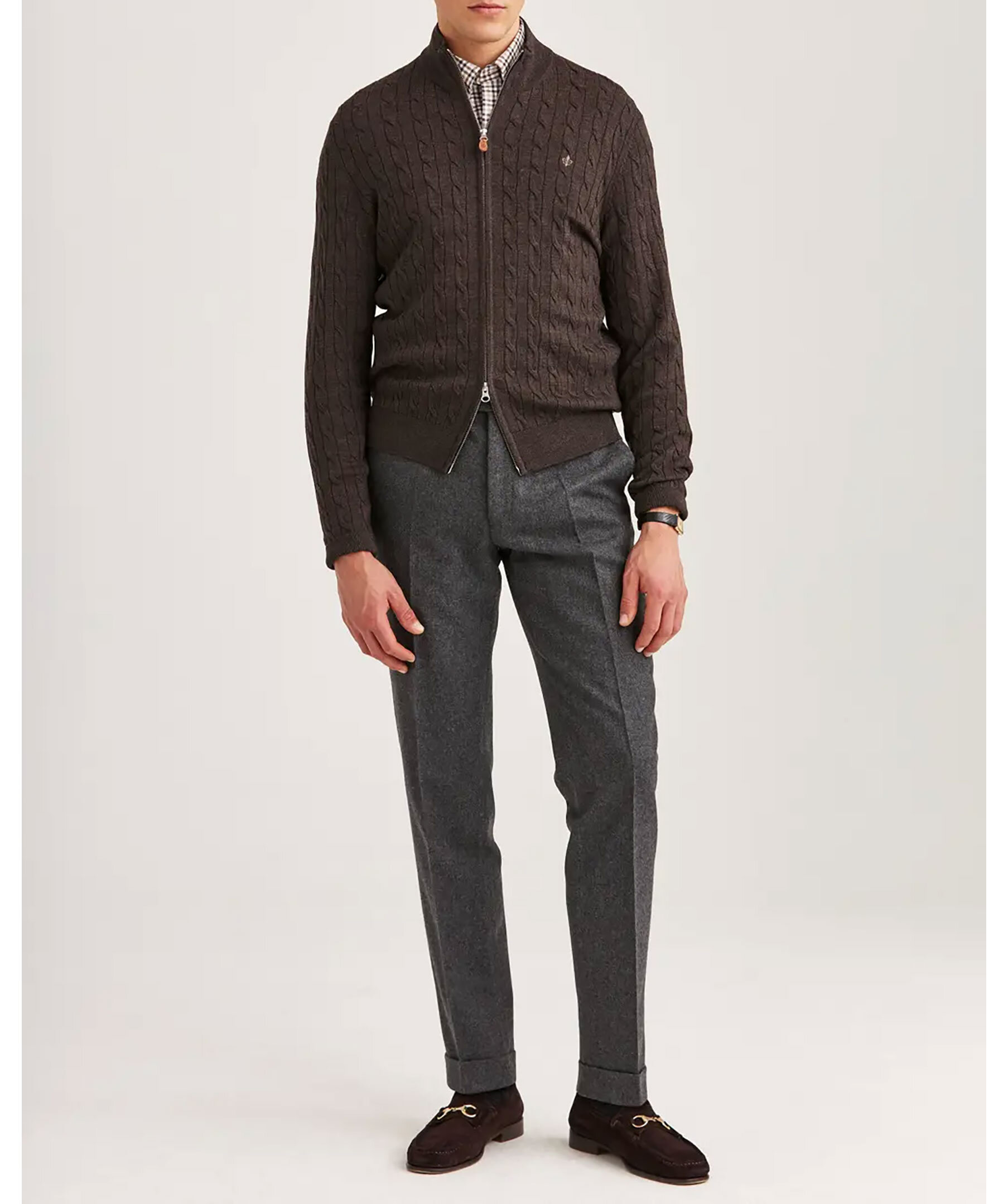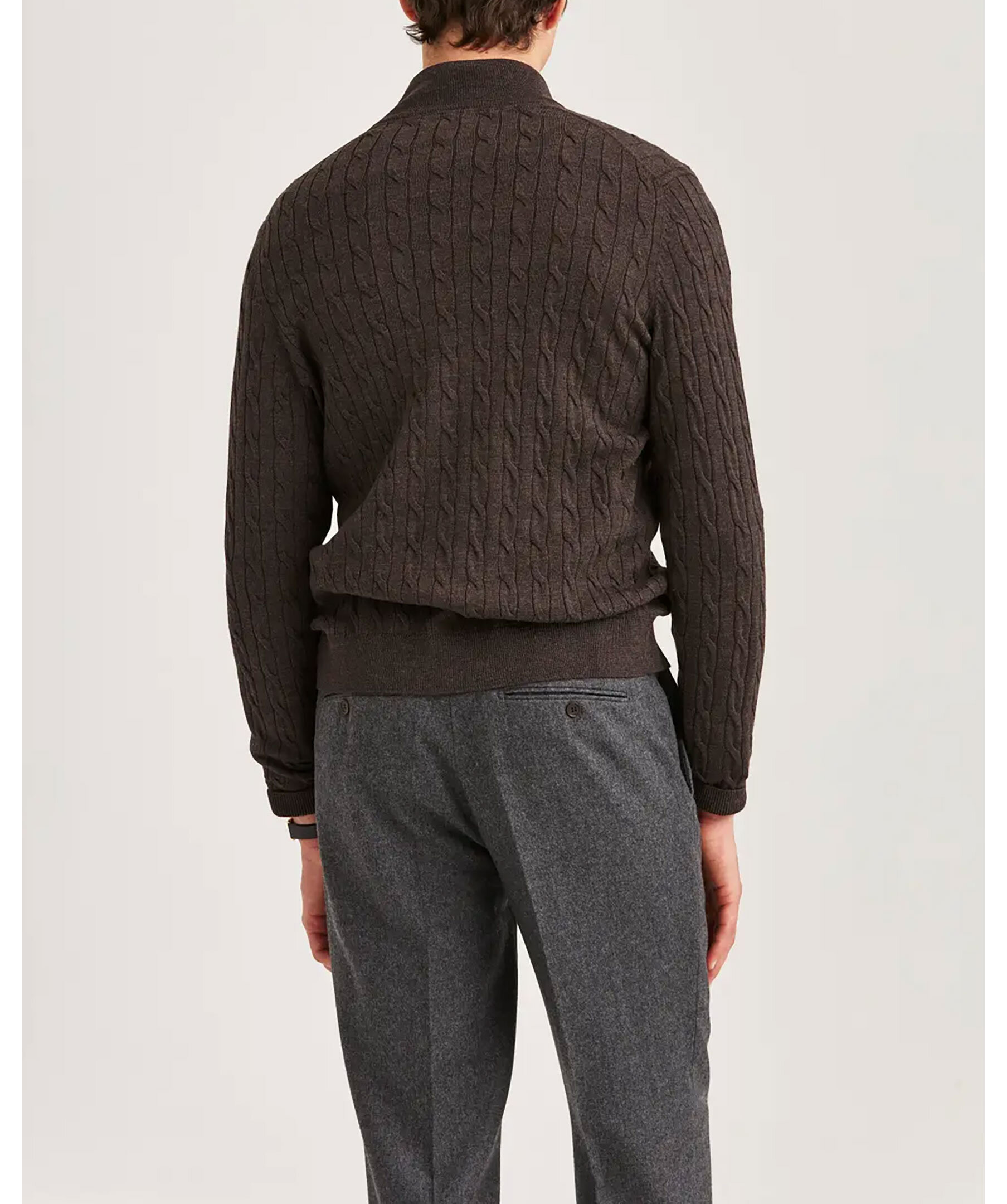 Morris. Merino cable zip cardigan - Brun