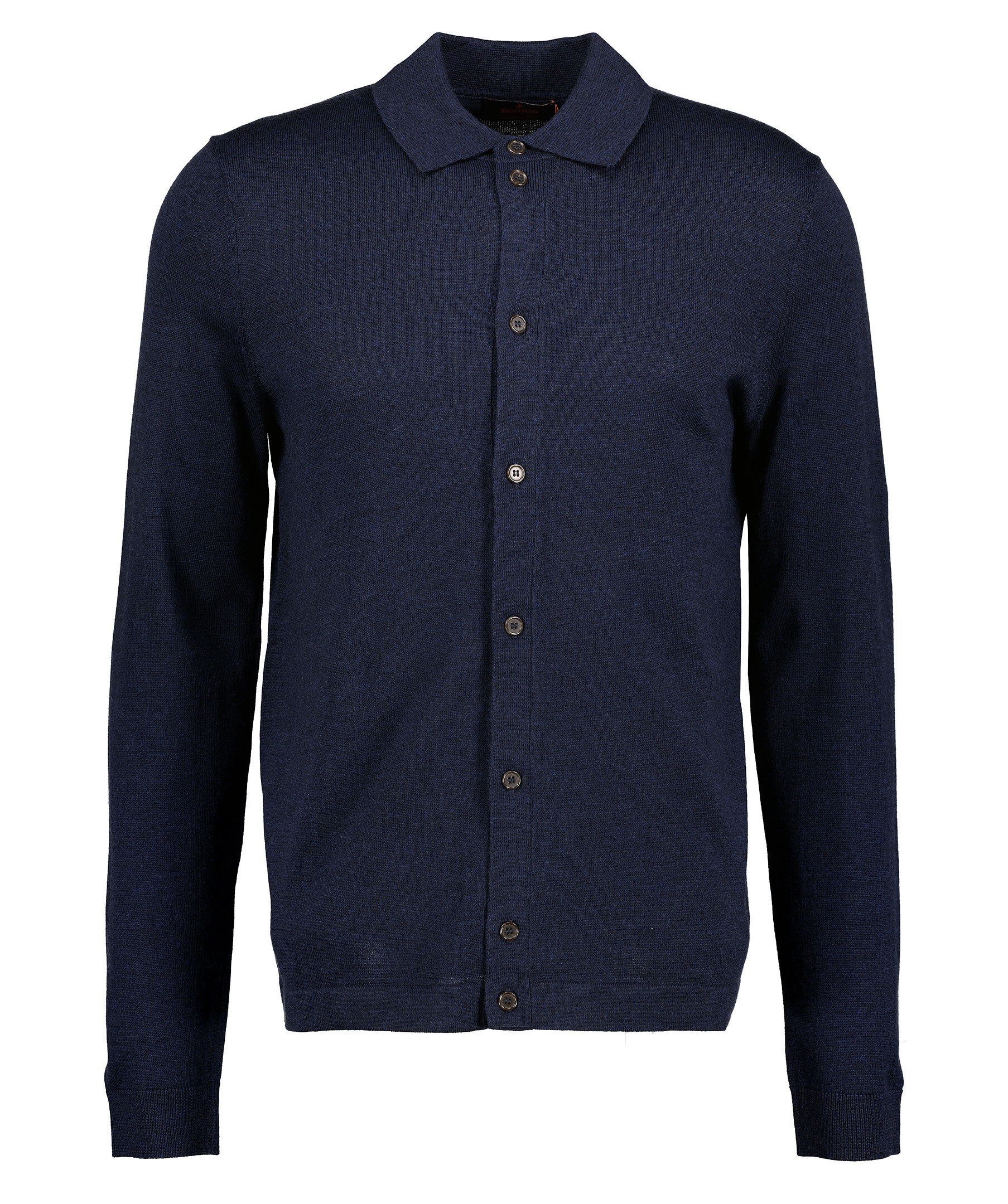 Marinblå skjorta från Morris. Tillverkad av 100% merinoull från Biella. Har en skjortkrage, knäppning framtill och dekorativa fully fashion detaljer. Denna skjorta är perfekt för de tillfällen när du vill se snygg och välklädd ut men inte vill bära kavaj. Lätt att matcha med en uppklädd byxa eller med jeans för en mer avslappnad look. Normal passform.