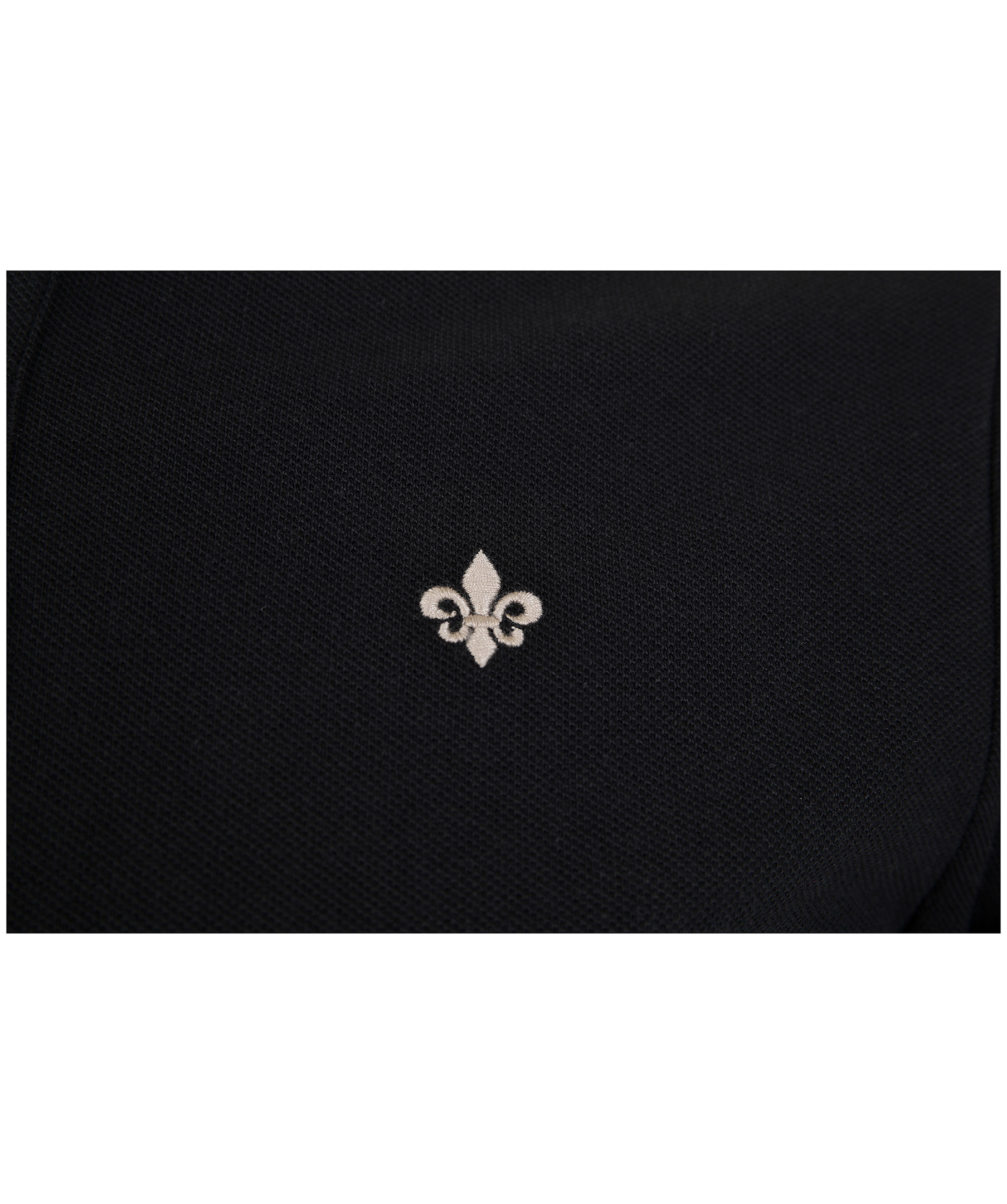 Svart pikétröja från Morris. Tillverkad i 100% bomull. Broderad lilja på sidan av bröstet, normal passform. Små slitsar i sidorna.