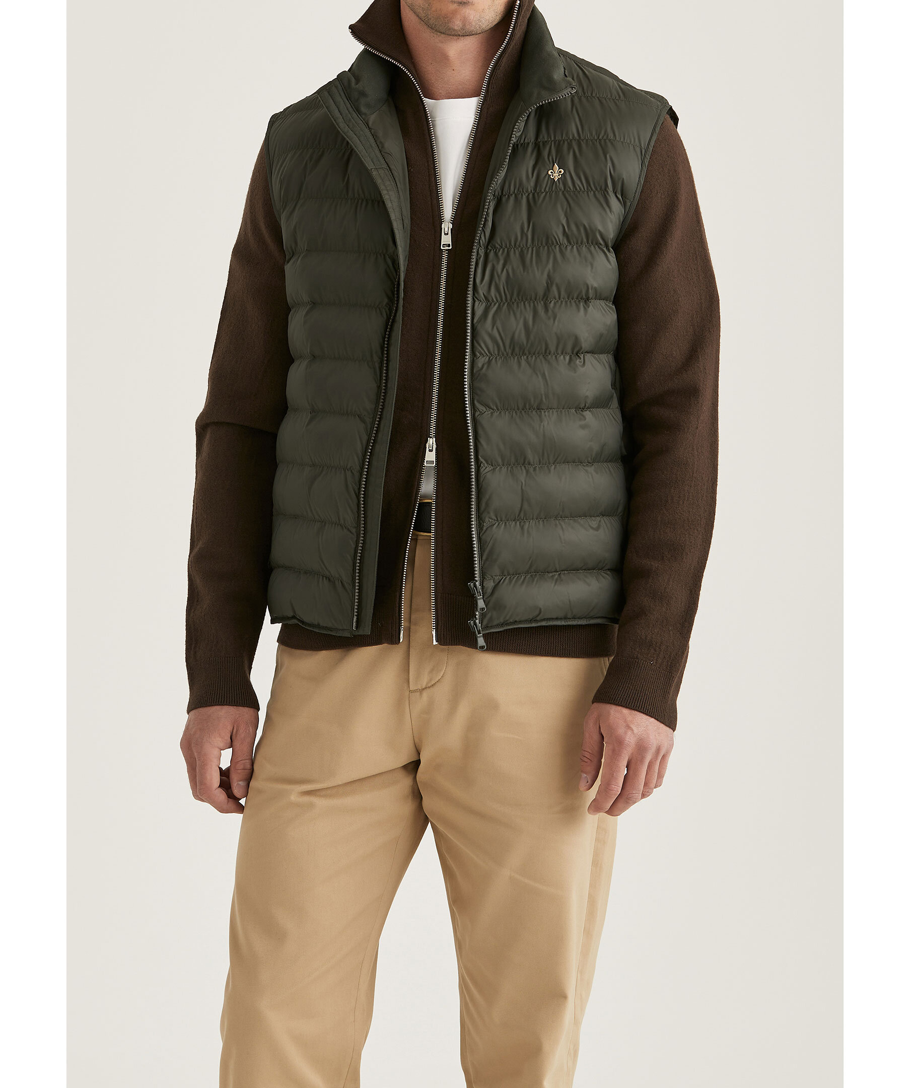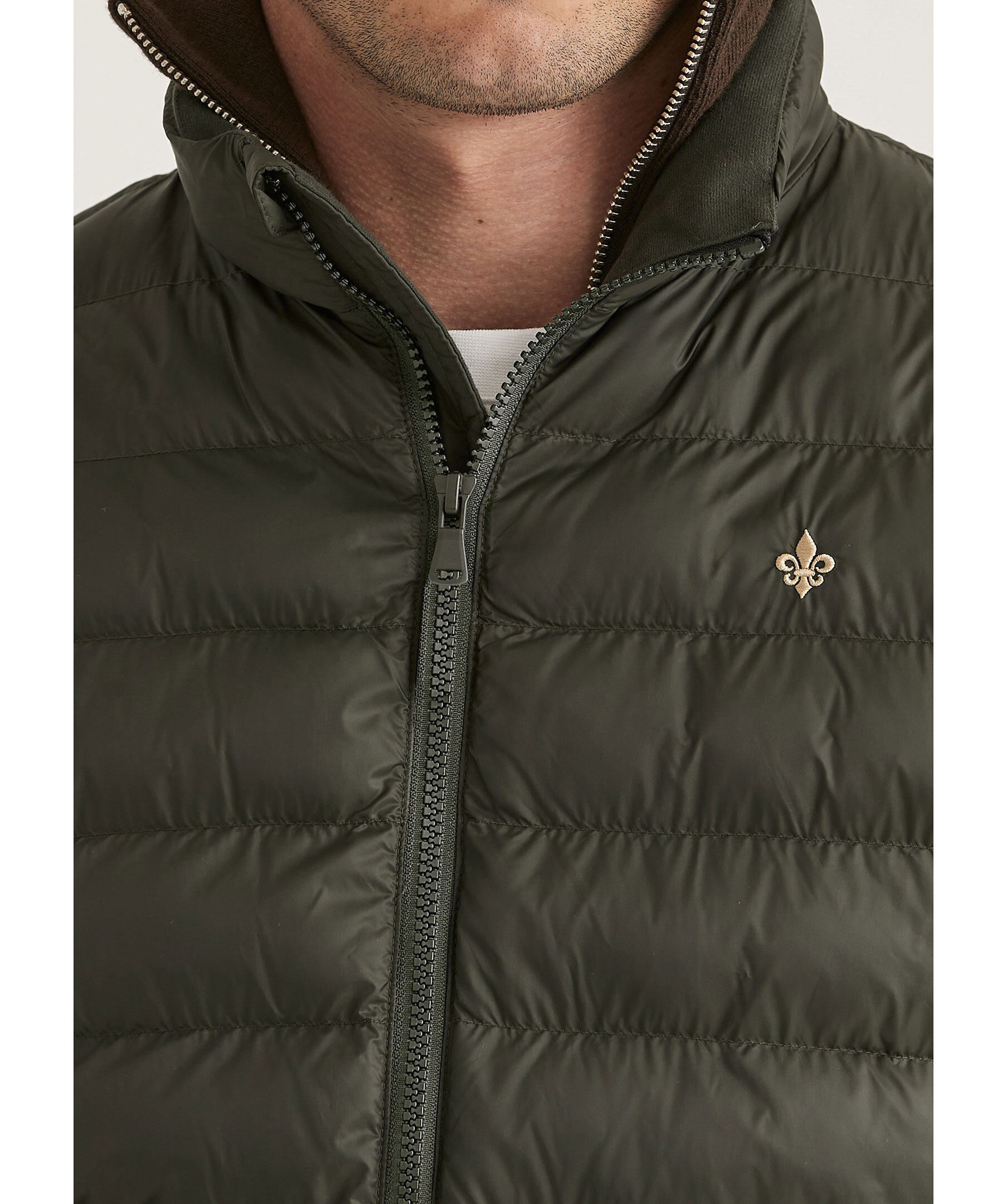Olivgrön väst från Morris. Västen stängs med dragkedja och har två sidfickor med dragkedja samt broderad logotyp på bröstet. Tillverkad i polyamid med polyesterfyllning.