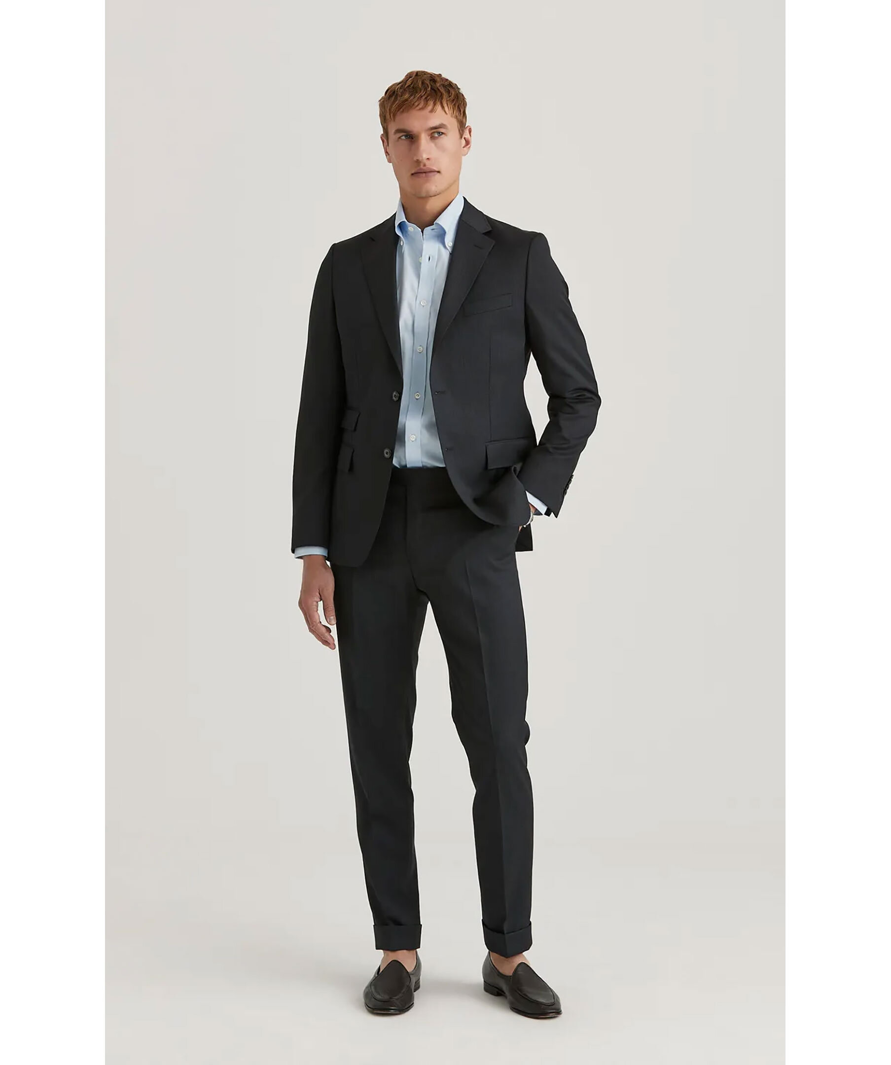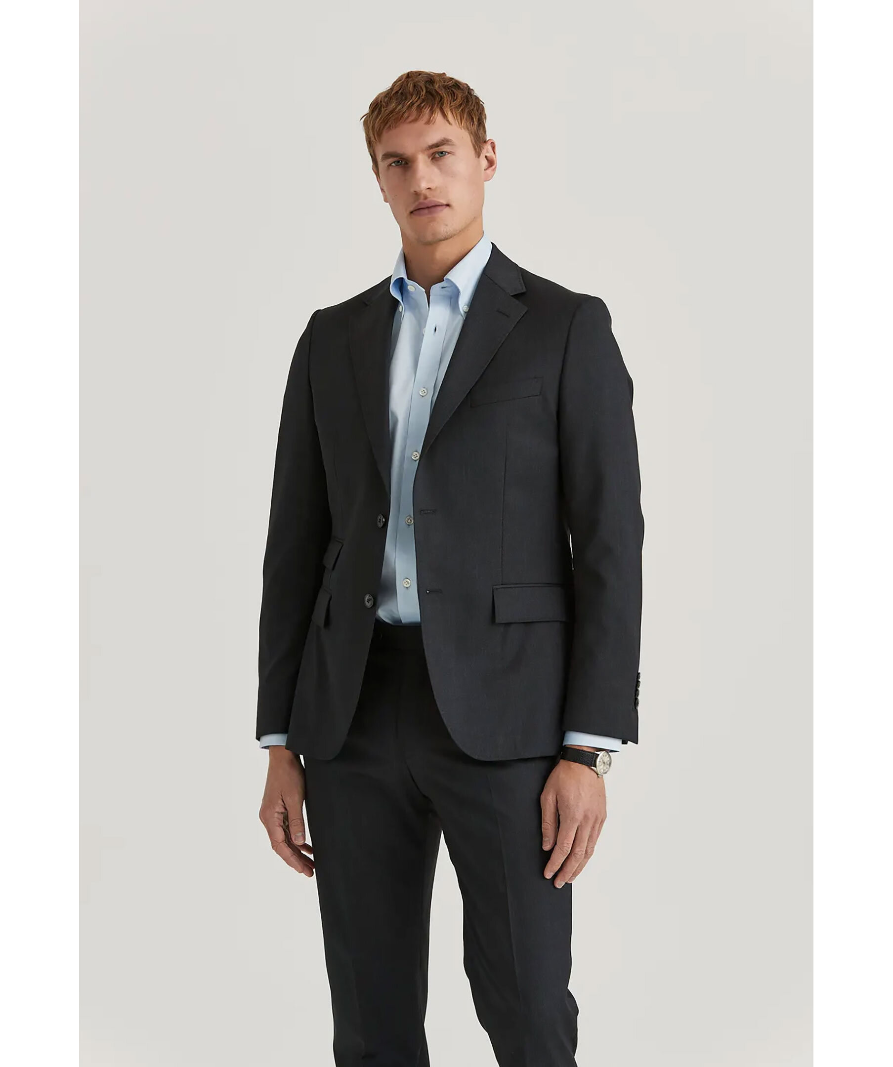 Grå kavaj från Morris Heritage. Enkelknäppt. Tre fickor med lock, snedställd bröstficka på vänster sida. Två innerfickor. Två sprund baktill. Tillverkad i 100% Ull. Kavajens passform är slim fit. Fem knappar vid ärmslut.