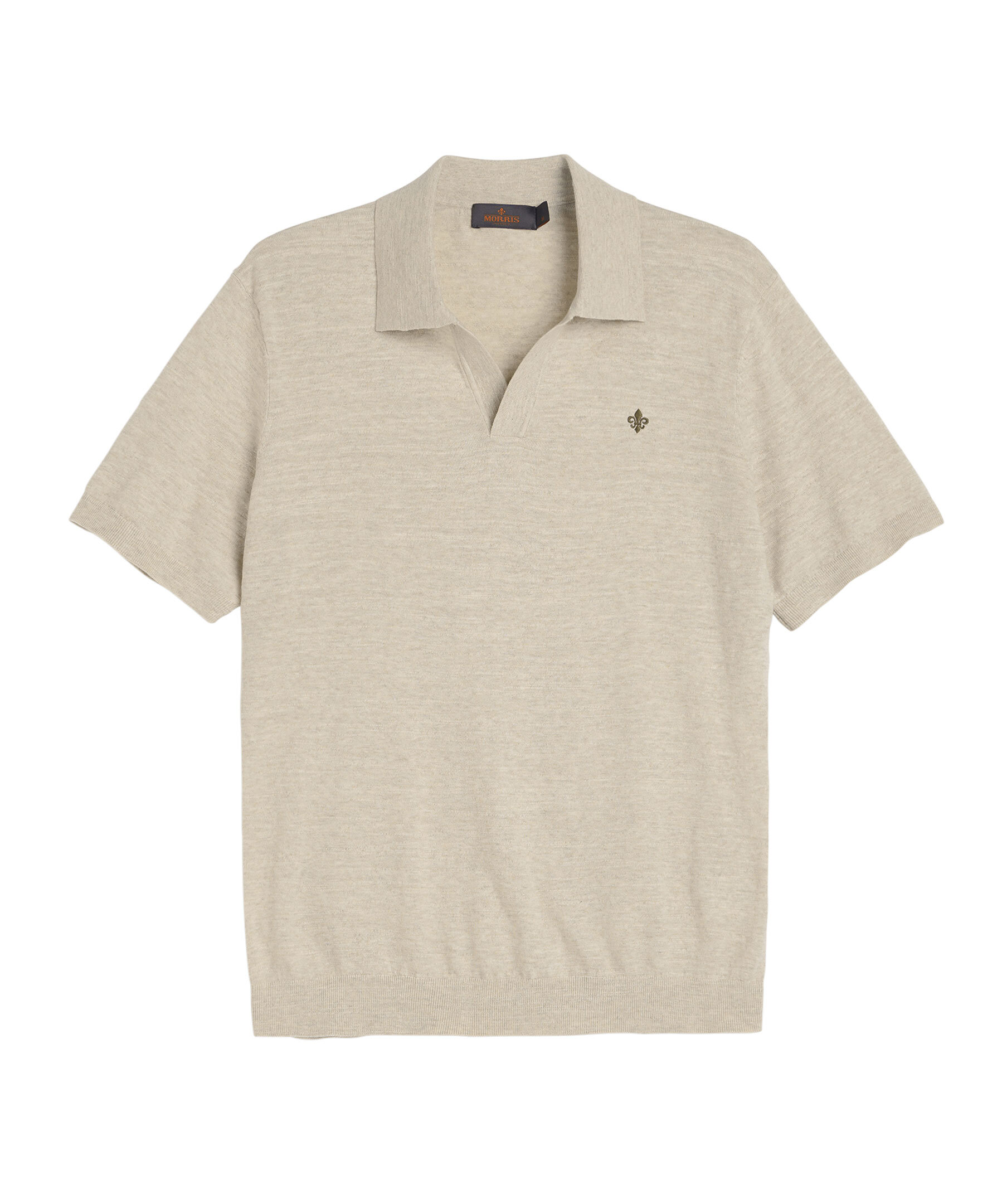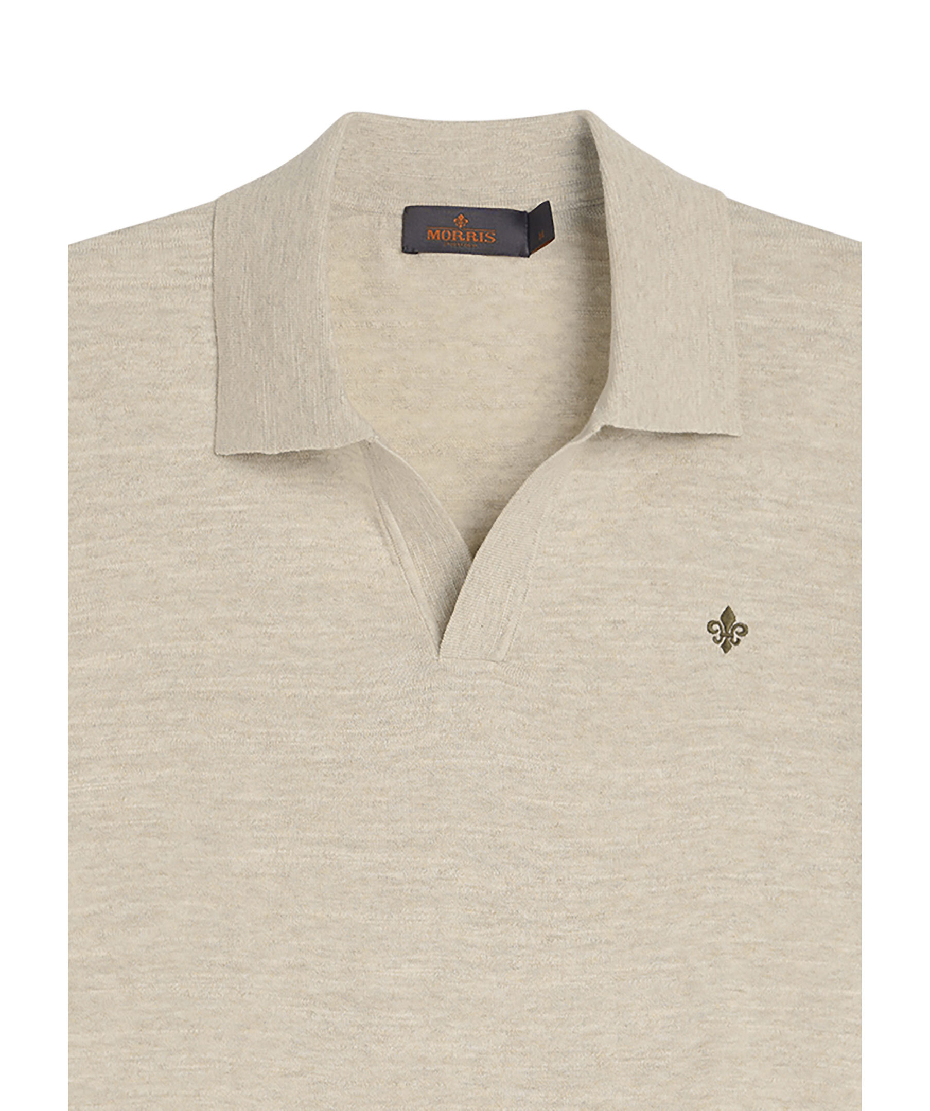 Sandfärgad pikétröja från Morris. Pikén har en klassisk avslappnad resortkrage och dekorativ, broderad lilja på bröstet. Tillverkad i 100% bomull.