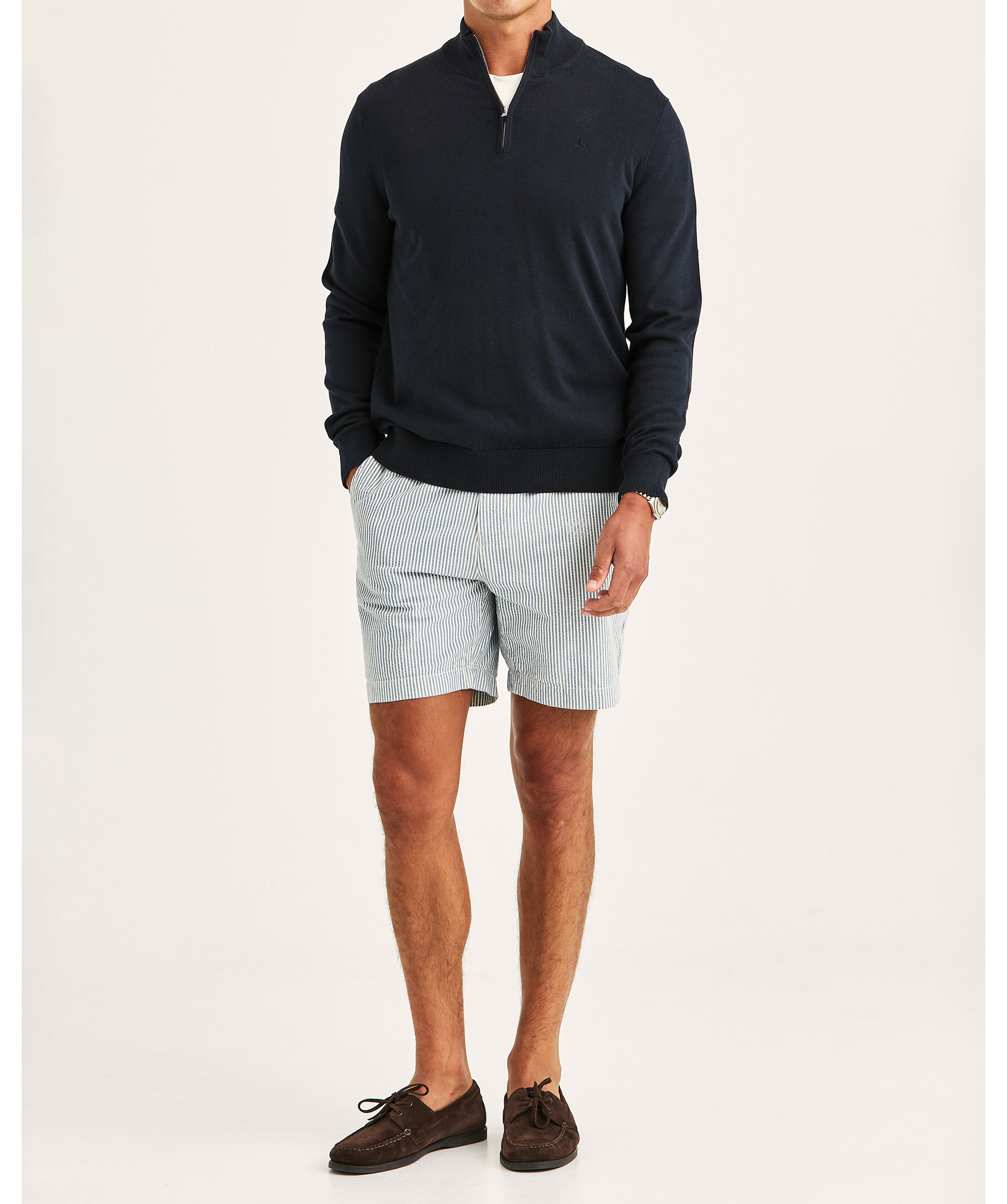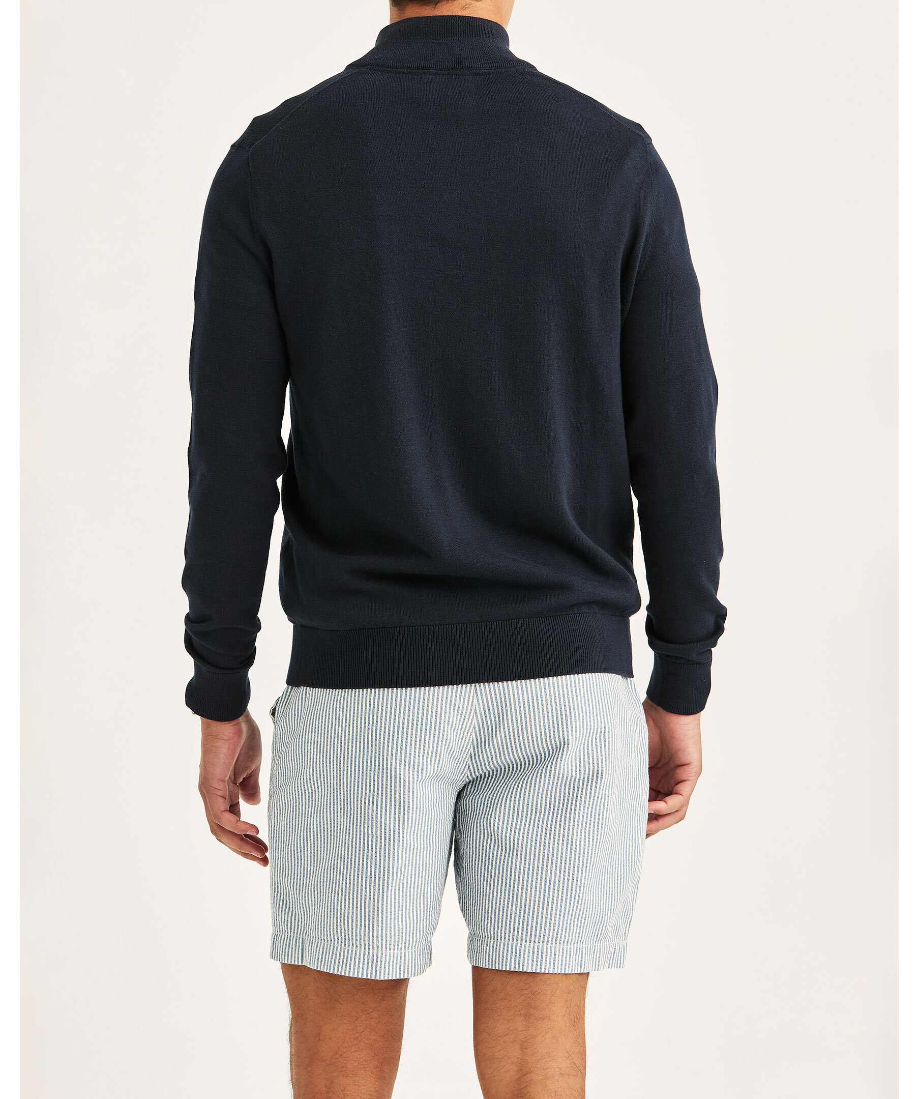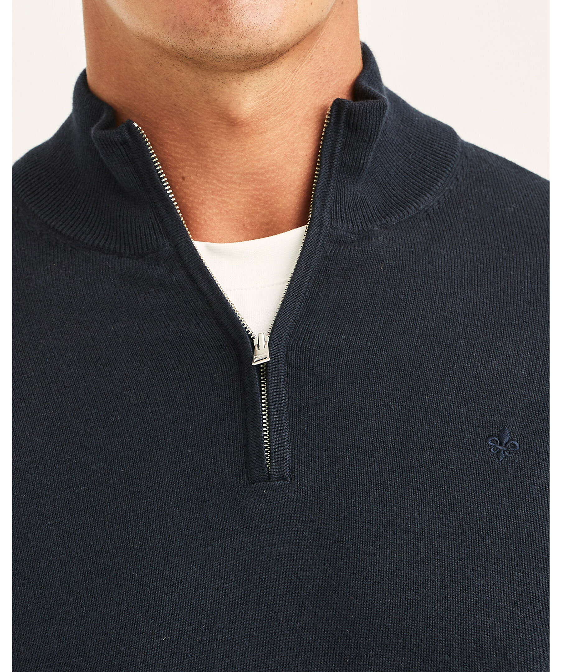 Riley Half Zip från Morris är tillverkad i mjuk bomull med en tung men följsam känsla. Halv zipen på tröjan ger mångsidighet och den broderade Morris-liljan tillför en elegant touch.