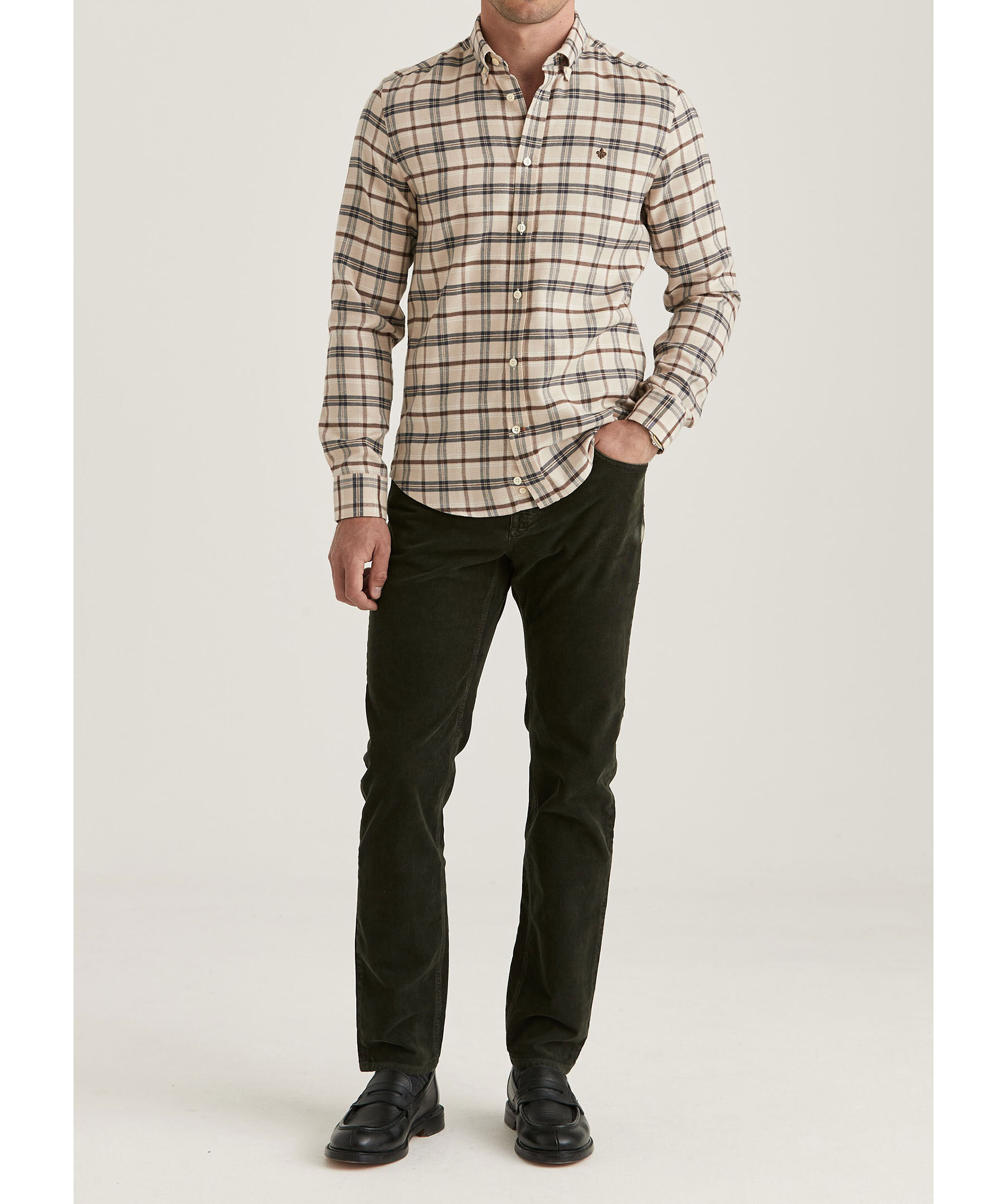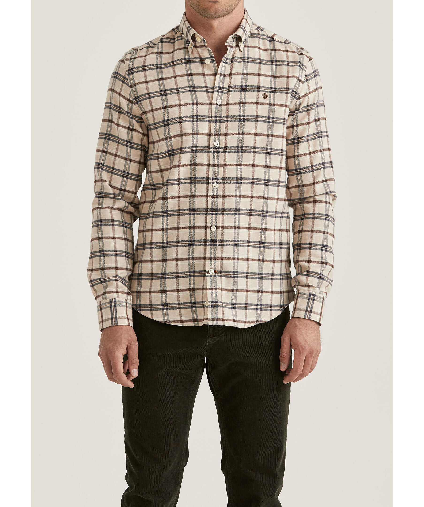 Kamelfärgad, rutig flannelskjorta från Morris. Skjortan har button-down krage och deras broderade signaturlilja på bröstet. Tillverkad i en bomullsblandning.