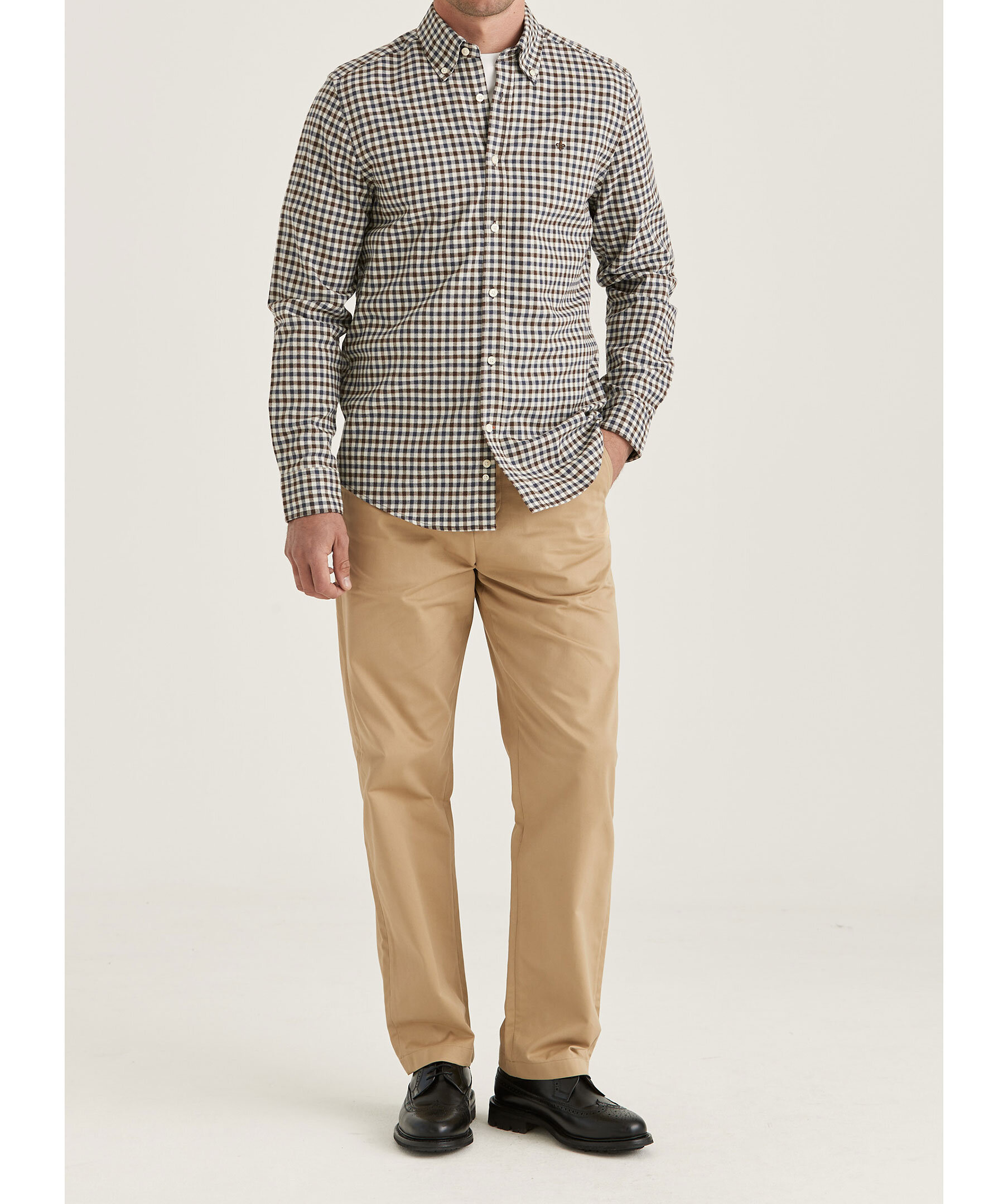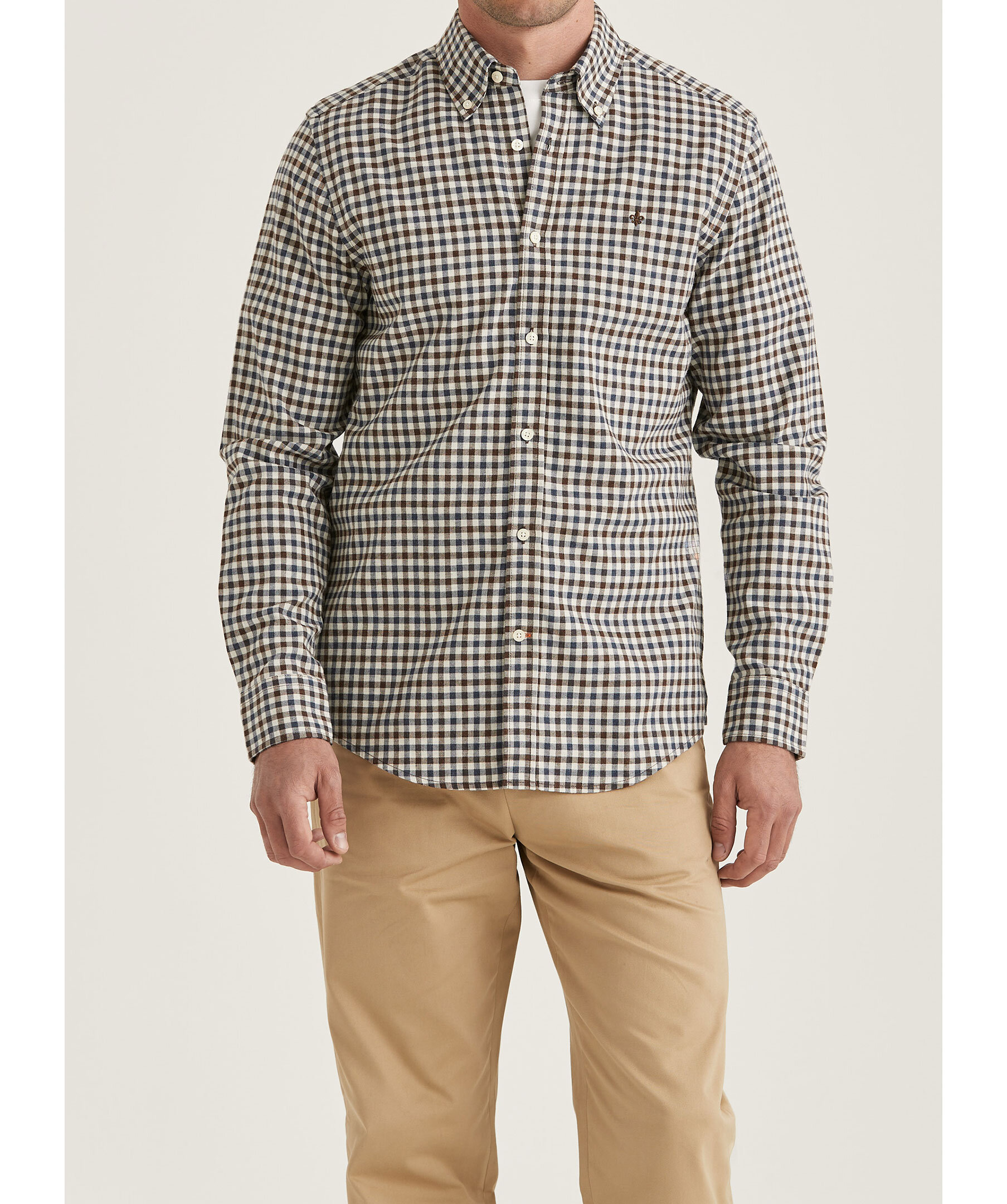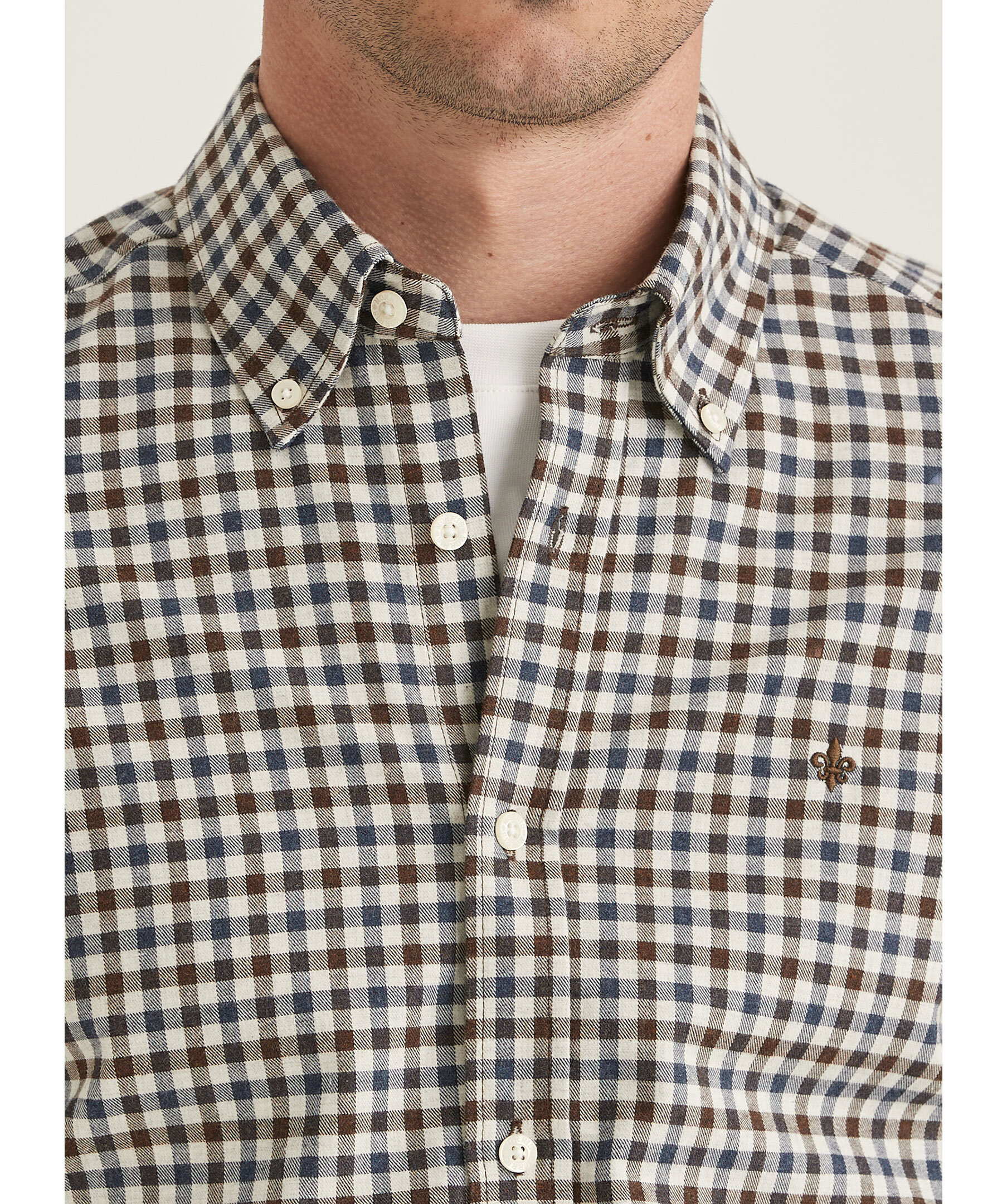 Brunrutig skjorta från Morris. Skjortan har button-down krage, enkel manschett lätt rundad med två knappar samt Morris signaturlilja broderad på vänster bröst. Tillverkad i bomull.