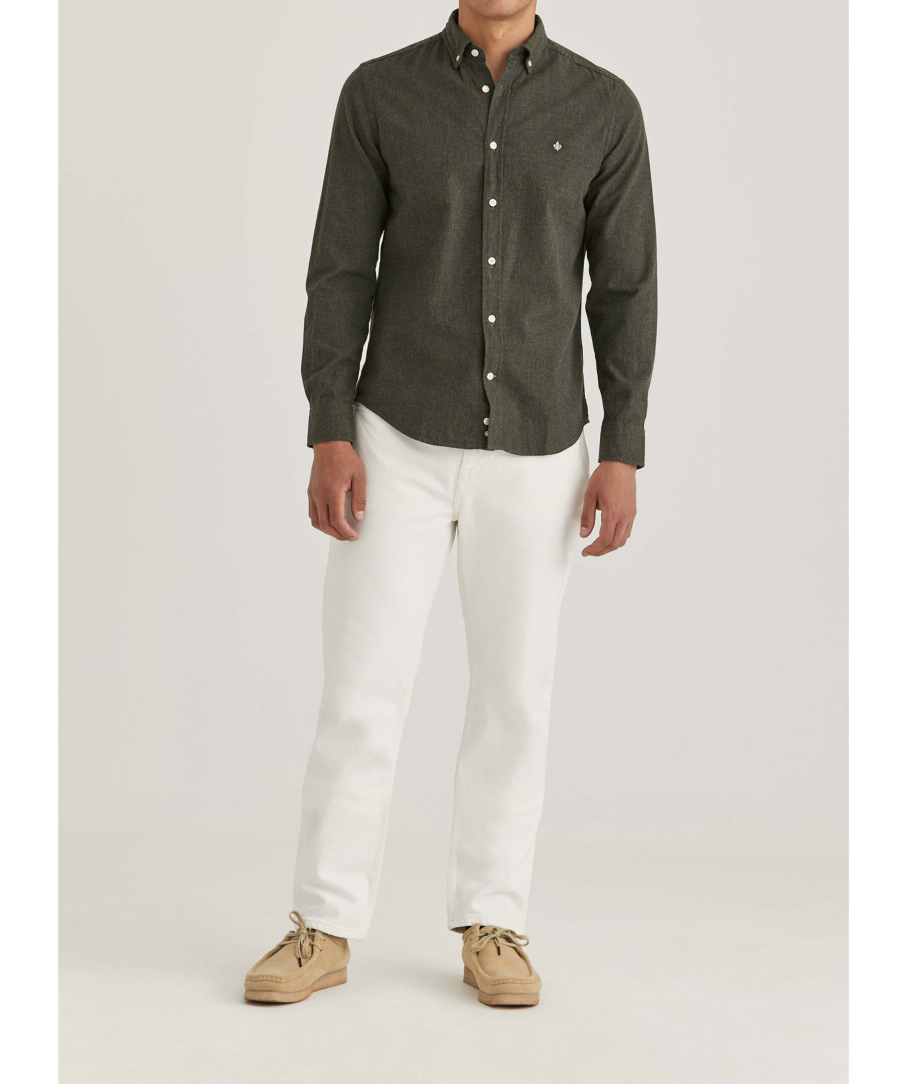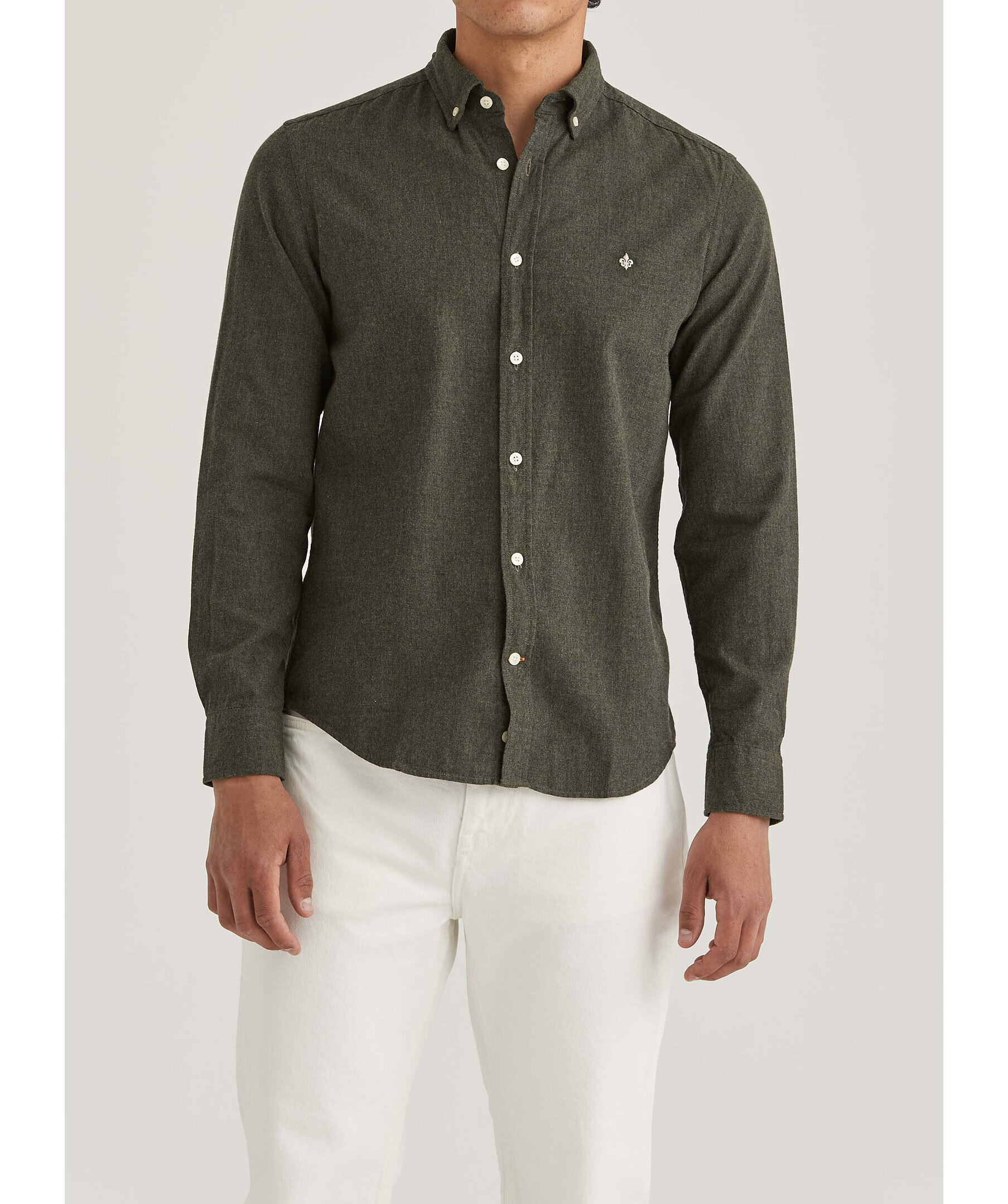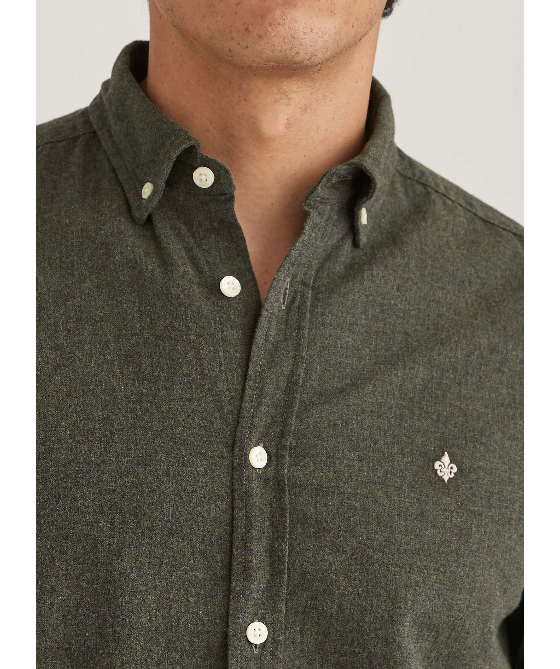 Morris Watts Flannel Shirt Slim - Olivgrön