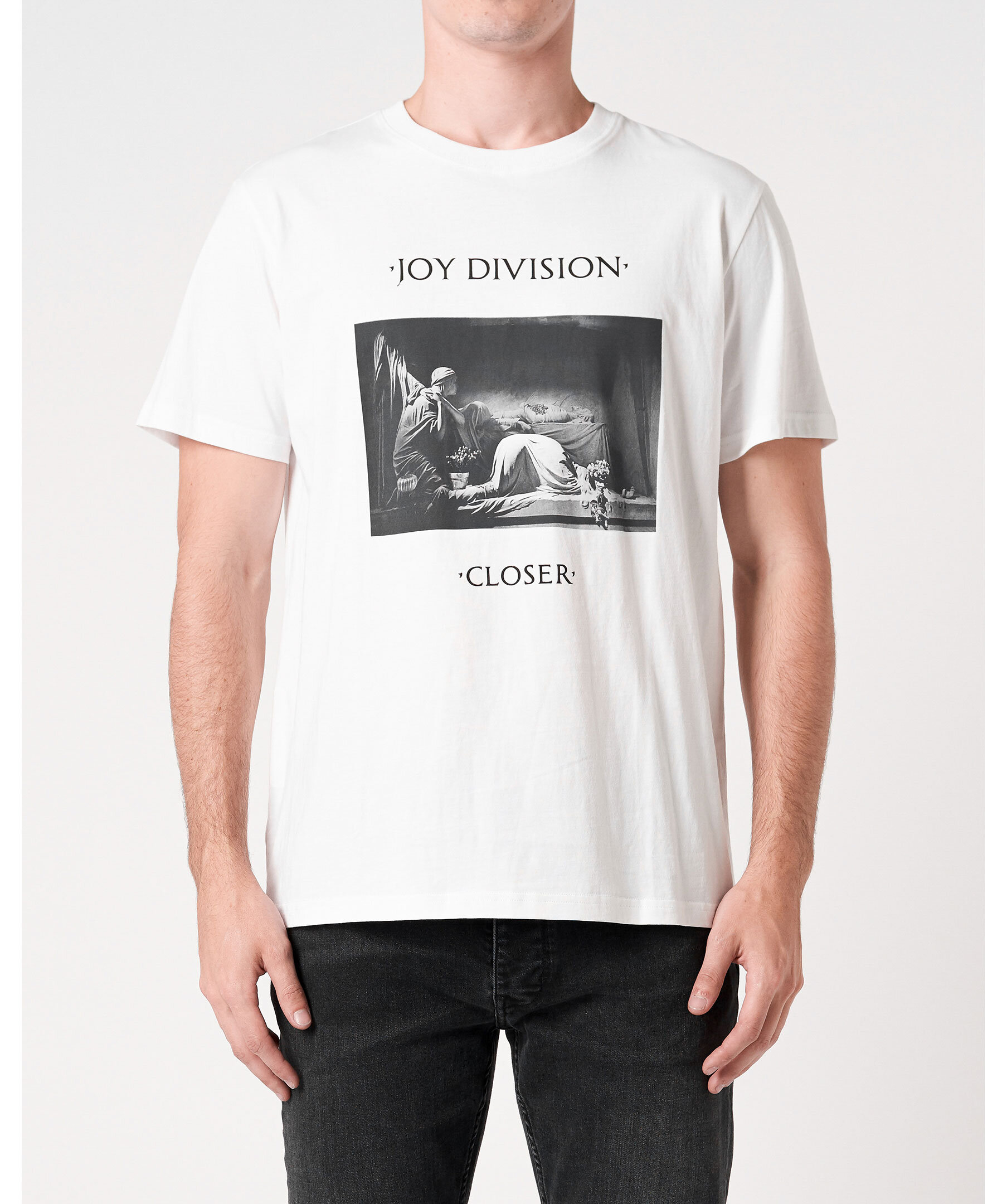 Vit t-shirt från Neuw. Med tryck från Joy Divisions ikoniska album Closer on our Signature Band Tee Block. Droppa axelärmar och muddar bak för den avslappnade passformen. Ribbade tillverkningar. Gjord i 100% bomull.