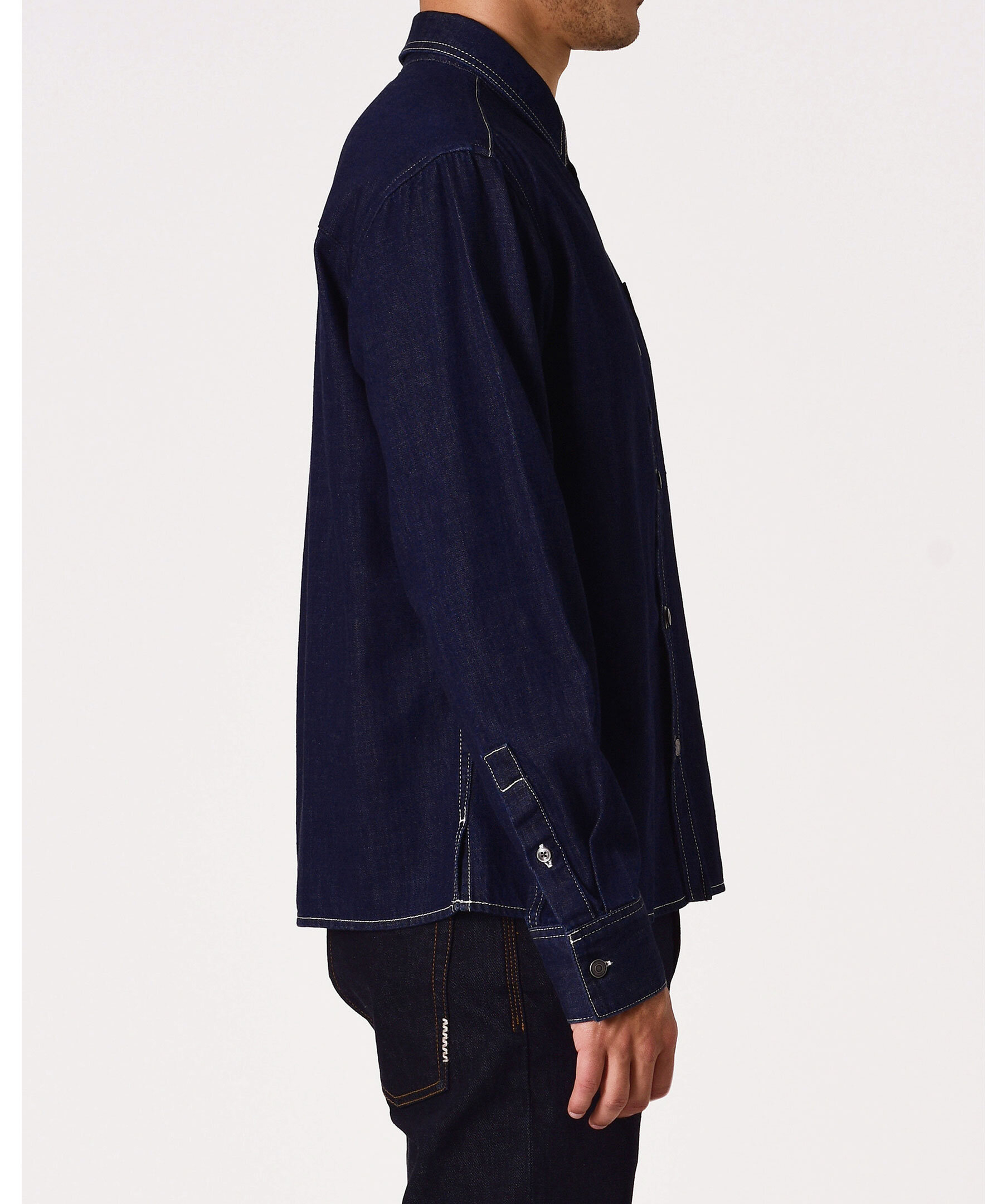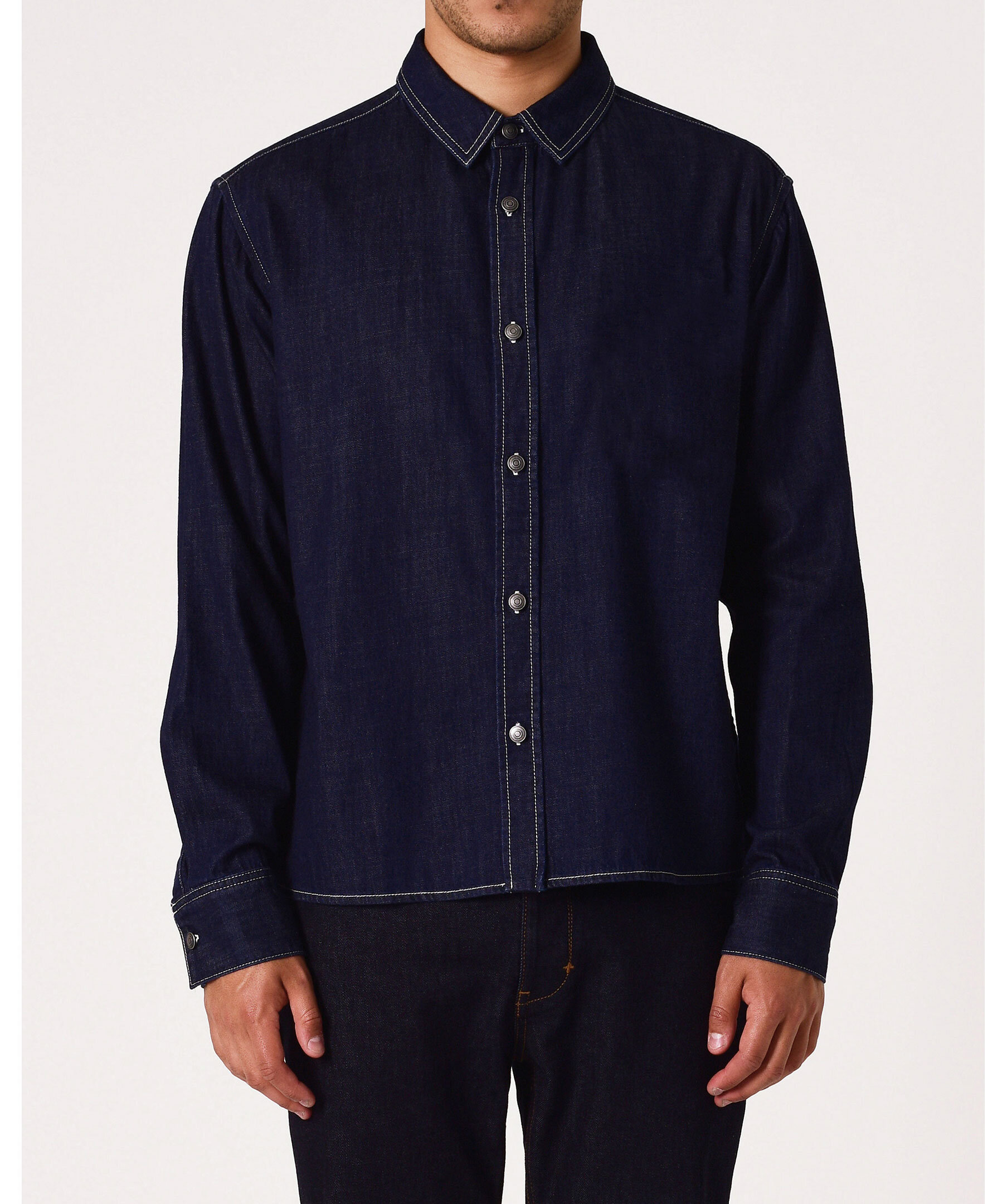 Mörkblå västerninspirerad jeansskjorta från Neuw, med detaljerad ryggdesign och kontrasterande sömmar. Skjortan är designad för att bäras både som ett fristående plagg eller som en overshirt och har därför en något mer smal passform – gå upp en storlek för en mer avslappnad passform.