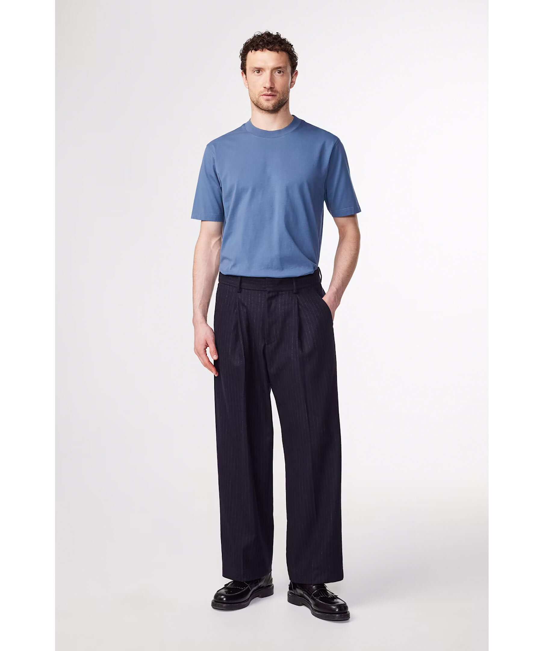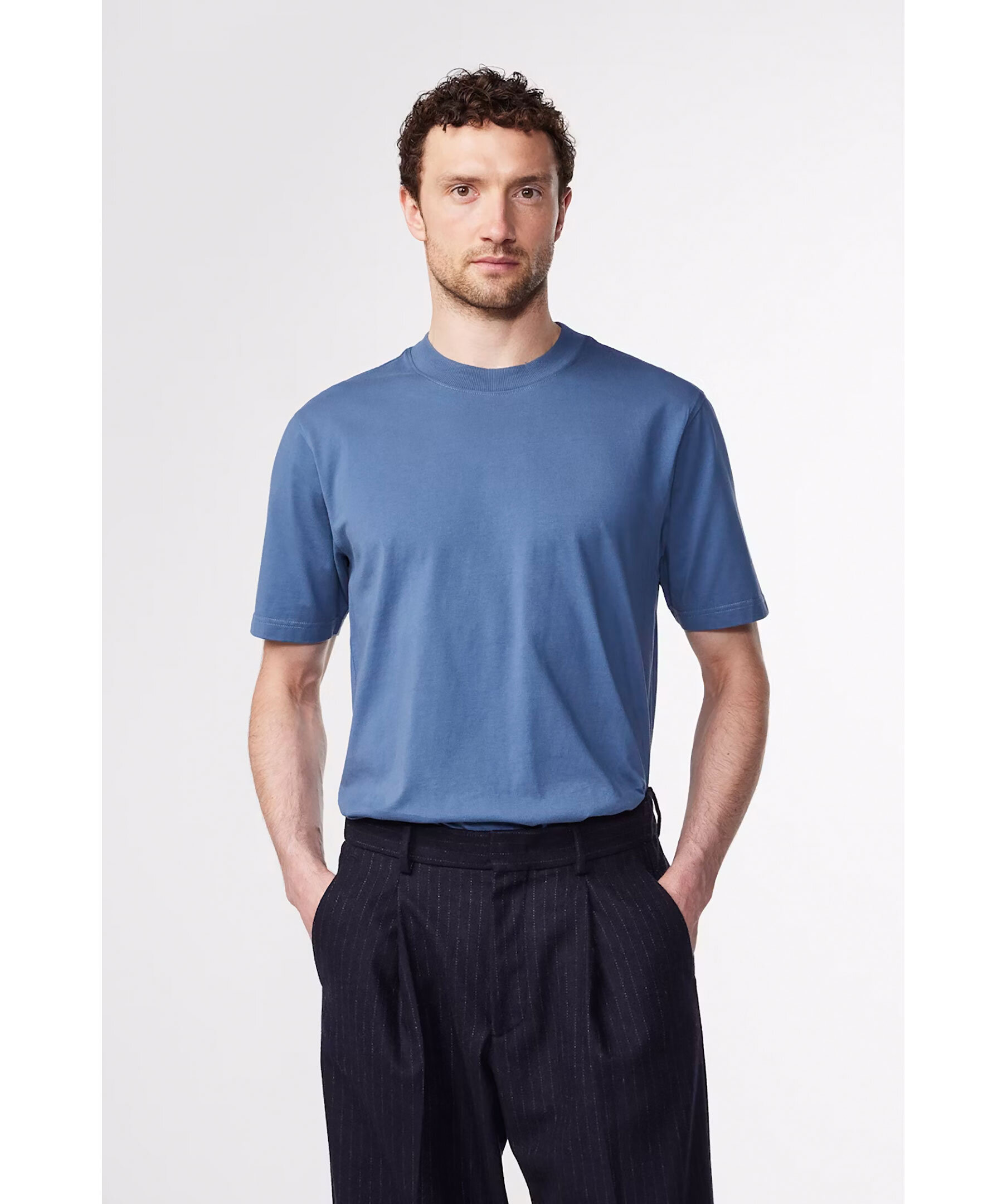 Blå t-shirt från NN07. Tillverkad i en fin Pima Cotton Jersey. Komplett med tvillingnålstygn i hela och en ribbdetalj längs halsen.