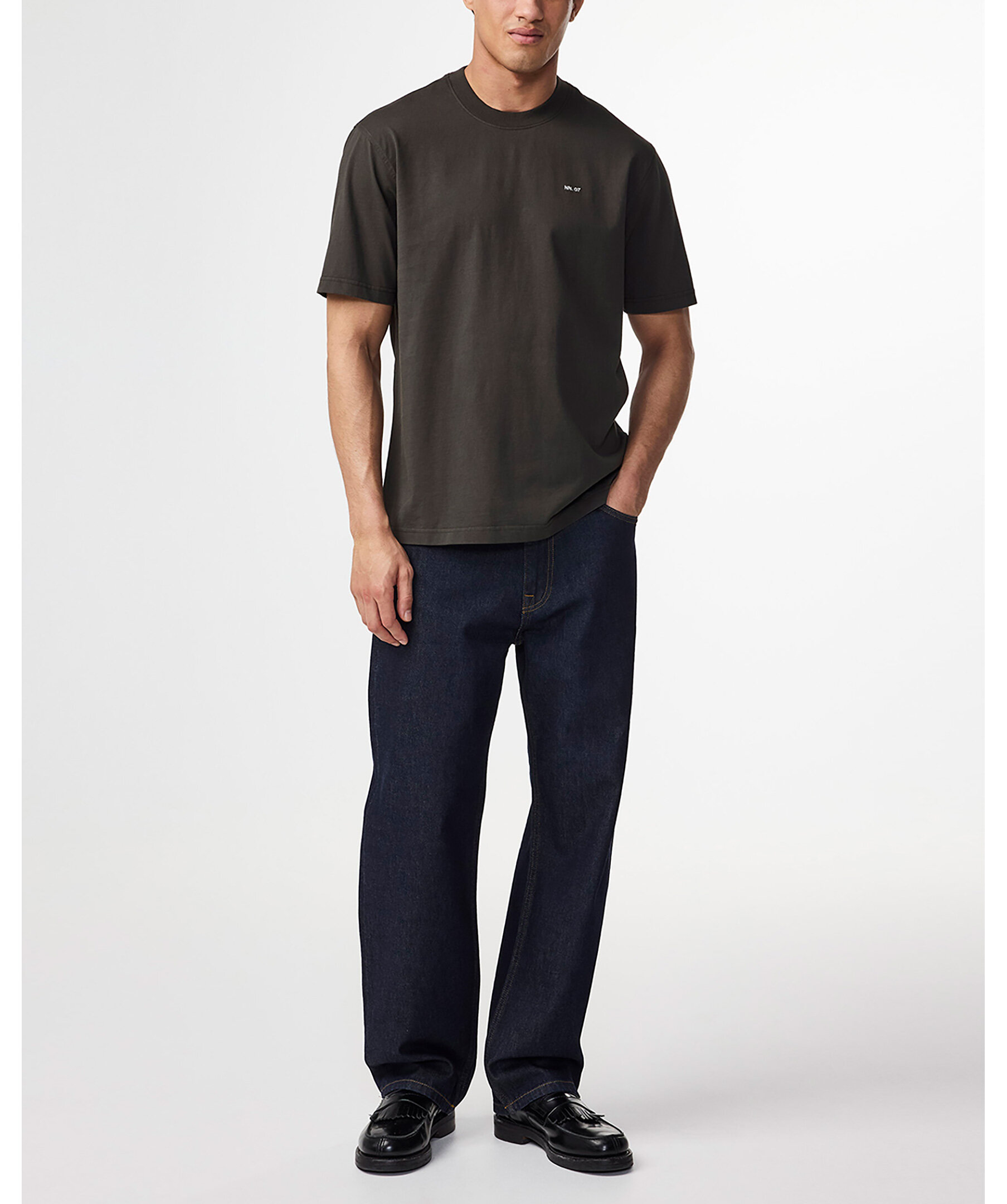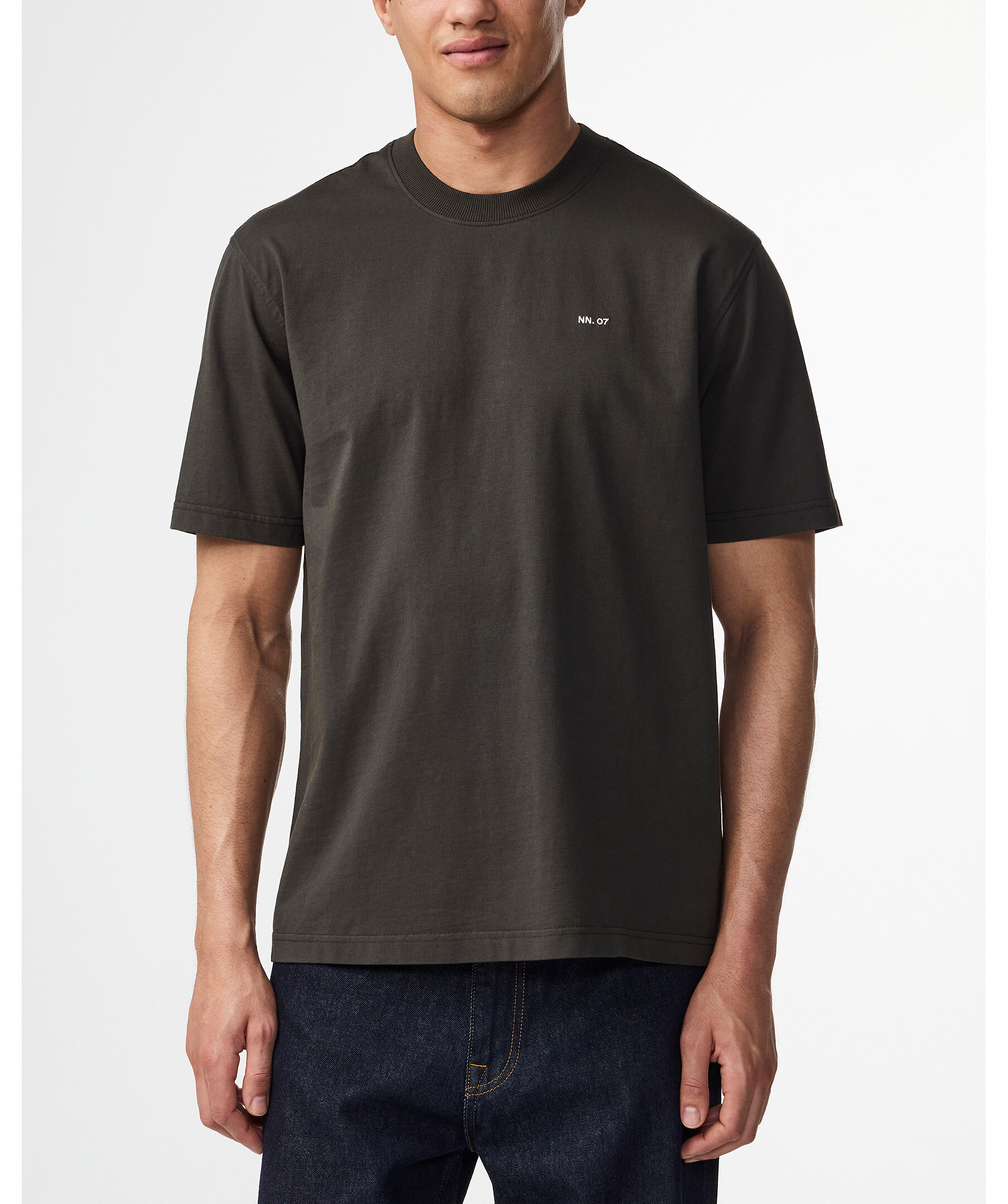 Mörkgrön t-shirt från NN07. Detaljer med dubbla nålsömmar och en snygg ribbning längs halsringningen samt en liten, broderad logotyp på bröstet. Tillverkad i en fin Pima Cotton Jersey.
