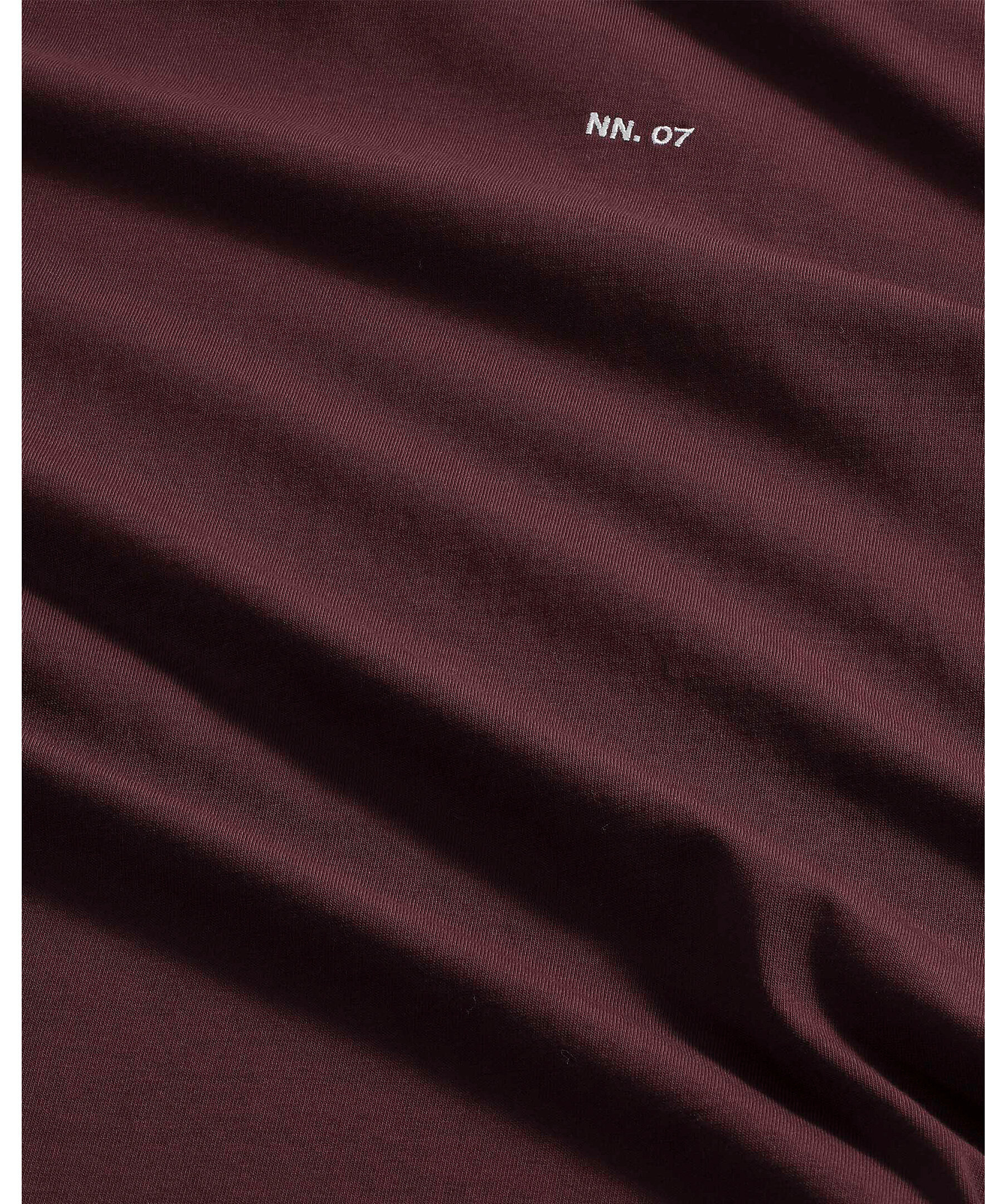 Vinröd t-shirt från NN07. Detaljer med dubbla nålsömmar och en snygg ribbning längs halsringningen samt en liten, broderad logotyp på bröstet. Tillverkad i en fin Pima Cotton Jersey.