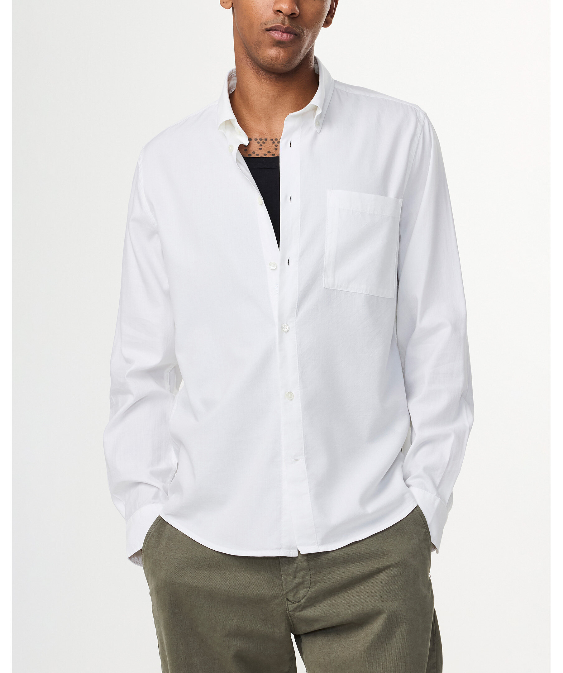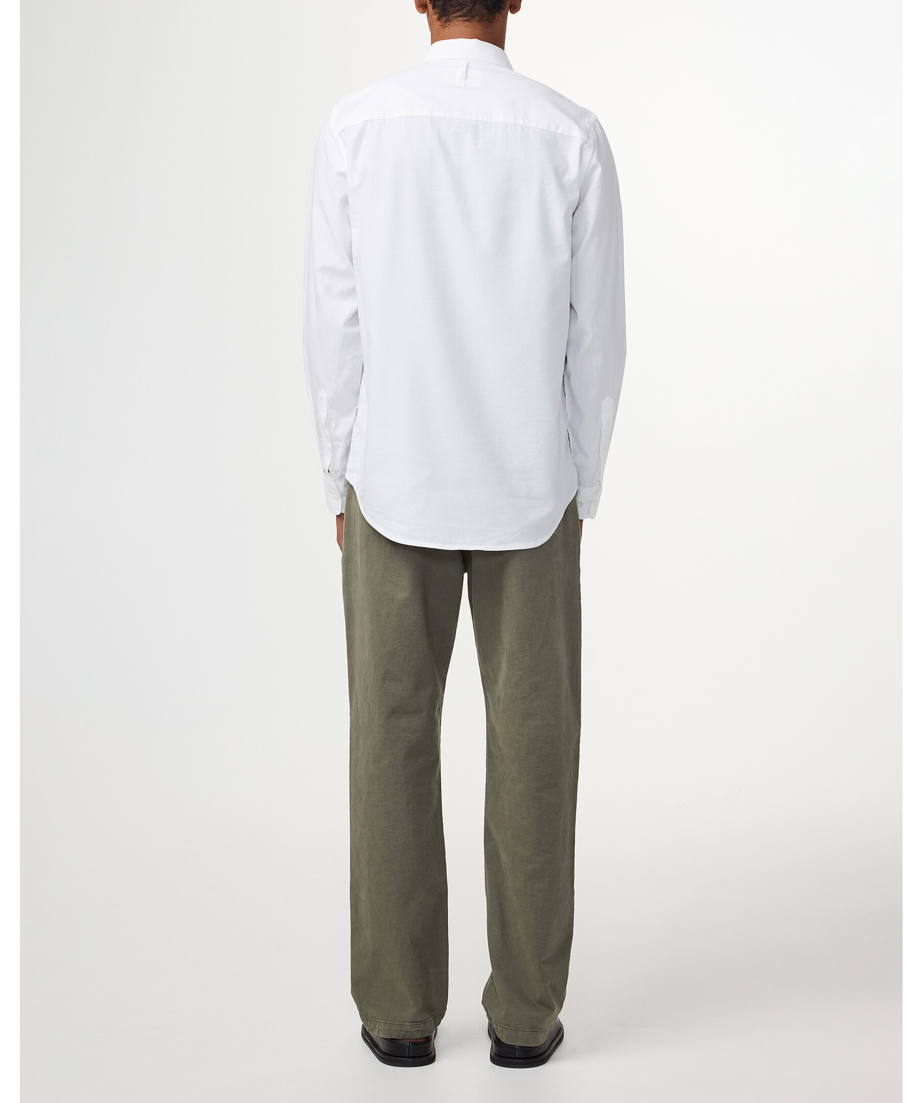 Vit skjorta från NN 07. Stängs framtill med knappar. Button-down krage. Bröstficka på vänster sida. Enkla manschetter. Tillverkad i bomulls blandning.