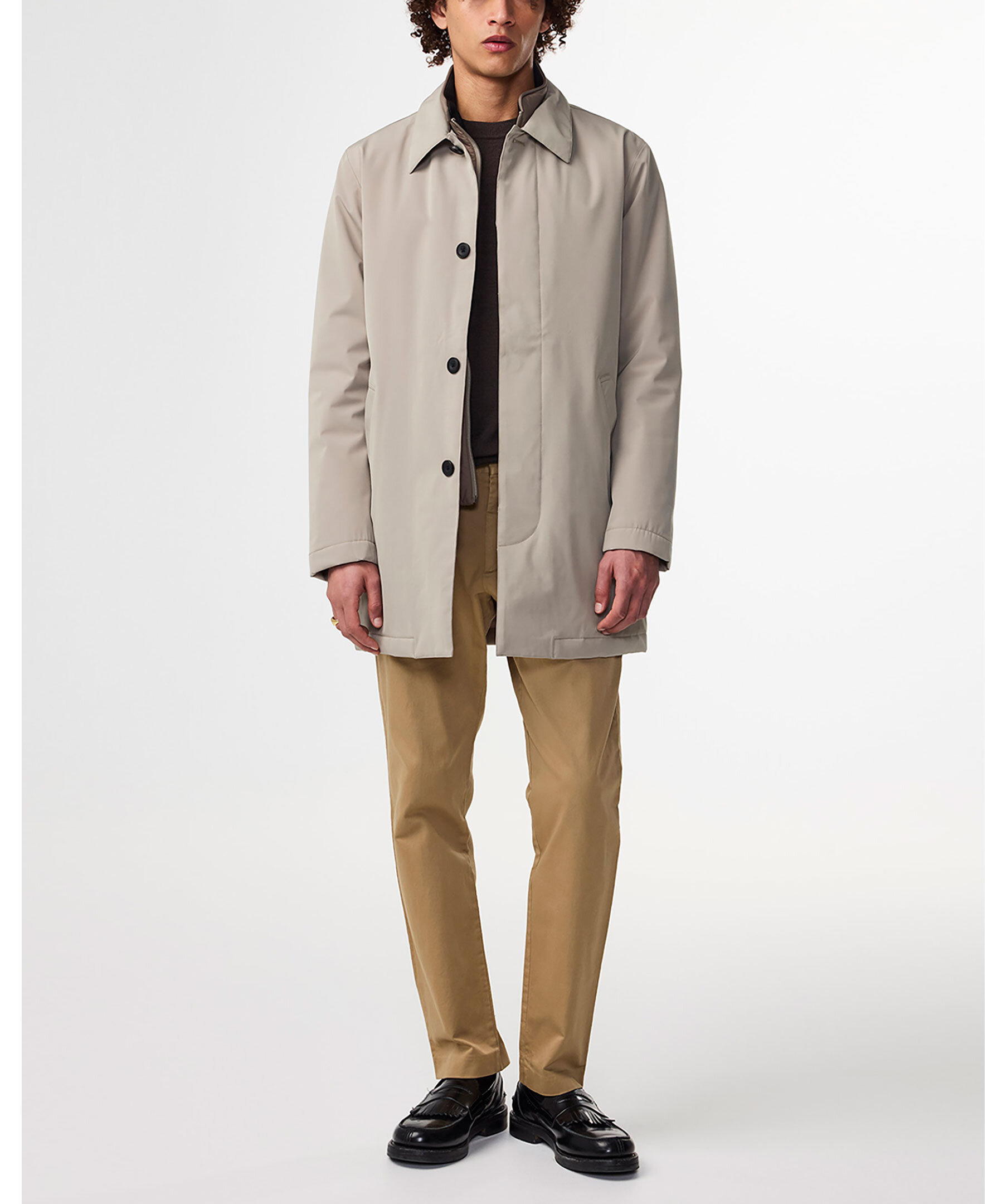 Blake 8240 från NN07 är en modern trenchcoat designad för både stad och väder. Tillverkad i ett vatten- och vindtätt tvålagers stretchtyg med 85 % återvunnen polyester, kombinerar den funktion och stil på bästa sätt. Jackan är isolerad med PrimaLoft® Gold och har ett avtagbart vadderat innerlager, vilket gör den perfekt för varierande väder. Med tejpade sömmar, ventiler under ärmarna och fleecefodrade fickor får du maximal komfort – oavsett säsong.