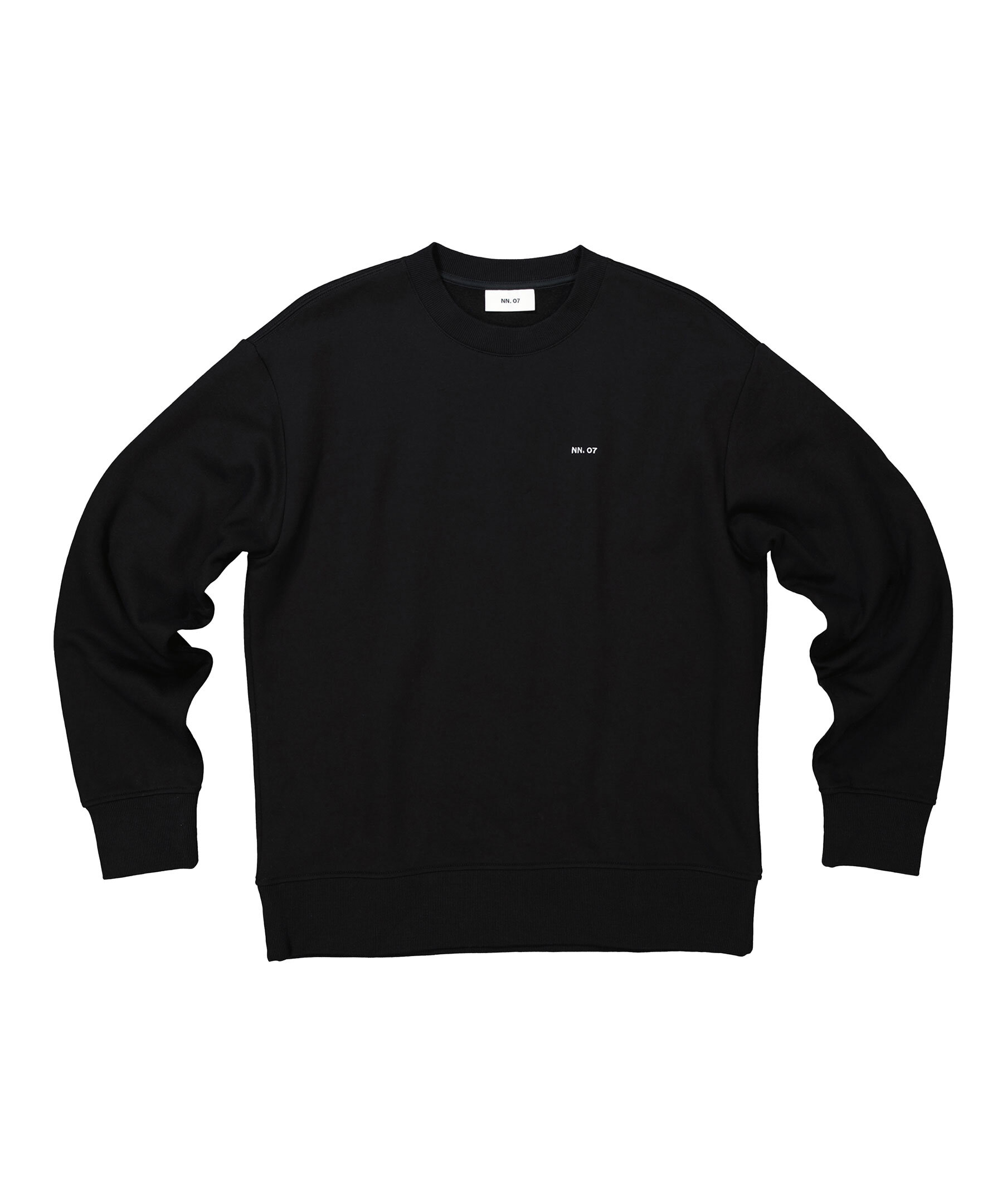 Svart klassisk crewneck sweatshirt från NN07 med rund halsringning. Gjord i en len organisk bomullsblandning. Det här plagget är en borstad fleece med broderi med logga på bröstet. Normal passform.