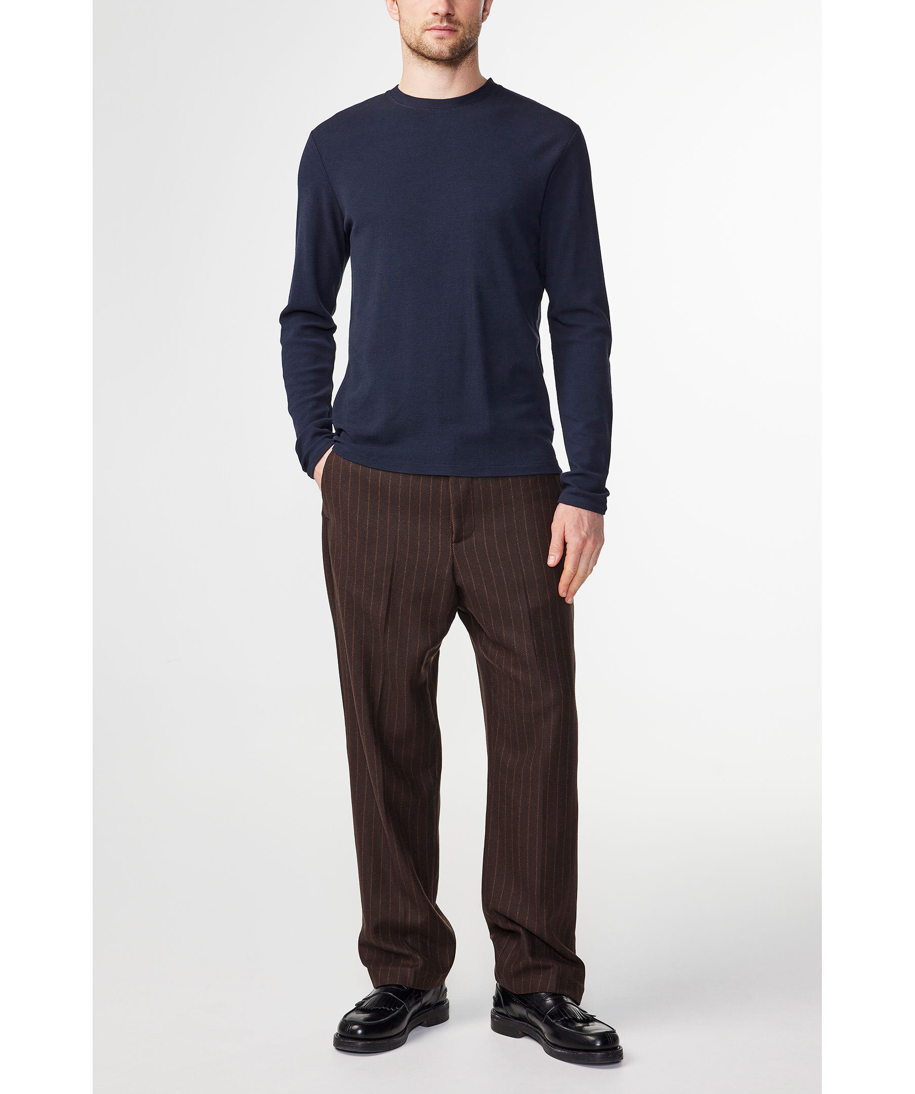 Mörkblå, våffelstickad långärmad tröja från NN07. Tröjan har rundad halsringning och är tillverkad i kraftig TENCEL™ modal- och bomullsblandad jersey.