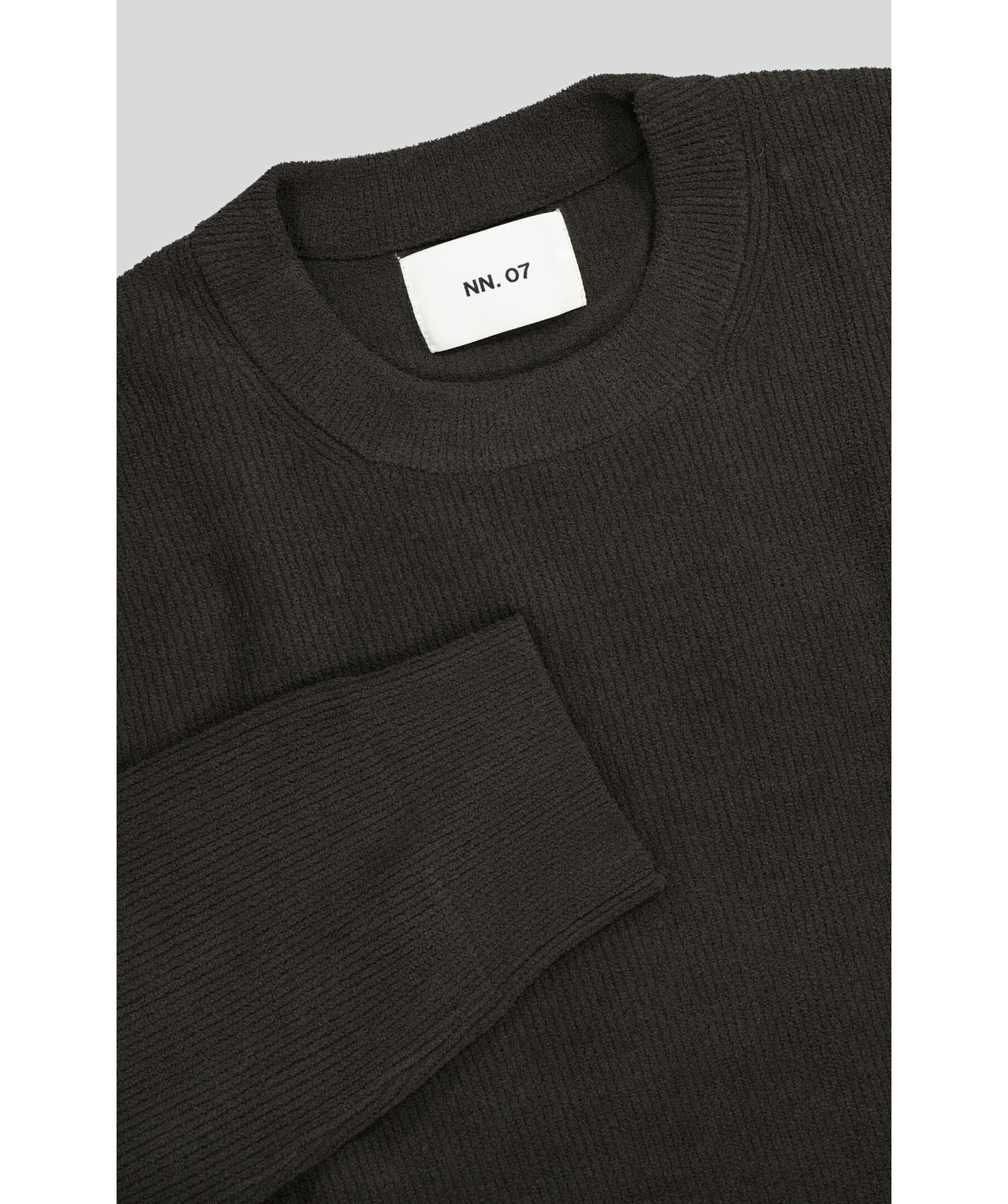 Mörkgrön ribbstickad tröja från NN07. Ribbstickad rundad hals samt ribbstickade muddar vid ärm- och plaggslut. Tillverkad i en polyesterblandning. Normal passform.
