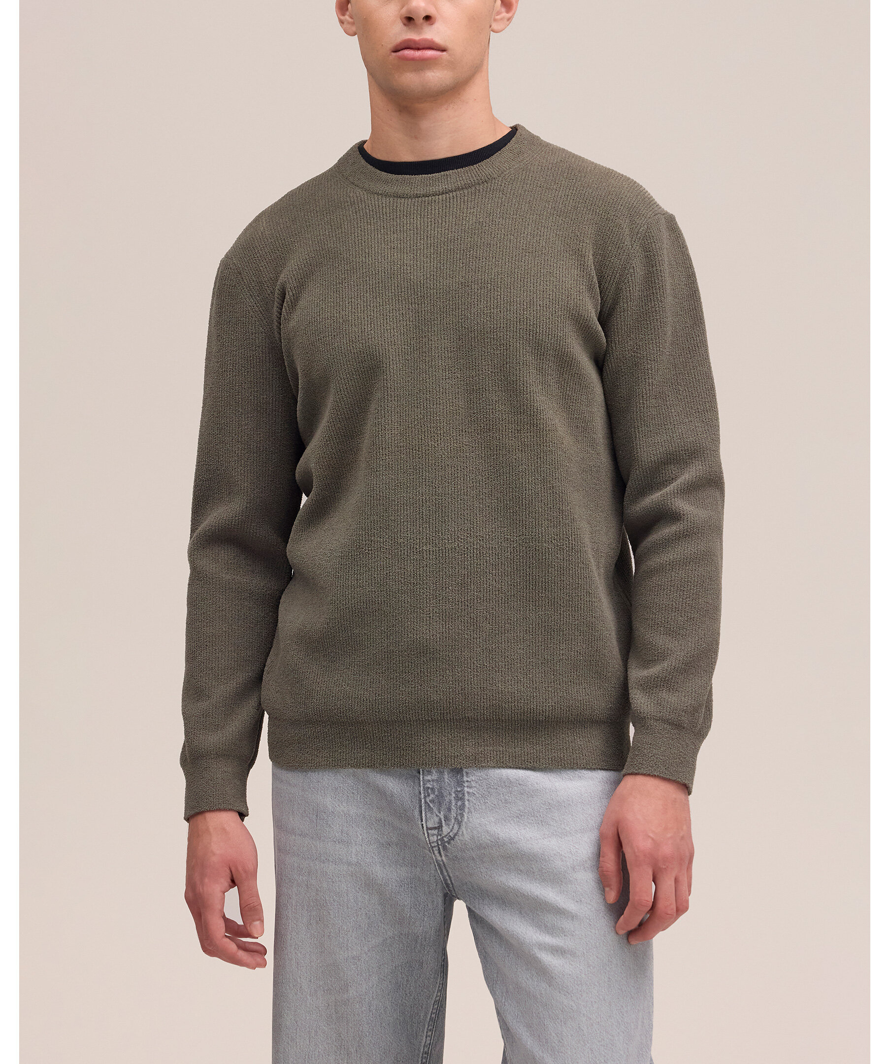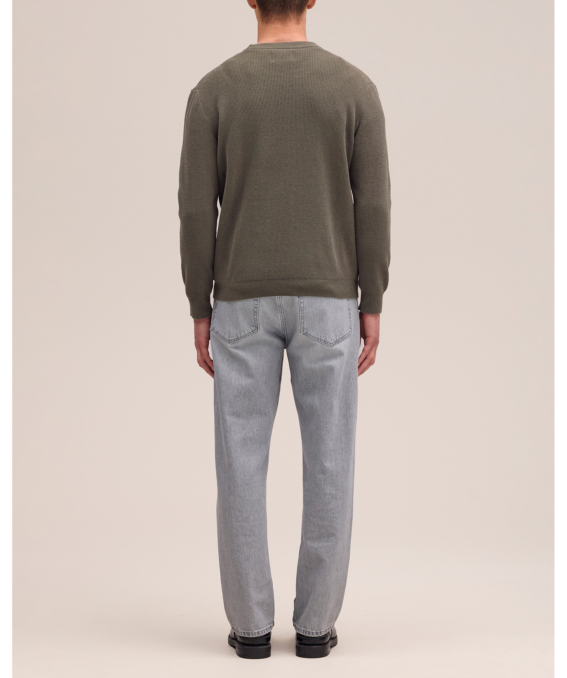 Grågrön tröja från NN07 med regular fit, mock‑neck‑krage och halvlång dragkedja – ett mjukt och ribbstickat vardagsplagg som fungerar lika bra med jeans som under en jacka på kyligare dagar.