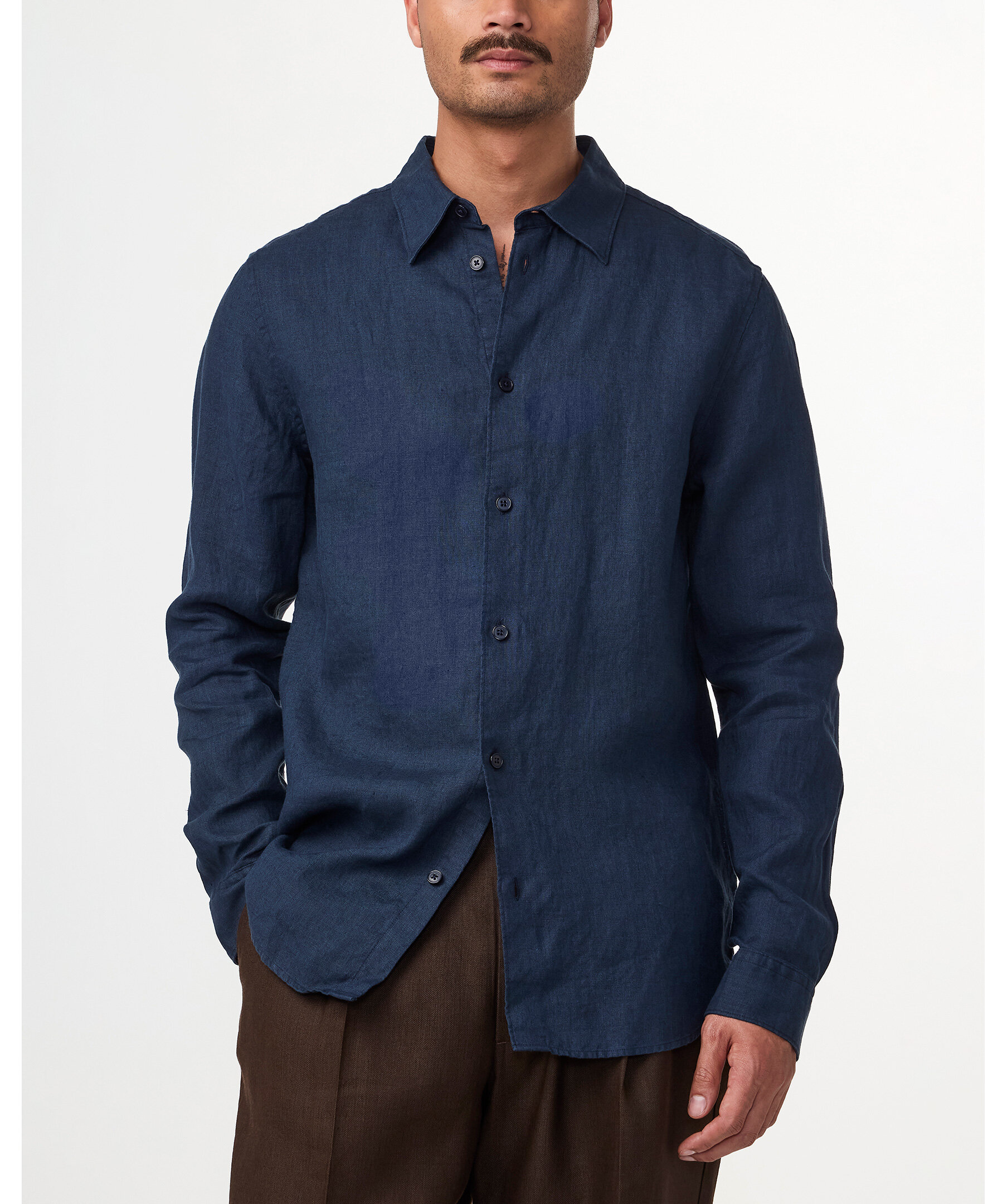 Mörkblå linneskjorta från NN07. Skjortan stängs med matchande knappar och är tillverkad i 100% linne.