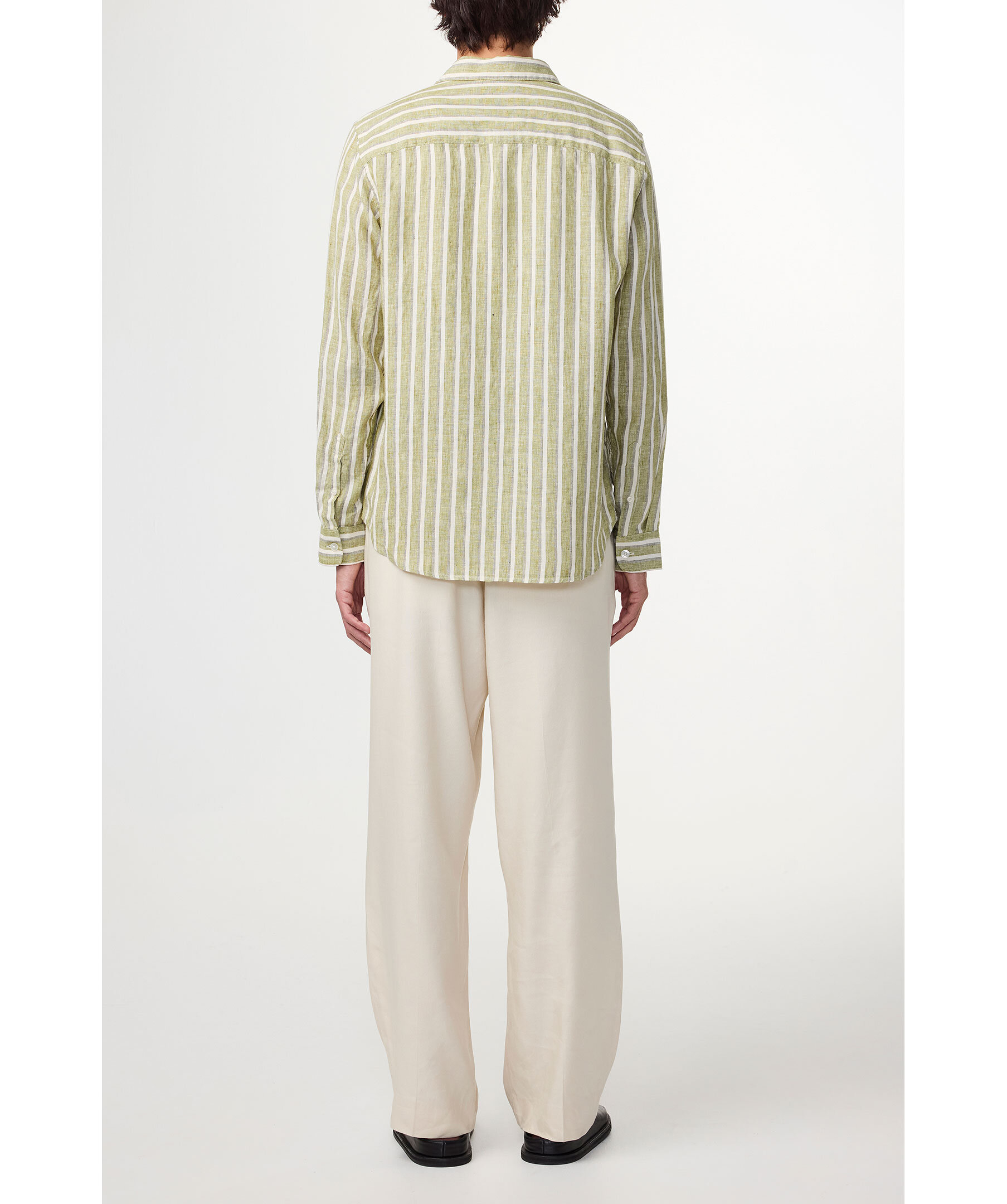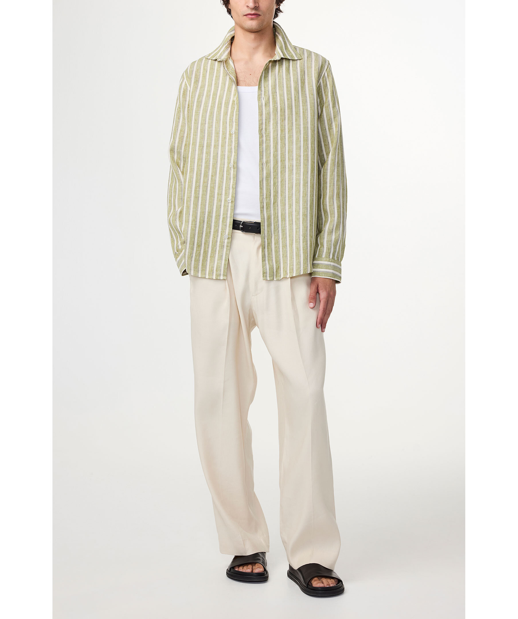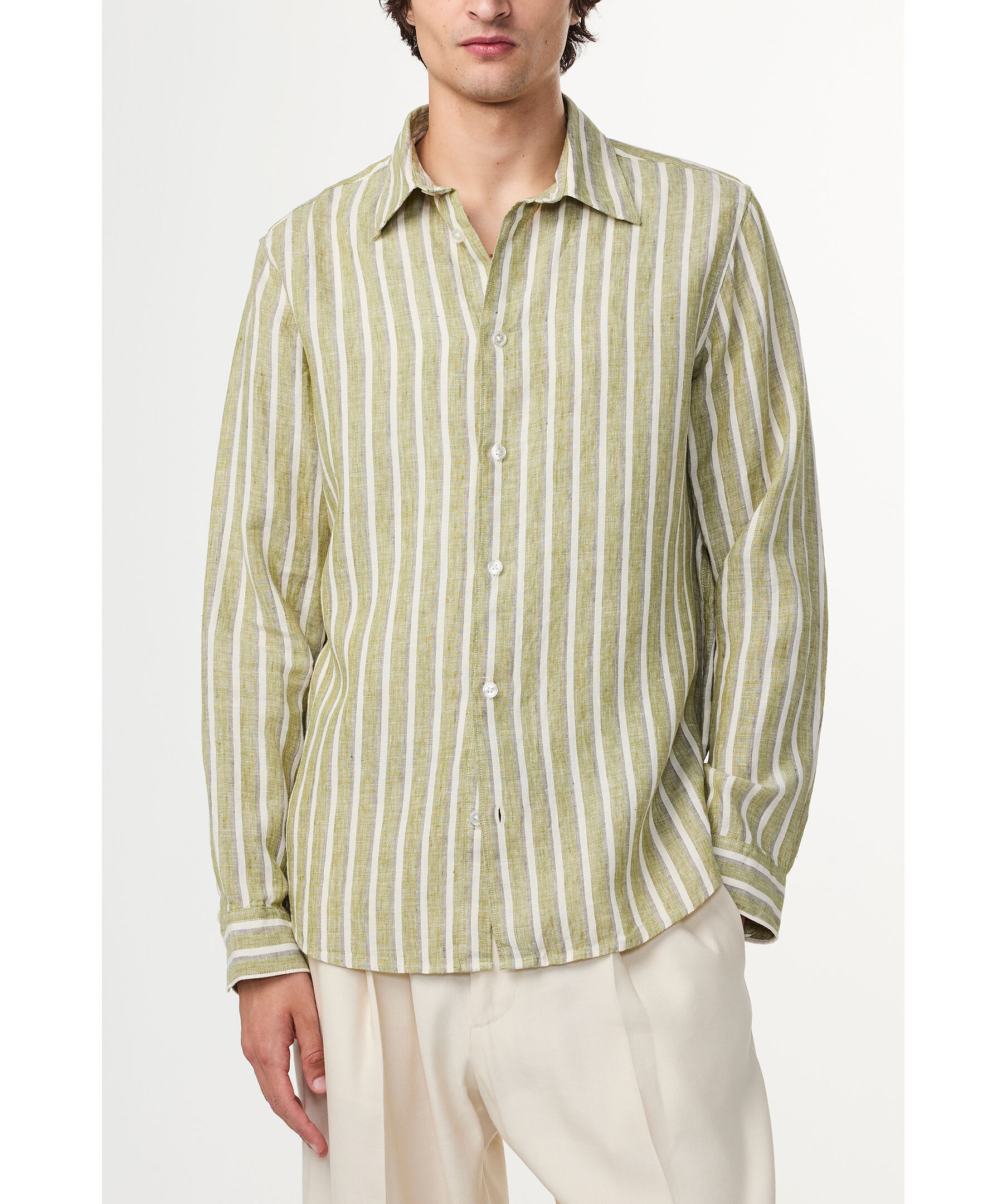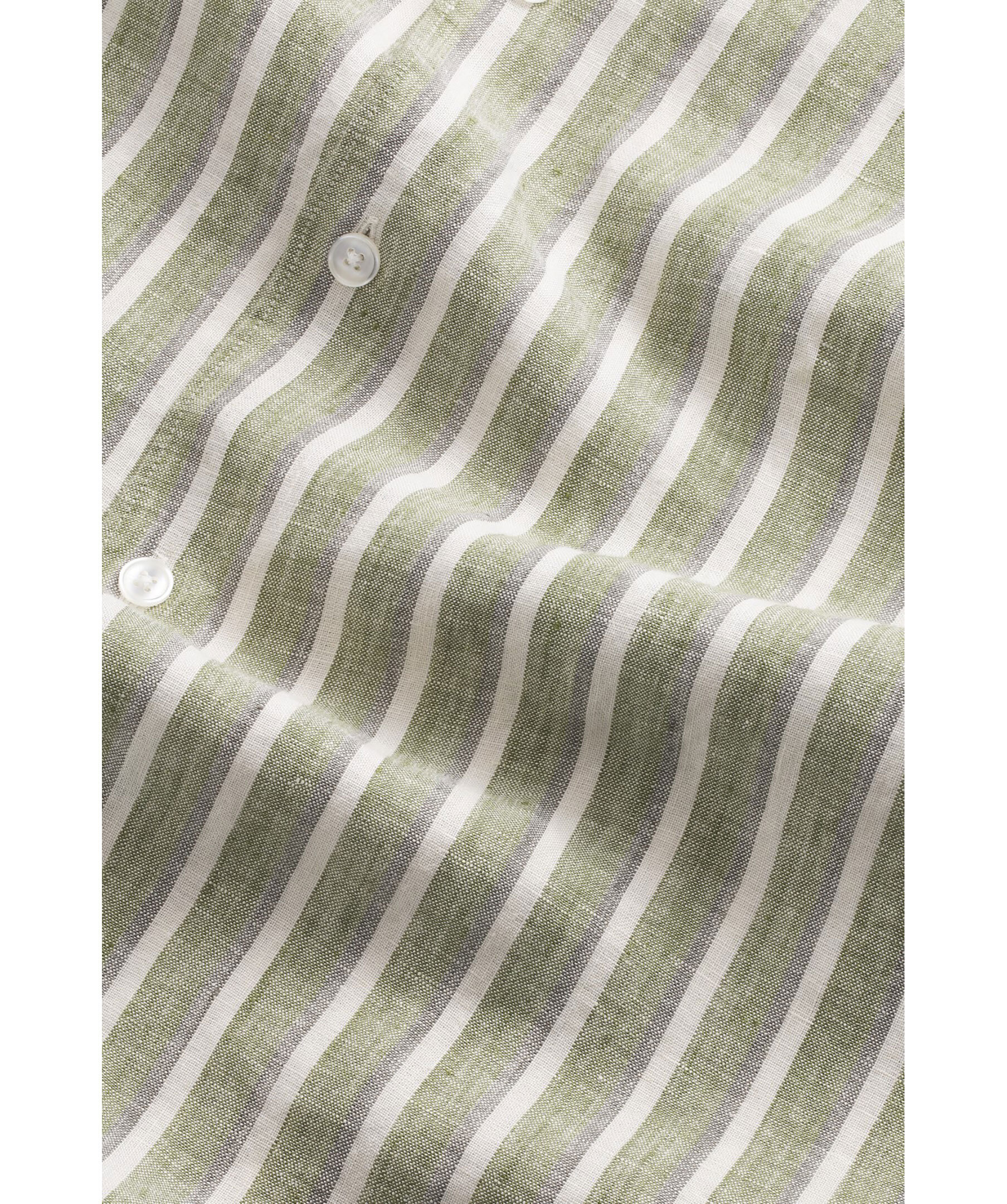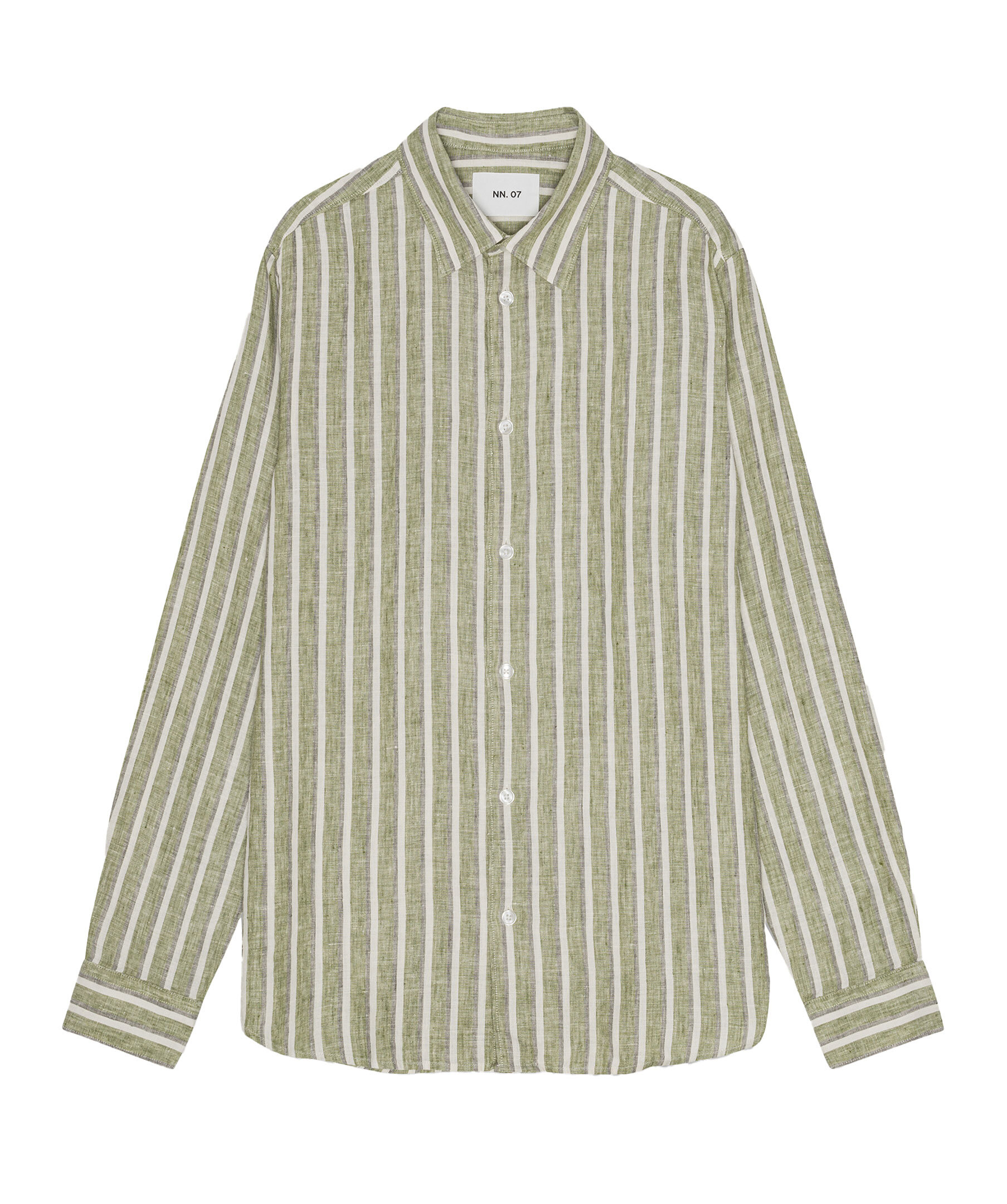 Grön och vit randig linneskjorta från NN07. Skjortan stängs med knappar och är tillverkad i 100% linne.