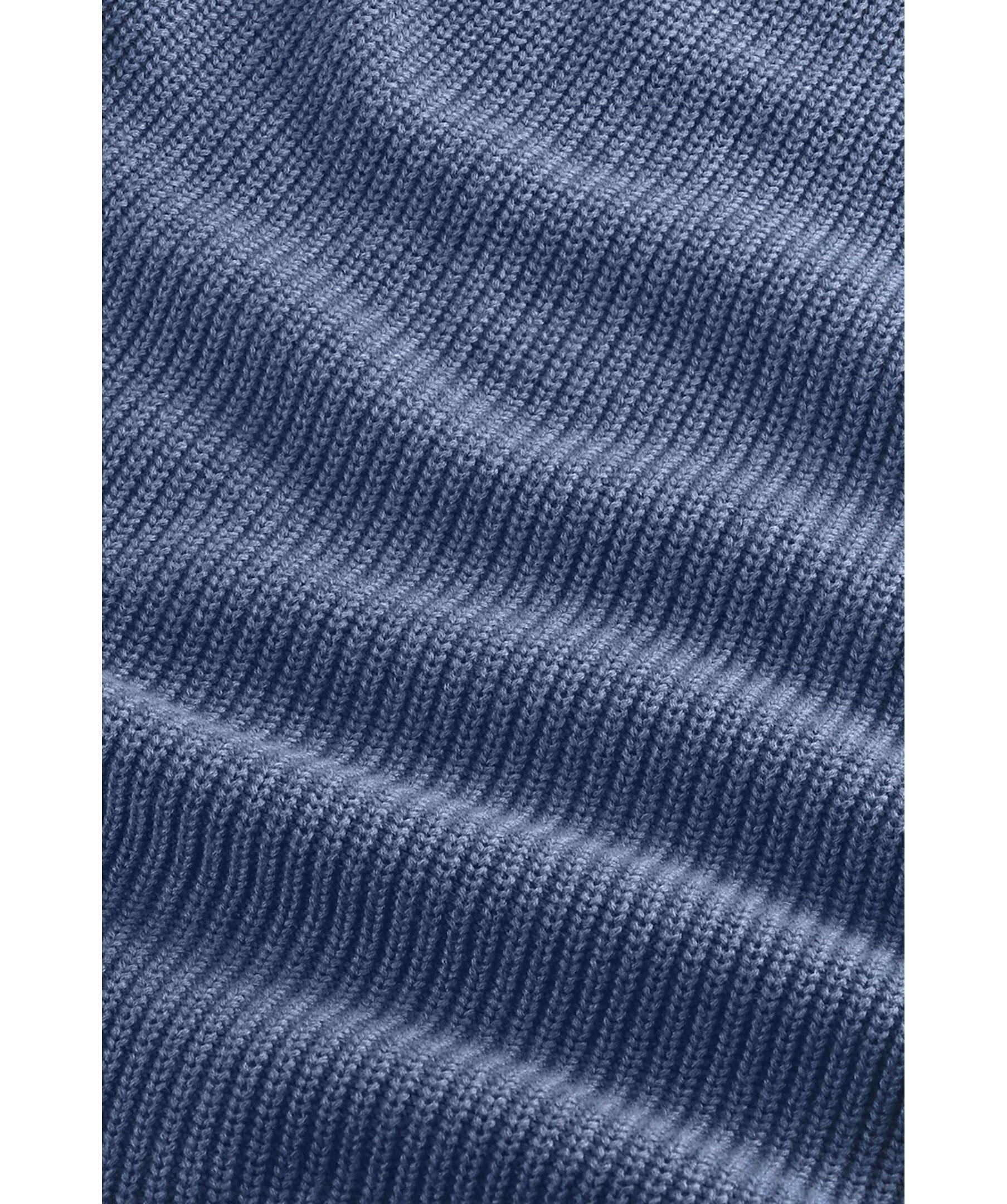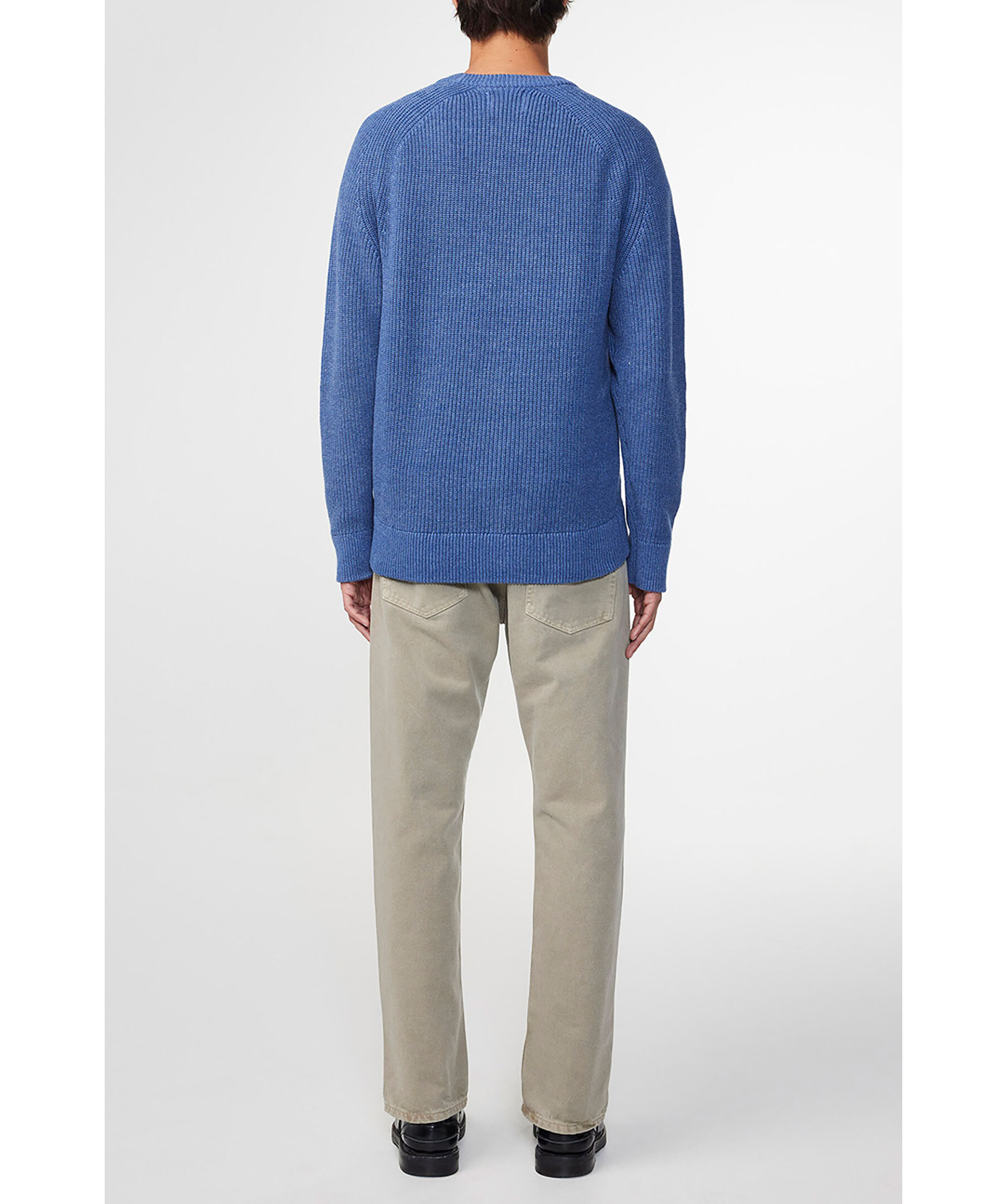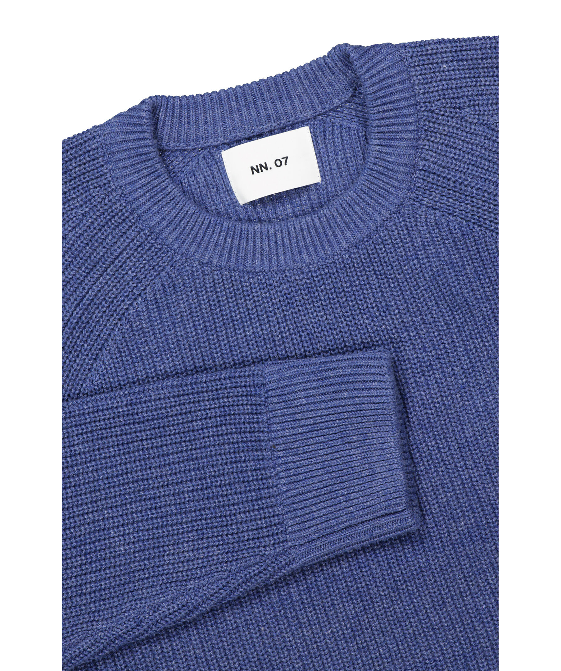 Blå stickad crewneck från NN07. Tillverkad i mjuk bomull, stickad i en halvkoftasöm. Ribbstickad halsringning samt plaggslut. Normal passform.