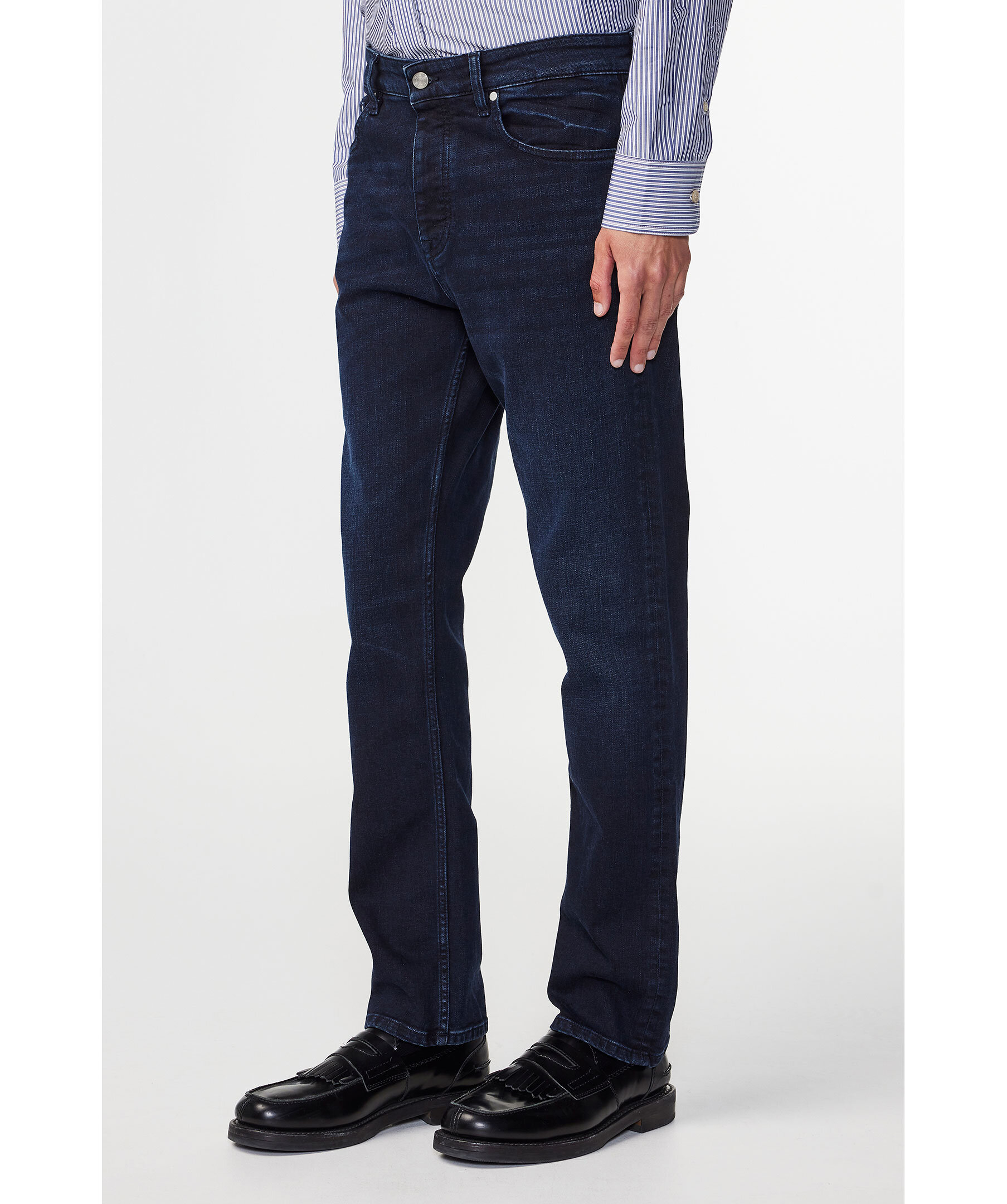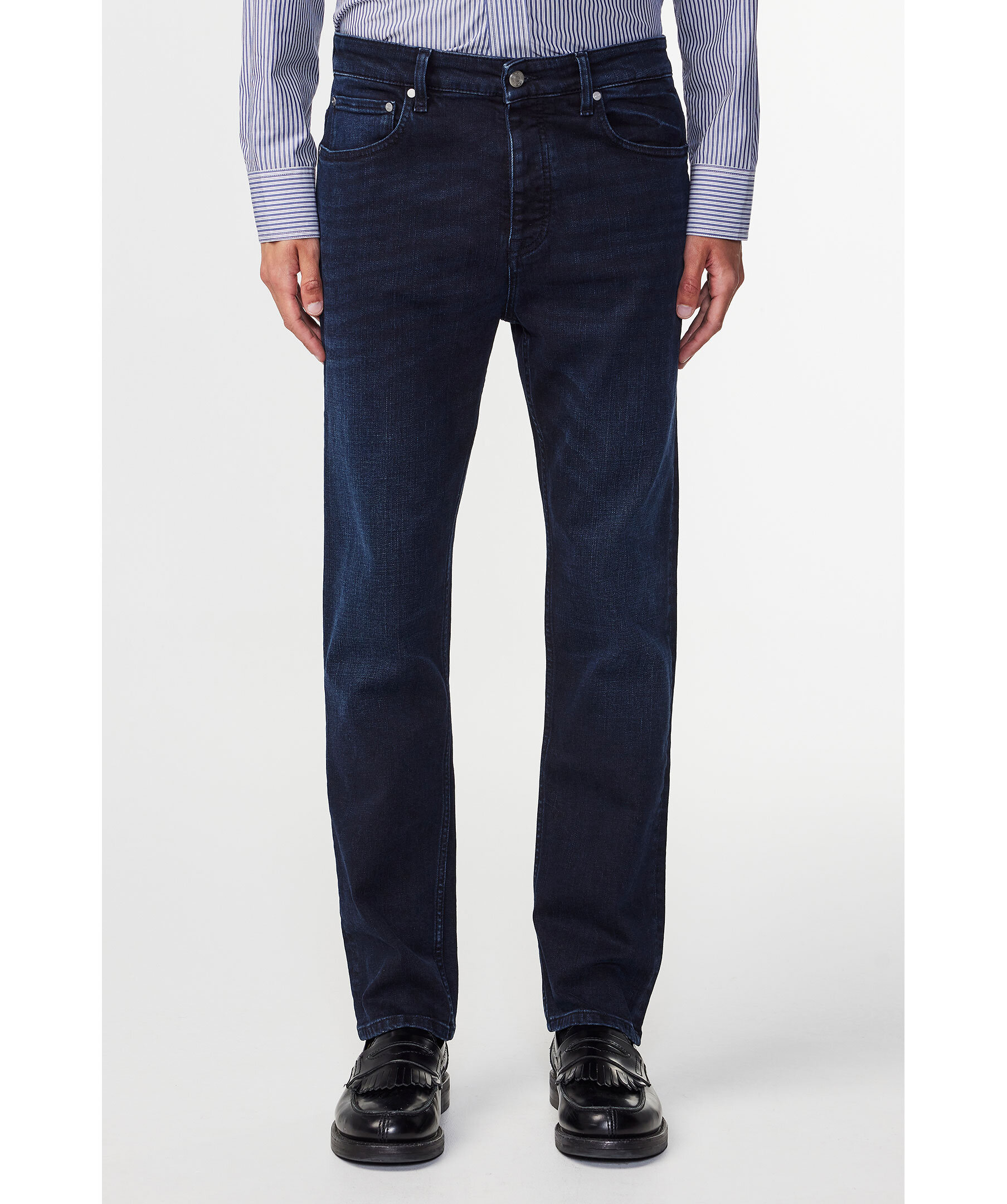 Mörkblåa jeans från NN07. Jeansen har bälteshällor i midjan och fem fickor. Prydda med knappar i matt silvermetall, matchande nitar och blå broderisömmar längs bakfickan. Tillverkad i en bomullsblandning.