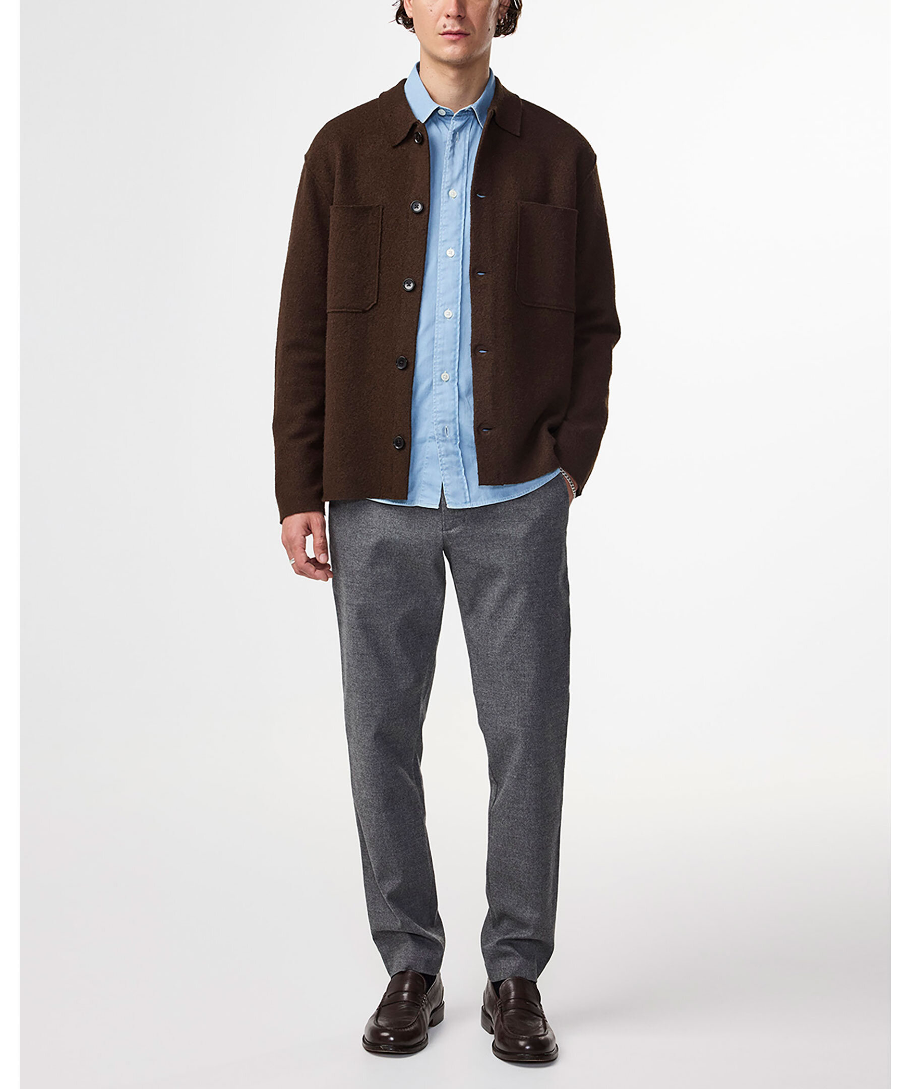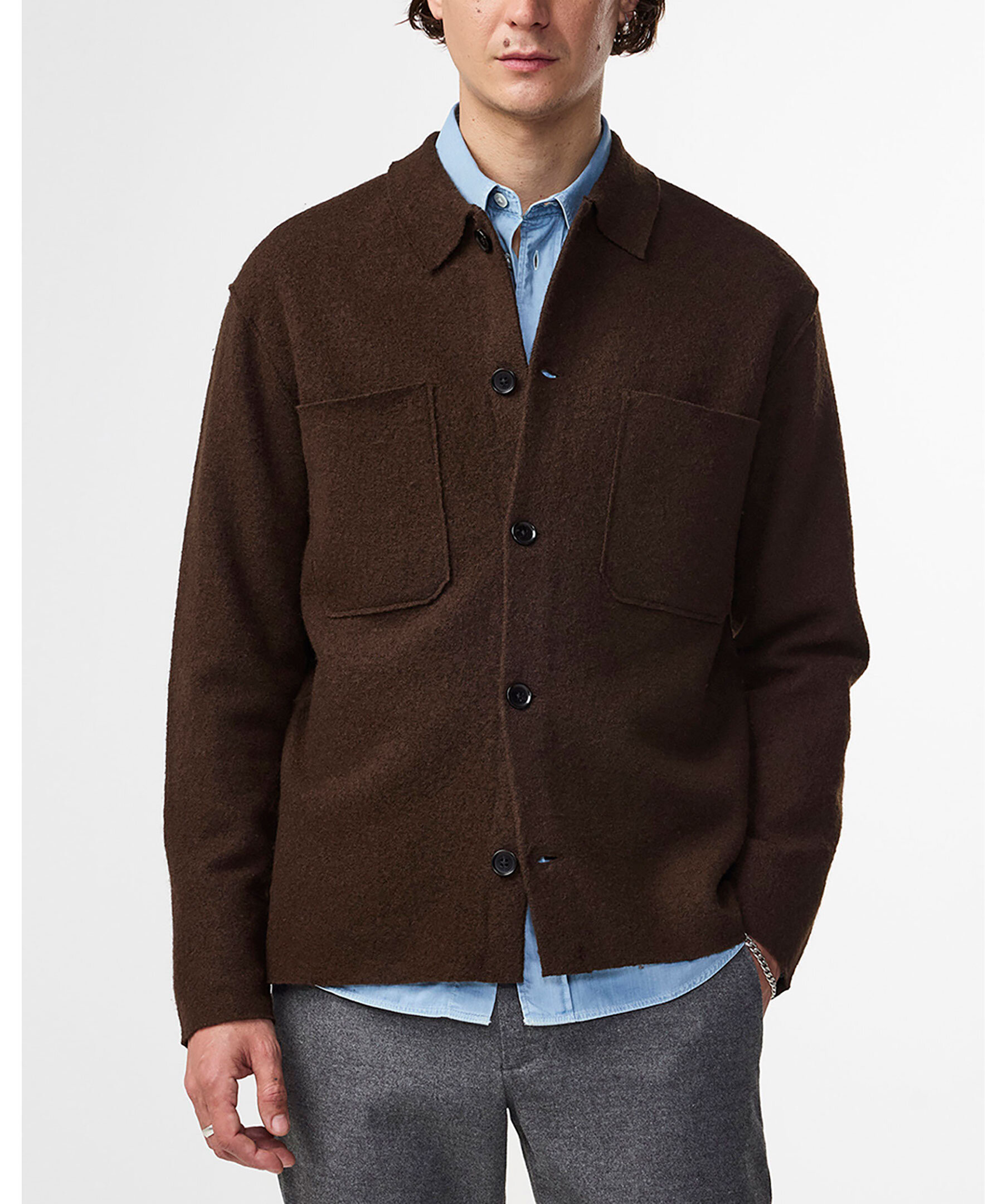 Overshirt från NN.07 tillverkad i en mjuk merinoull, designad med en skjortkrage, två bröstfickor, råa kanter och NN.07-logotypknappar.