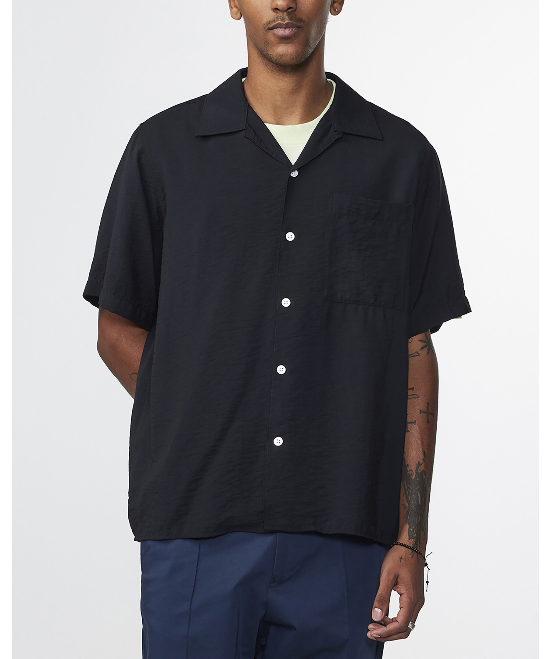 Svart, kortärmad skjorta från NN07. Tillverkad i en mjuk TENCEL™ modalblandning med öppen krage och enkel bröstficka. Prydd med pärlemorknappar. Normal passform.
