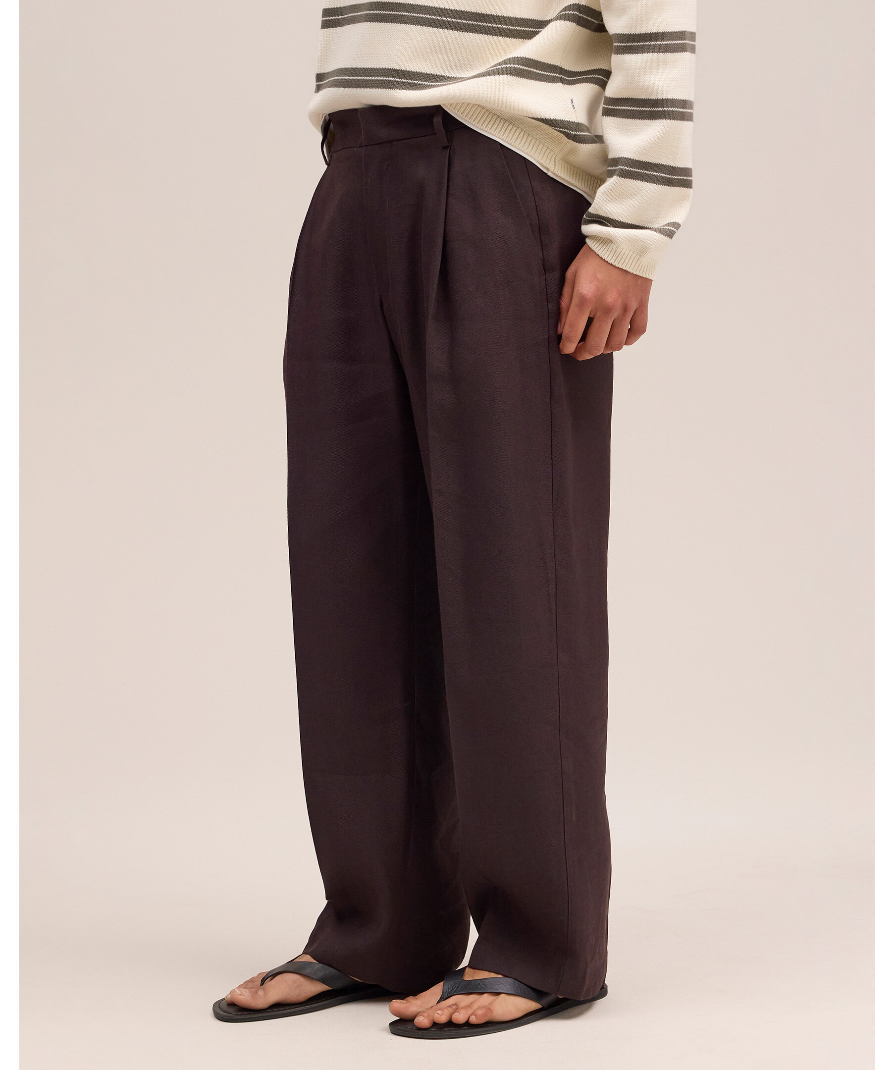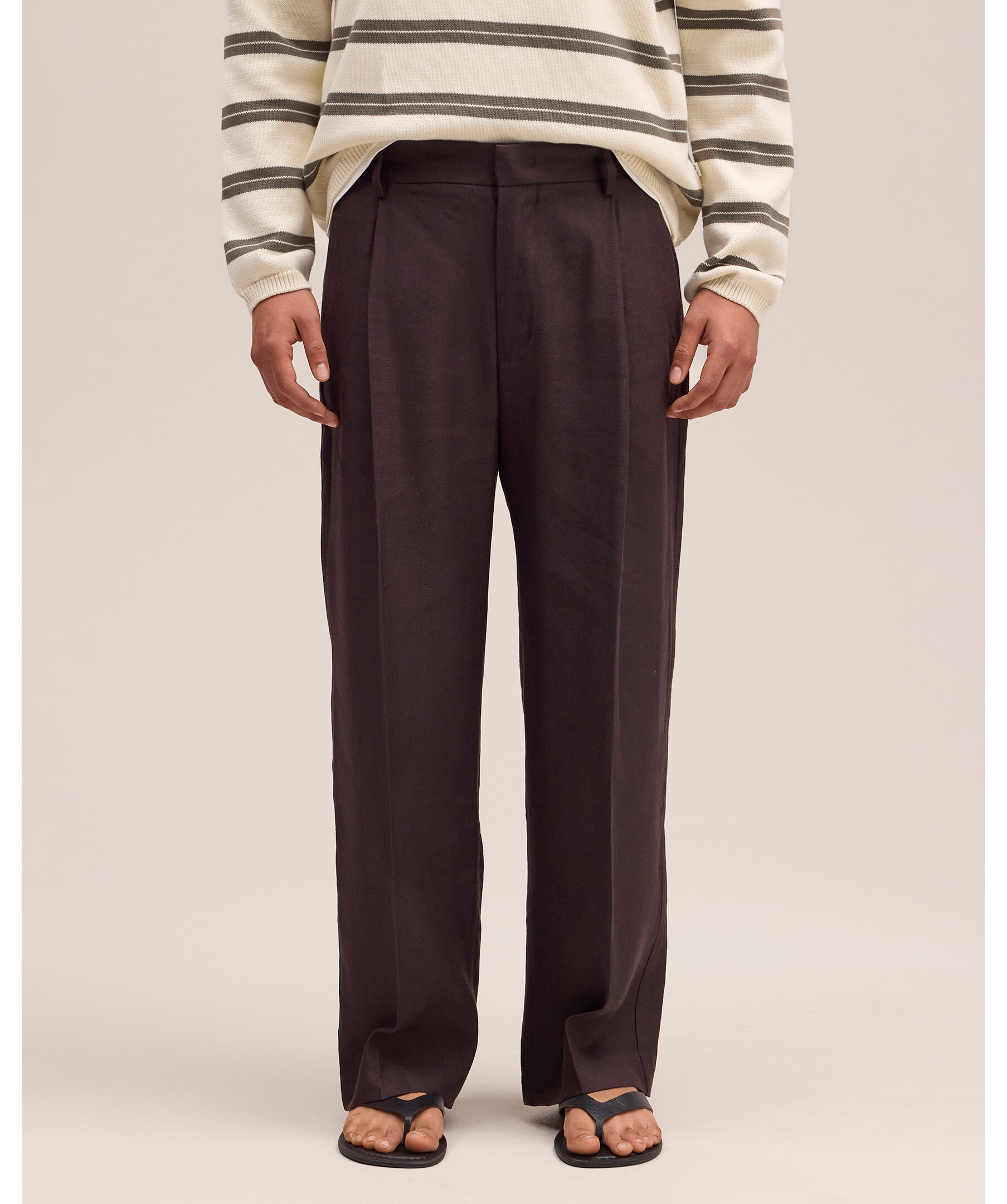 Bruna byxor från NN07 i relaxed fit med dubbla pressveck och hook-and-bar-stängning. Tillverkade i mjukt ekologiskt bomullstwill med satinfinish för ett elegant, draperat fall som passar både vardag och uppklädda looks.