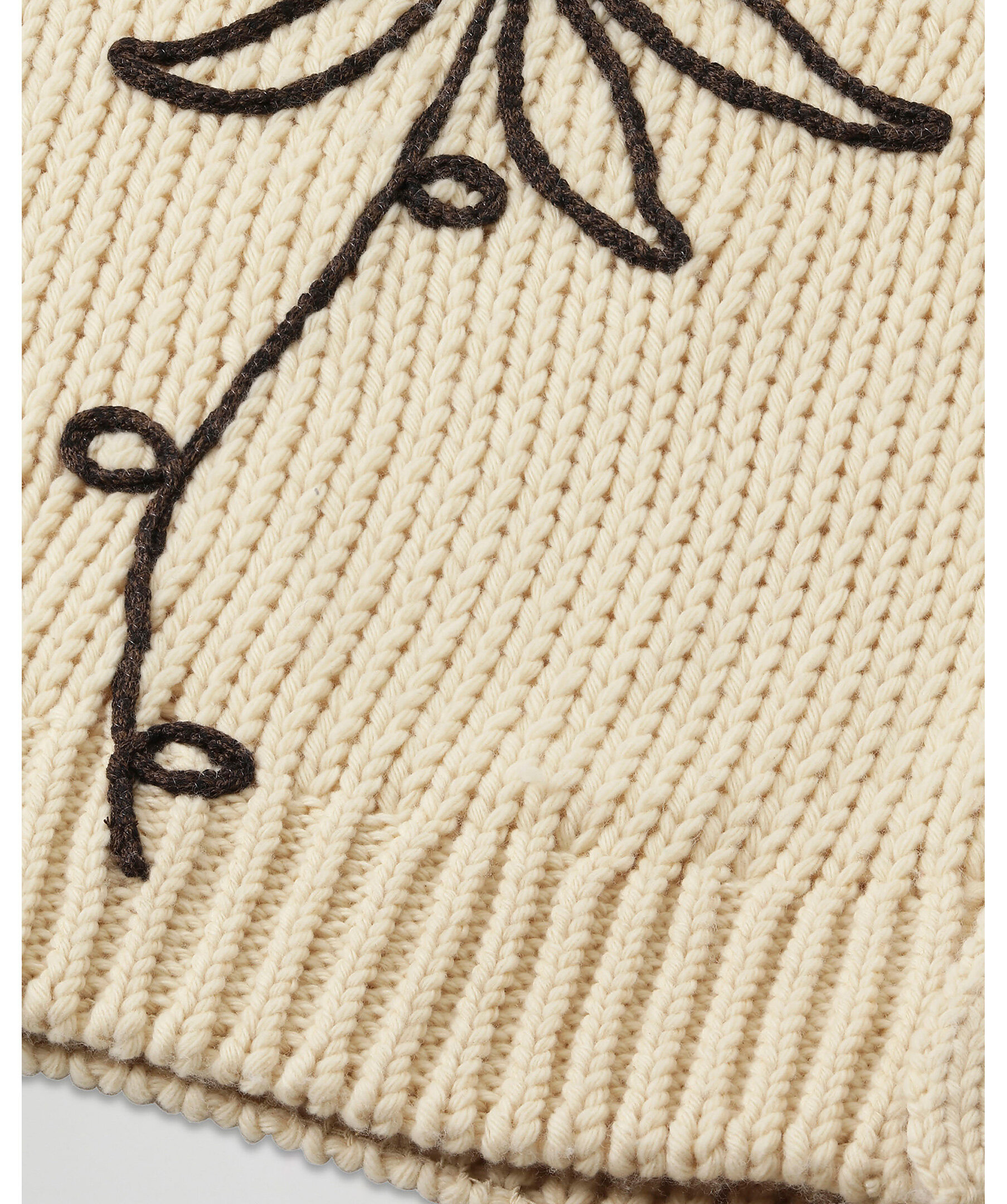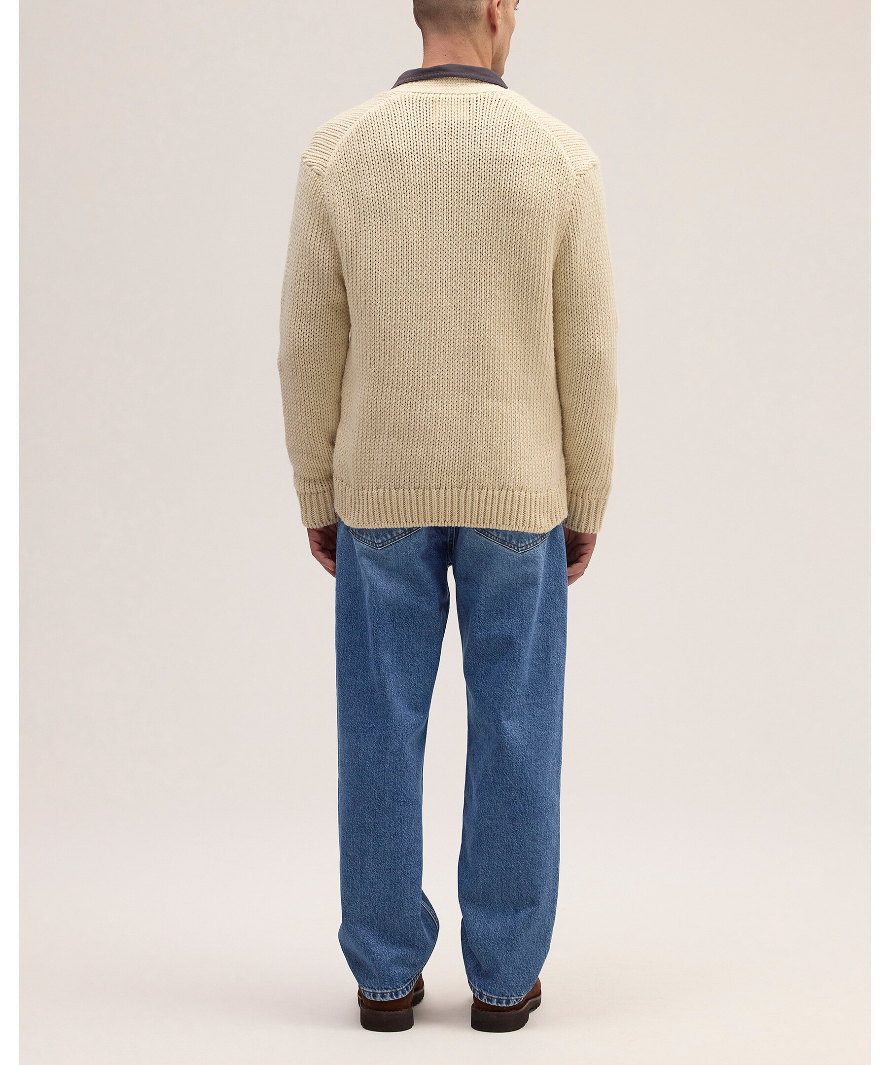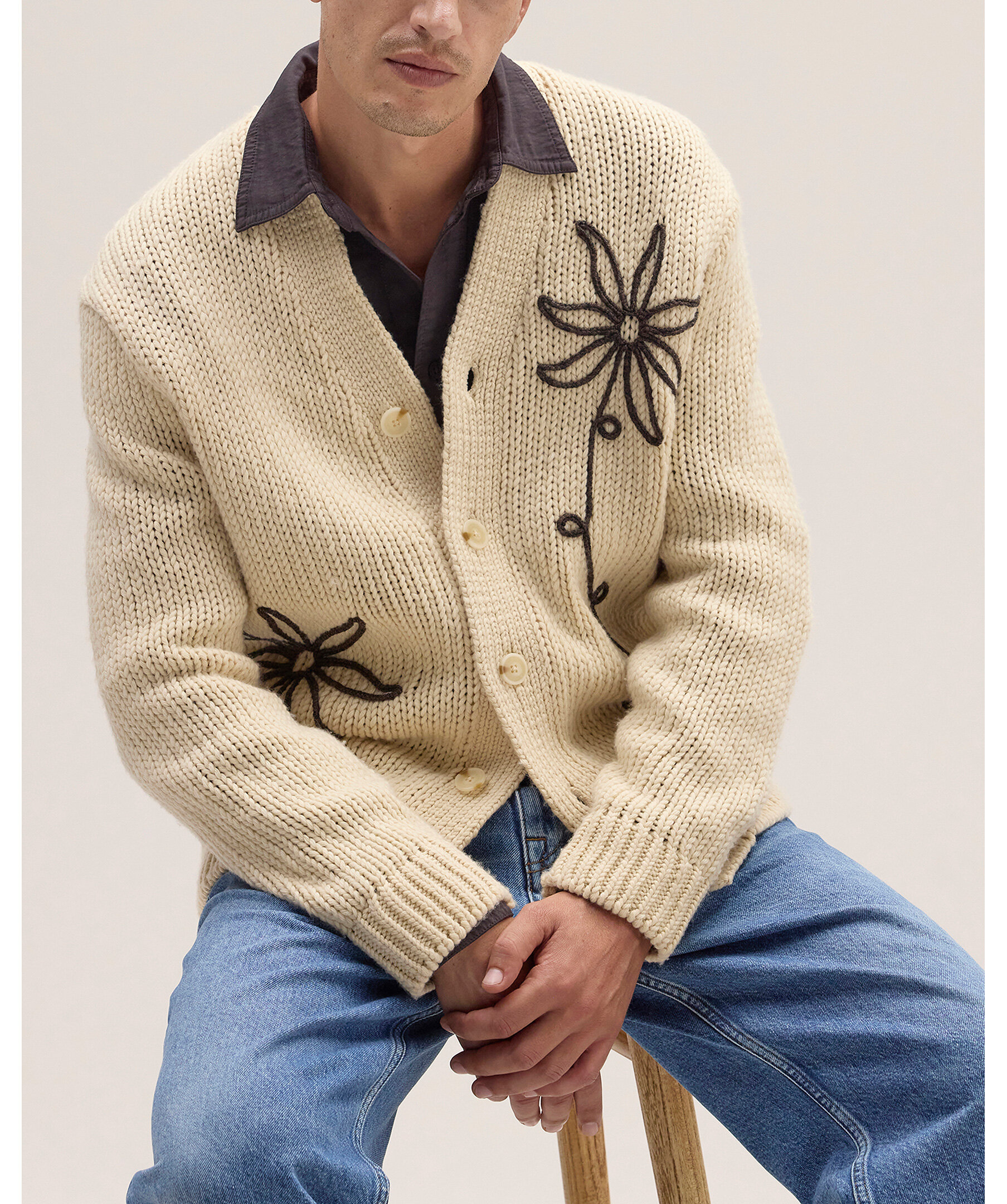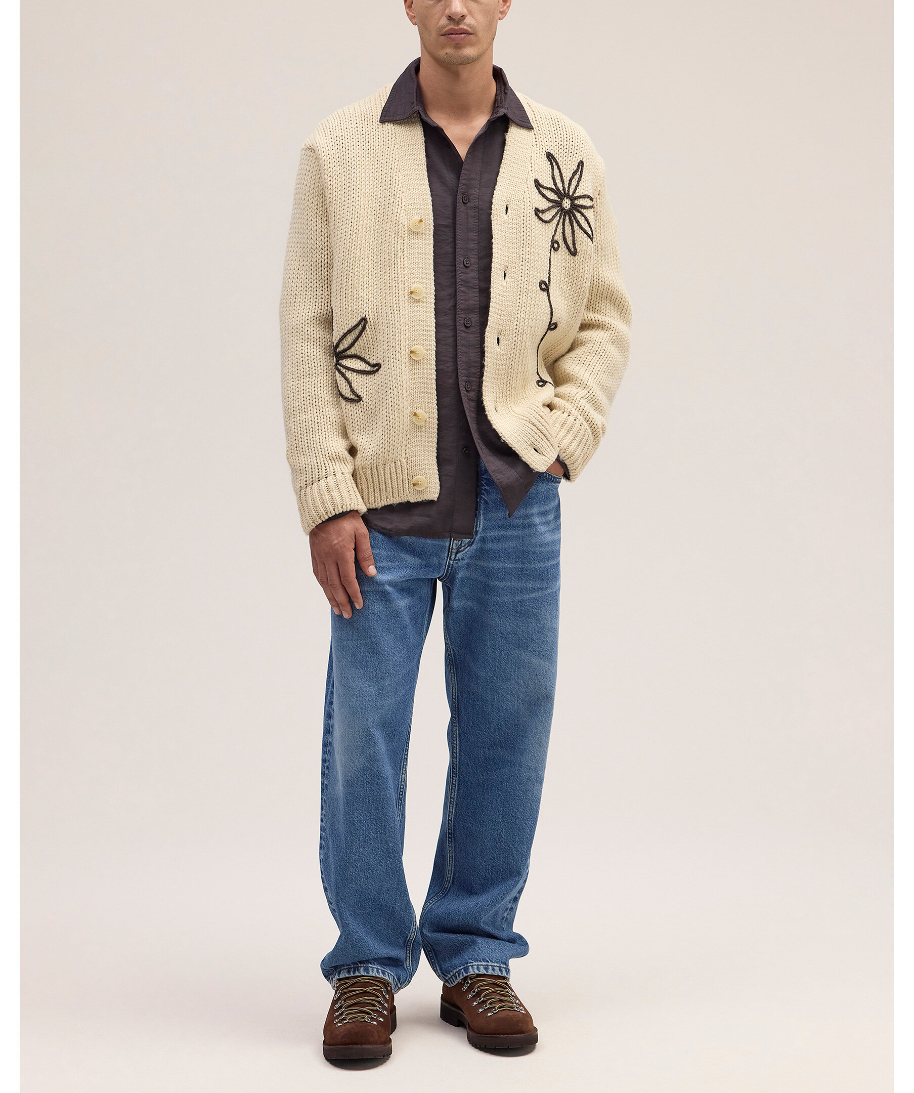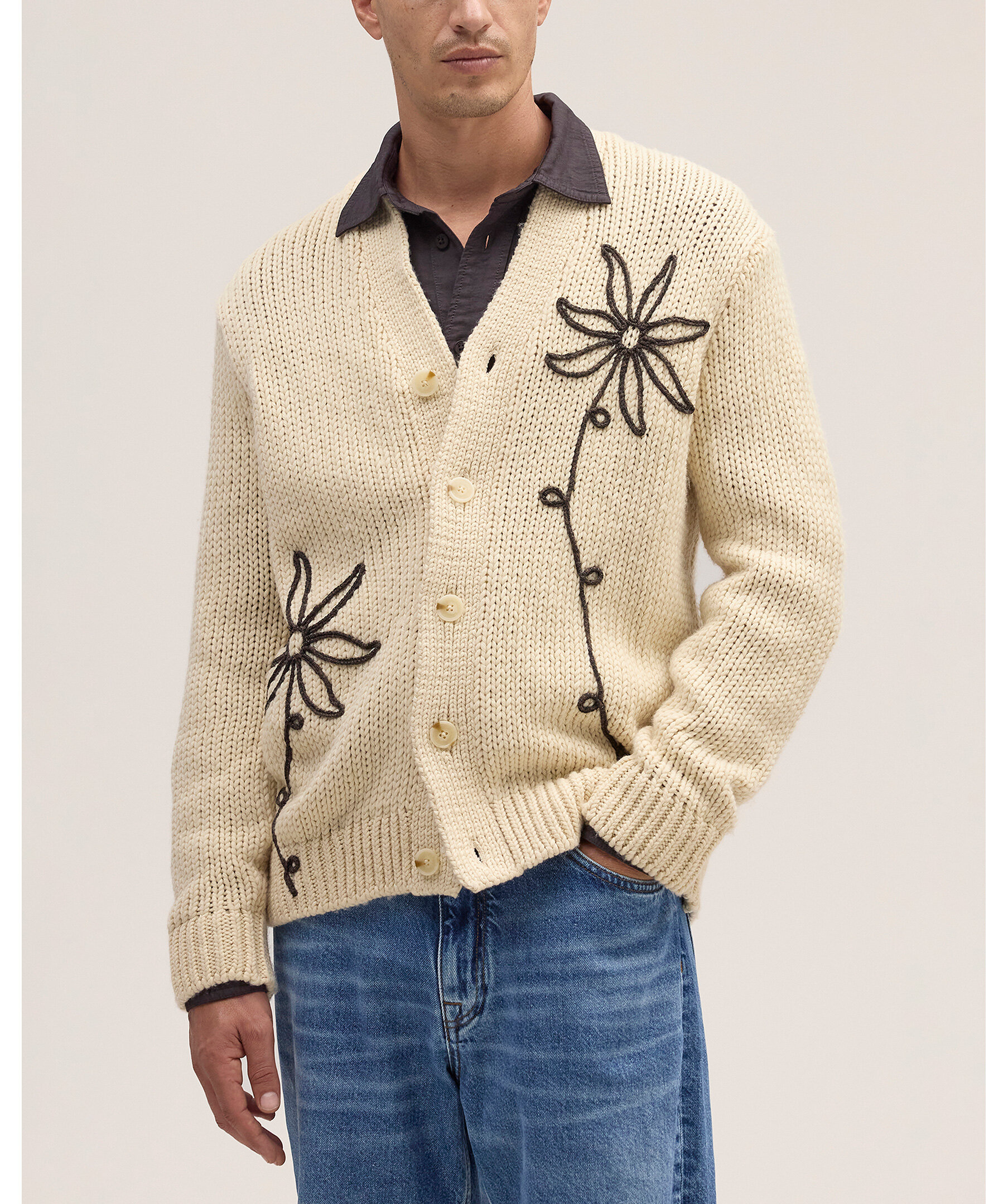 Ecru cardigan Mika Flower från NN07 i mjuk, återvunnen polyester med knäppning fram och subtilt intarsia‑motiv – ett behagligt mellanlager som passar perfekt i lager‑på‑lager‑looks under årets kallare månader.