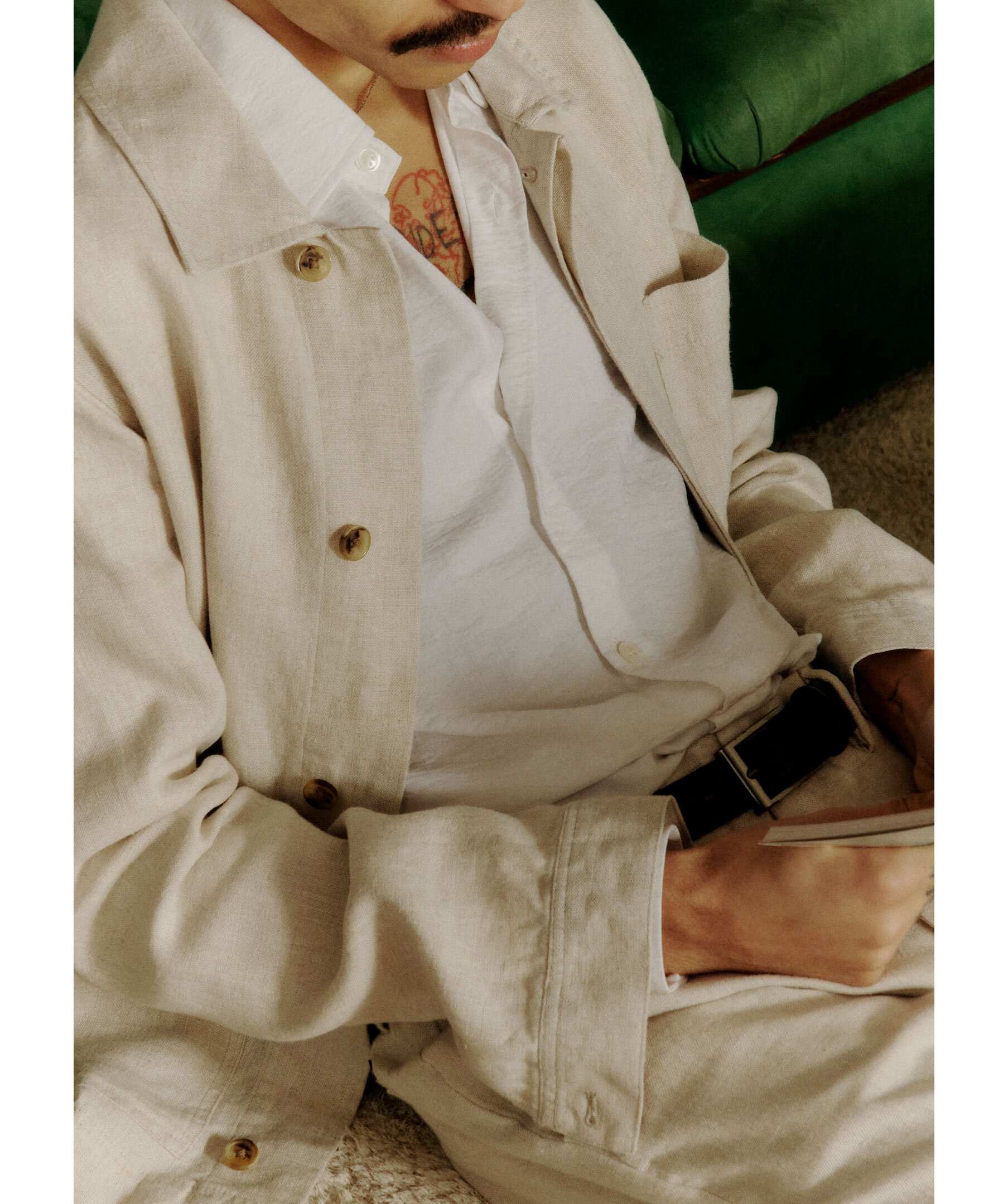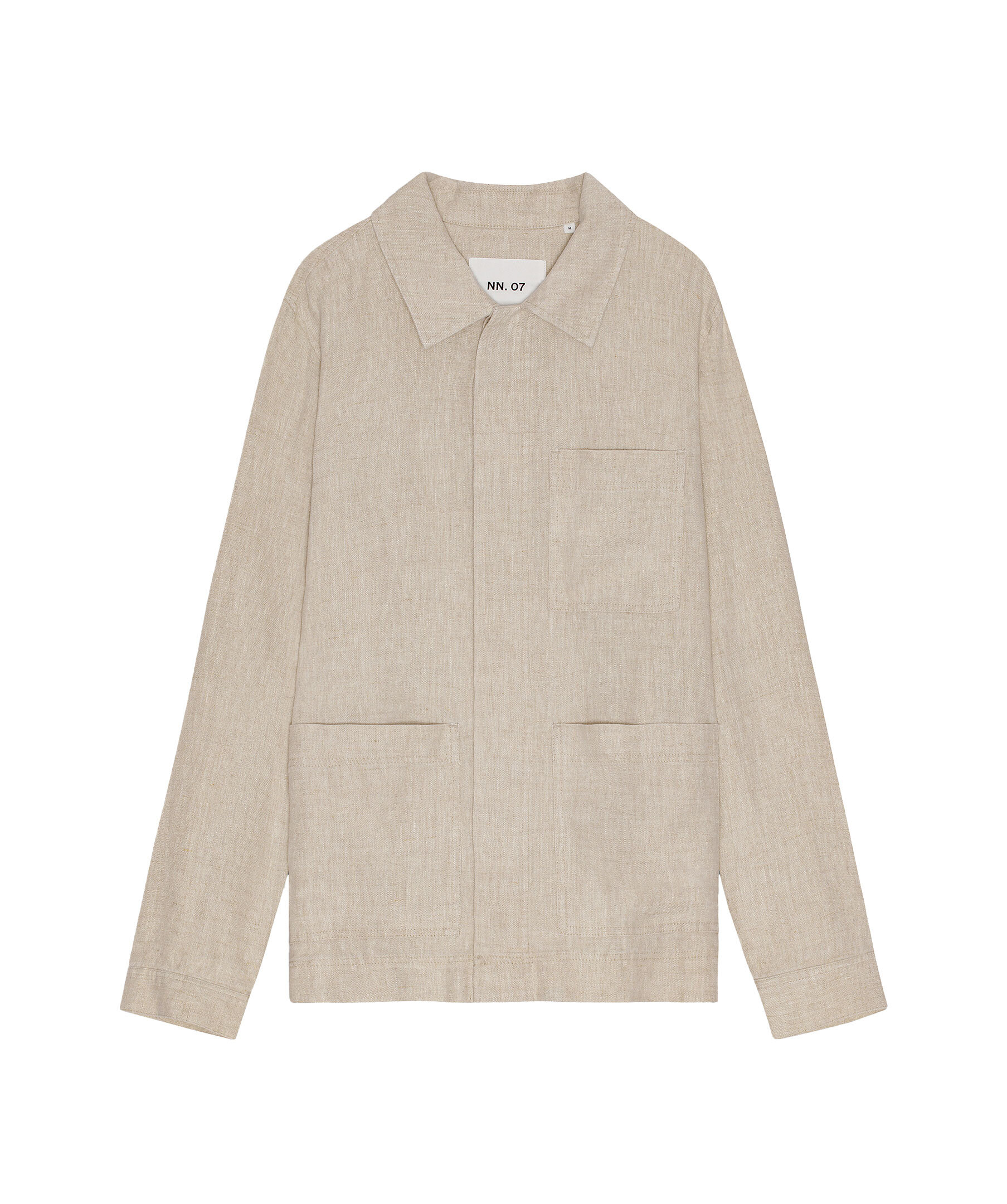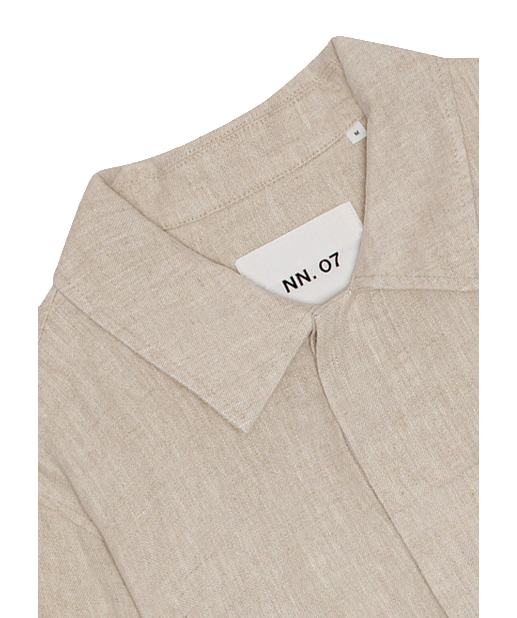 Sandfärgad overshirt från NN07. Designad med en mjuk krage, en enkel bröstficka och dubbla fickor i midjan, toppade med dolda knappar under knappslået. Ofodrad. Tillverkad i 100% linne.