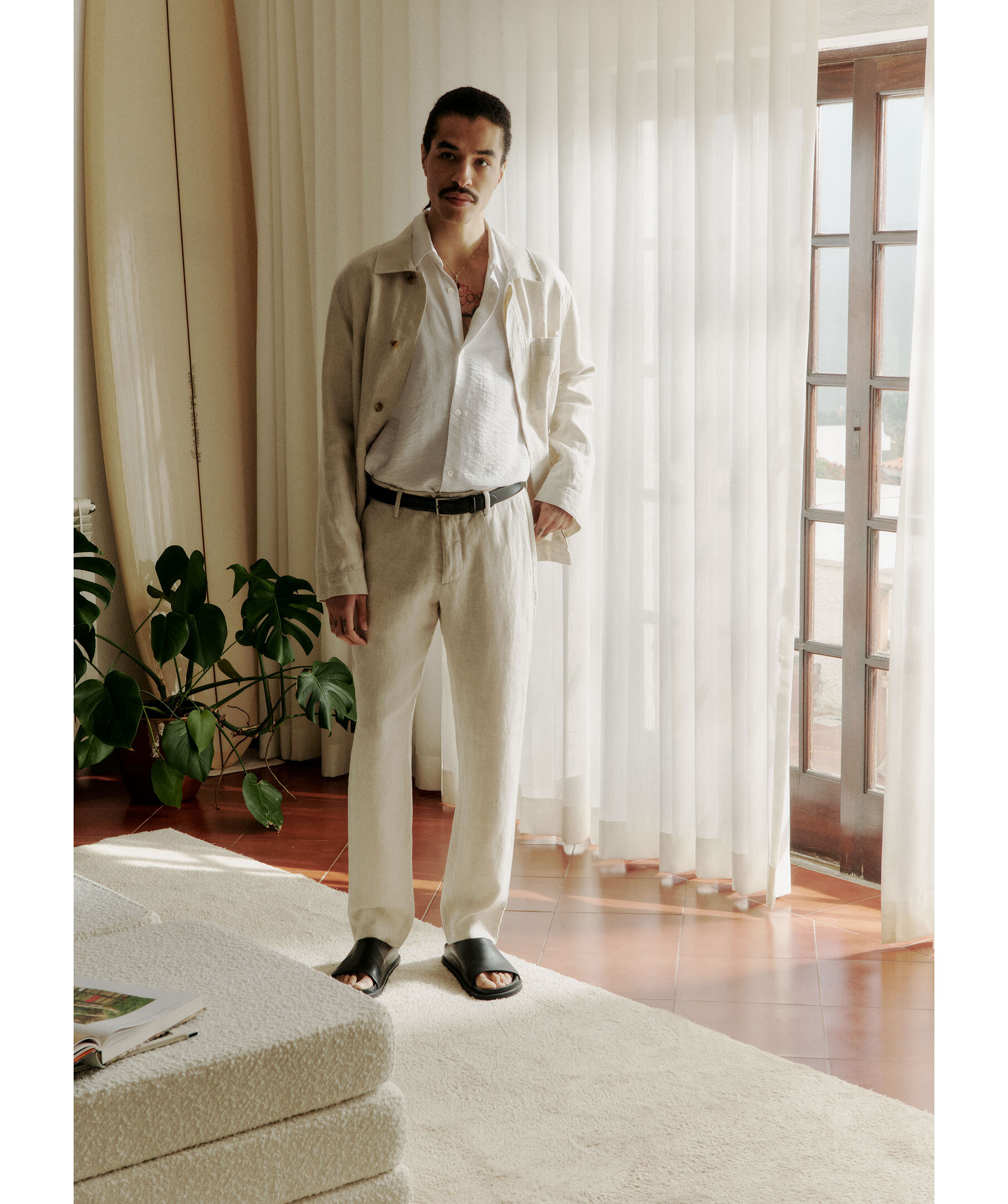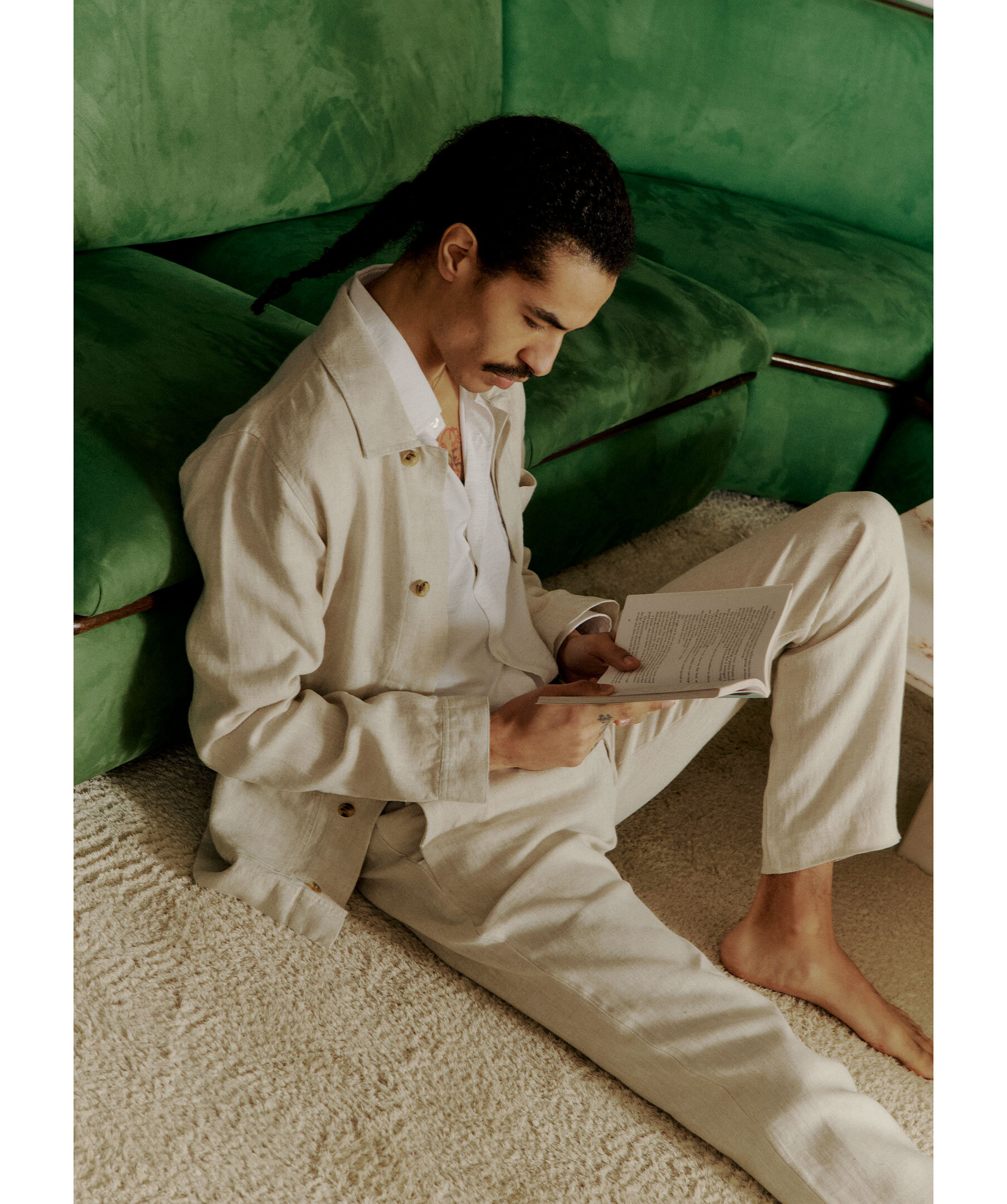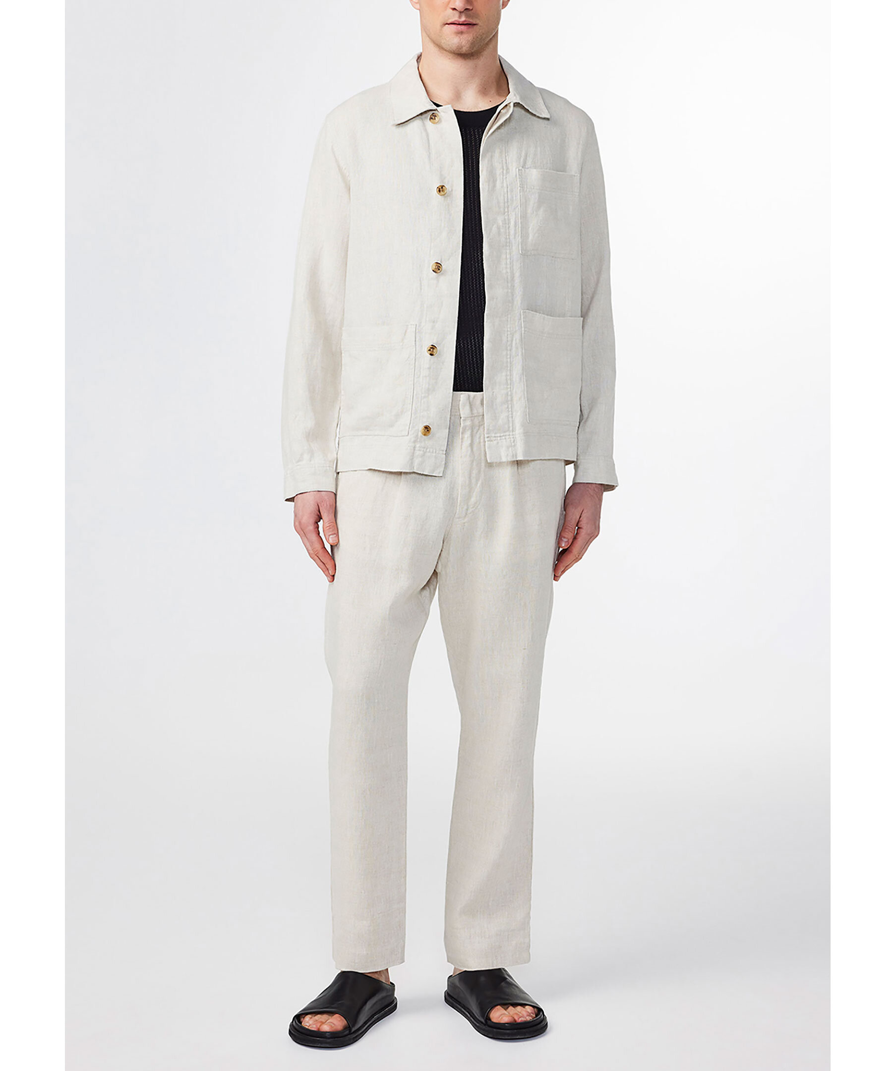 Sandfärgad overshirt från NN07. Designad med en mjuk krage, en enkel bröstficka och dubbla fickor i midjan, toppade med dolda knappar under knappslået. Ofodrad. Tillverkad i 100% linne.