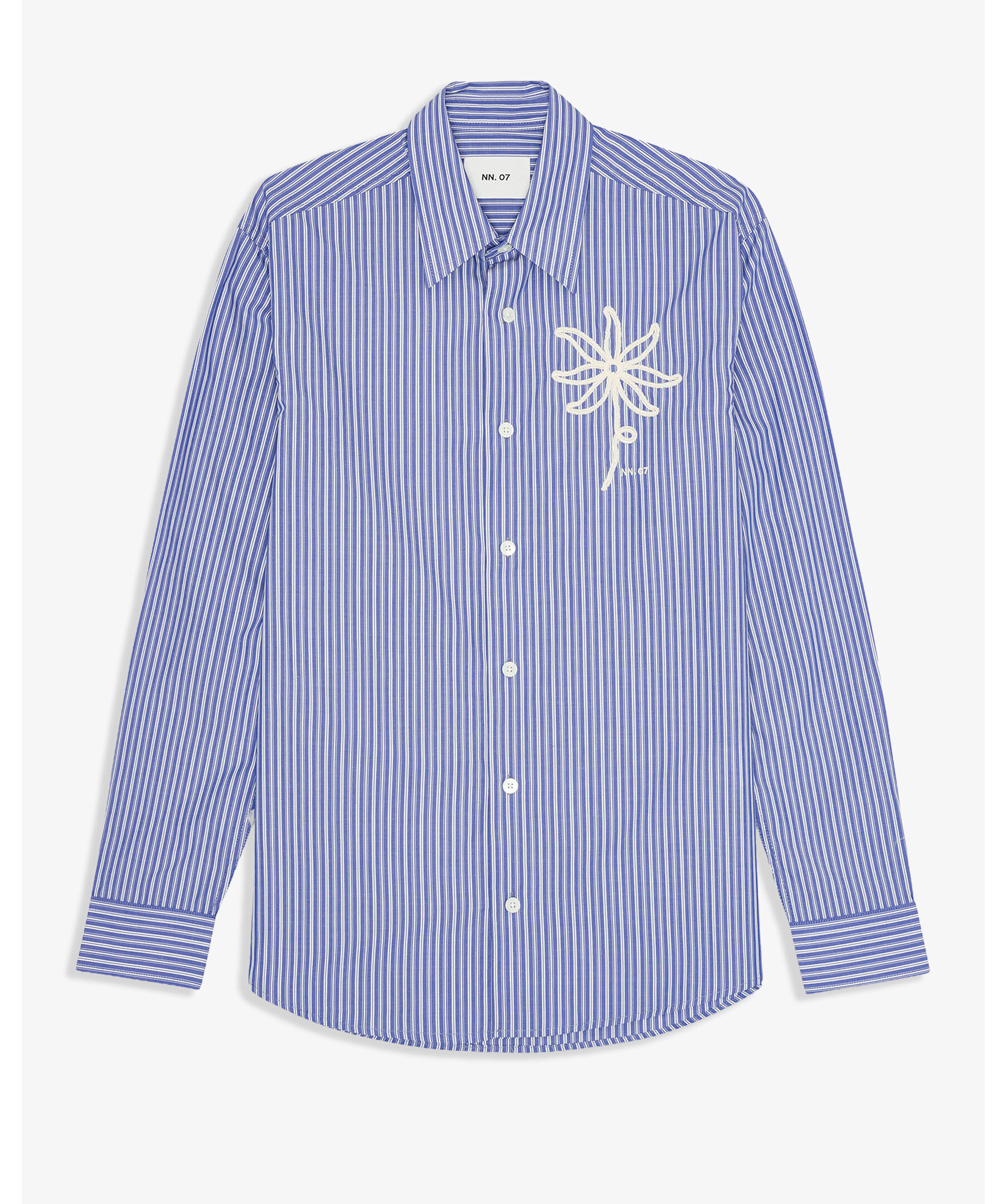 Blå randig Pima-bomullsskjorta från NN07 i regular fit med krispig satin-väv och pärlemorknappar. En elegant, klassisk skjorta som fungerar lika bra till chinos som jeans i både vardag och mer uppklädda looks.