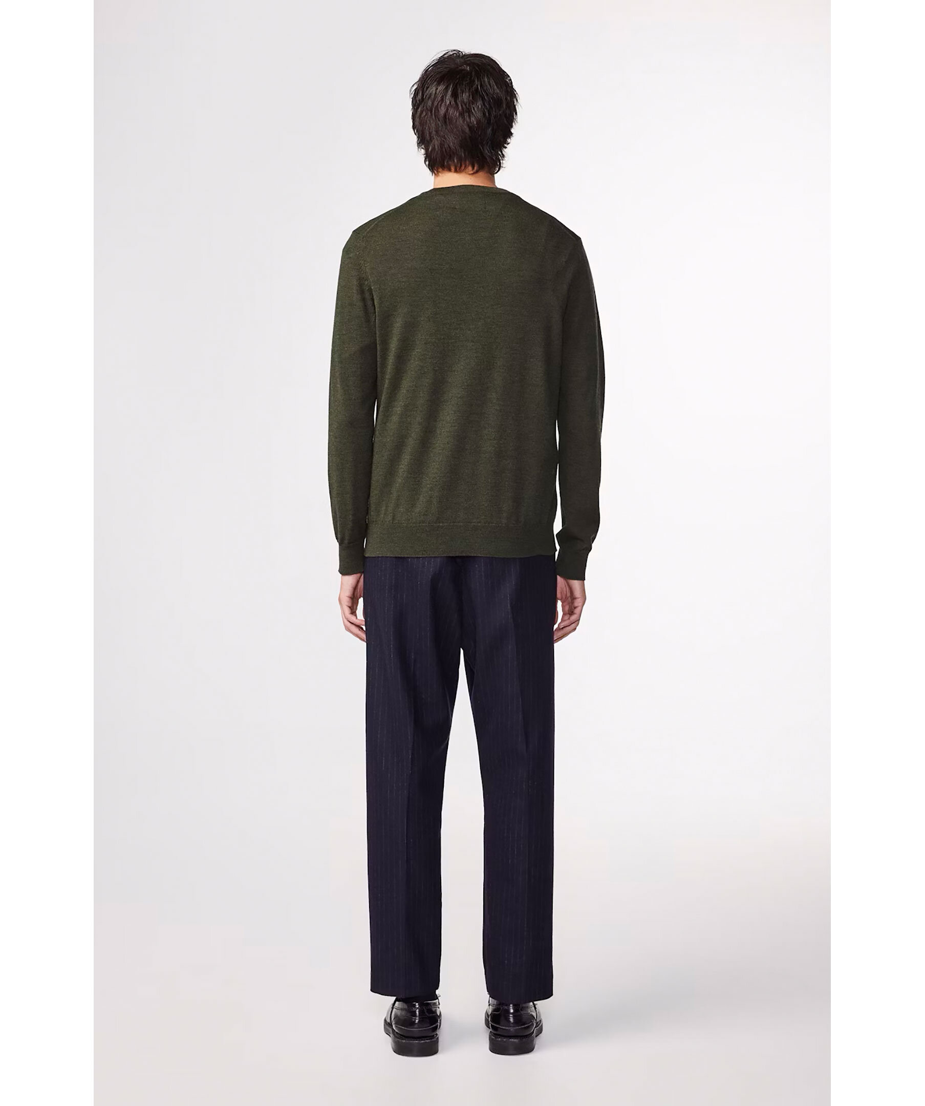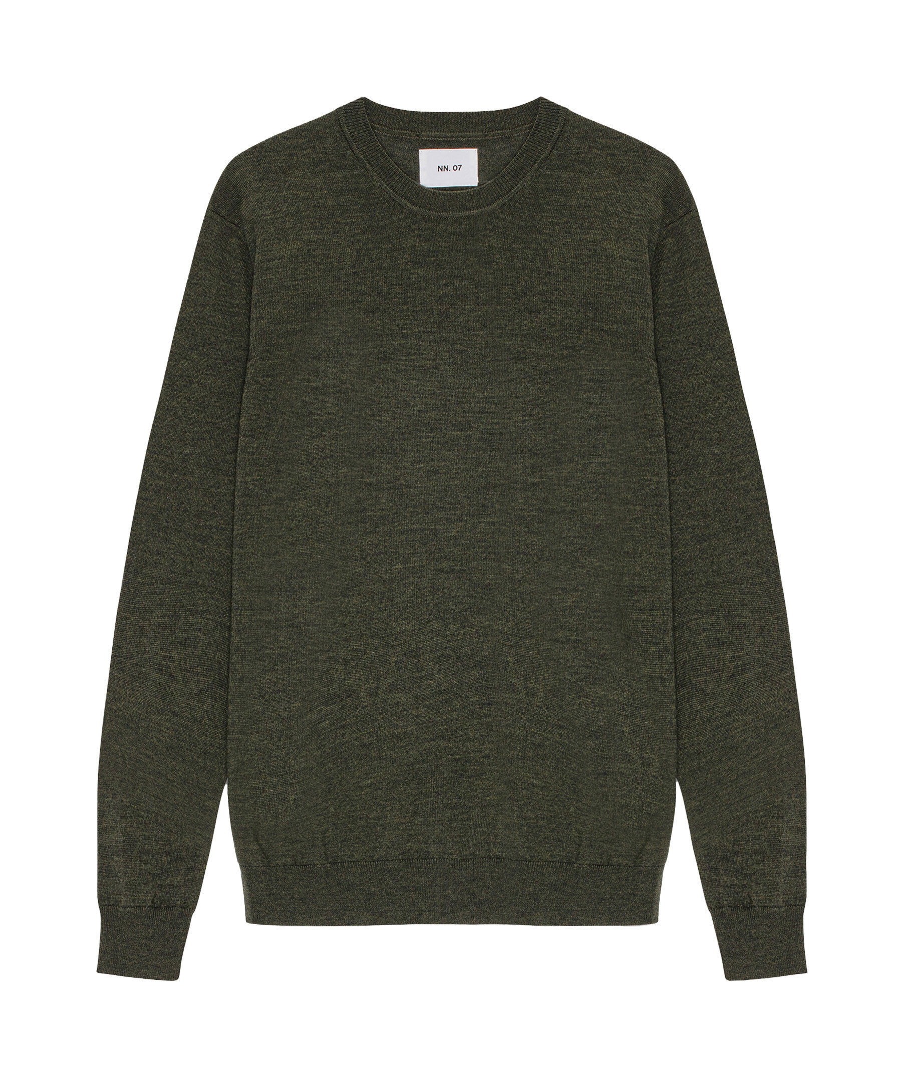 Mörkgrön stickad tröja från NN.07. Rundhalsad och tillverkad i mjuk, ansvarsfull ull. Med en axel som faller bakåt med subtila modemärken.