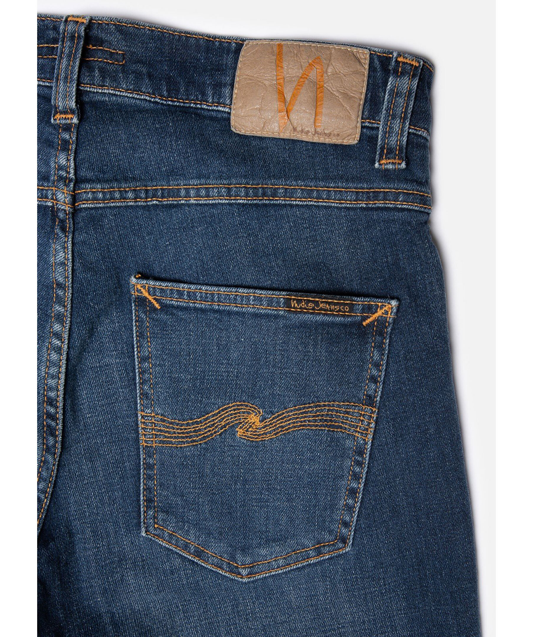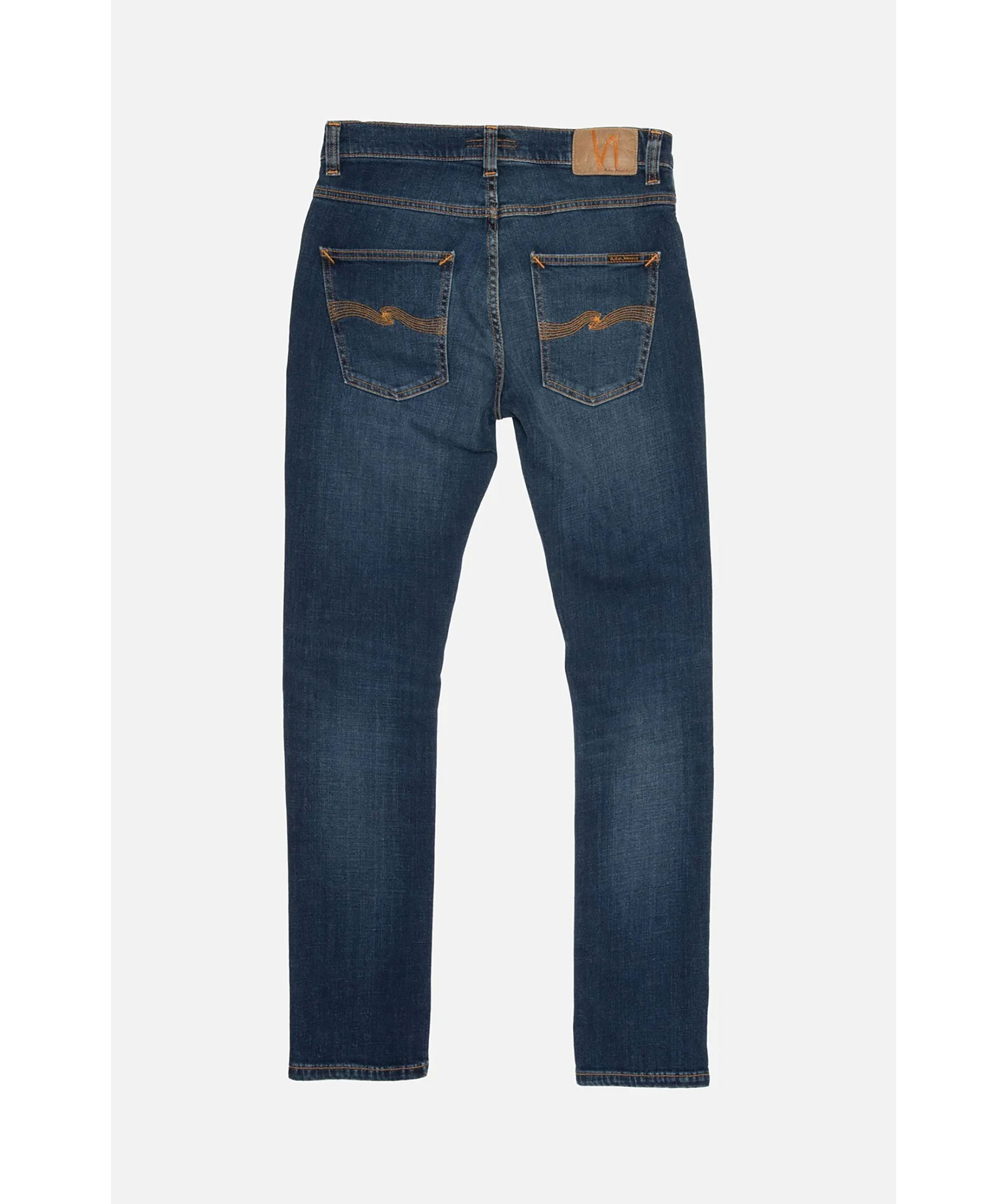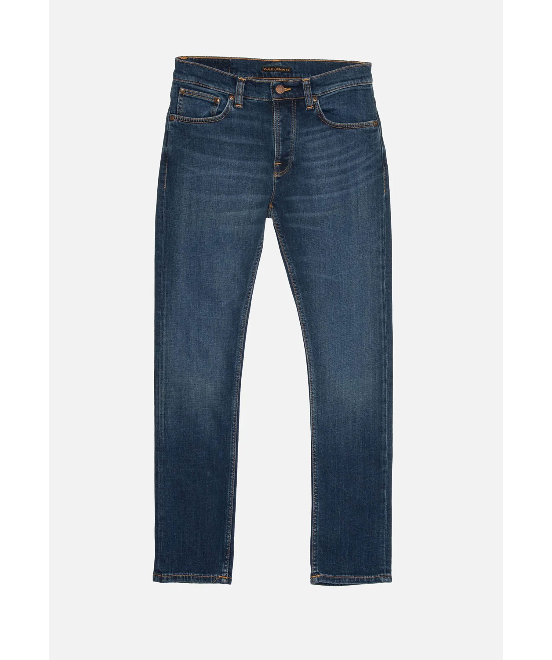 Blåa jeans från Nudie Jeans. Jeansen har en smal passform med raka ben, fem fickor, bälteshällor, låg midja samt orangea sömmar och koppar detaljer. Tillverkade i en bomullsblandning.