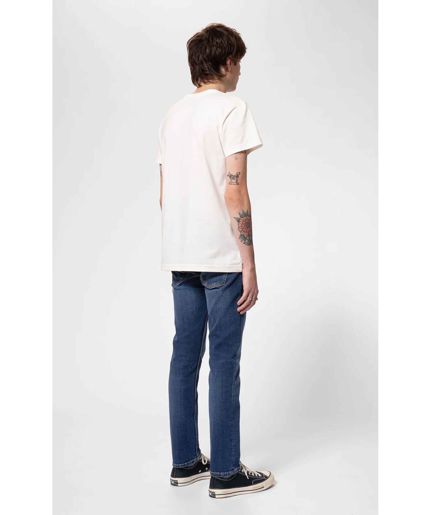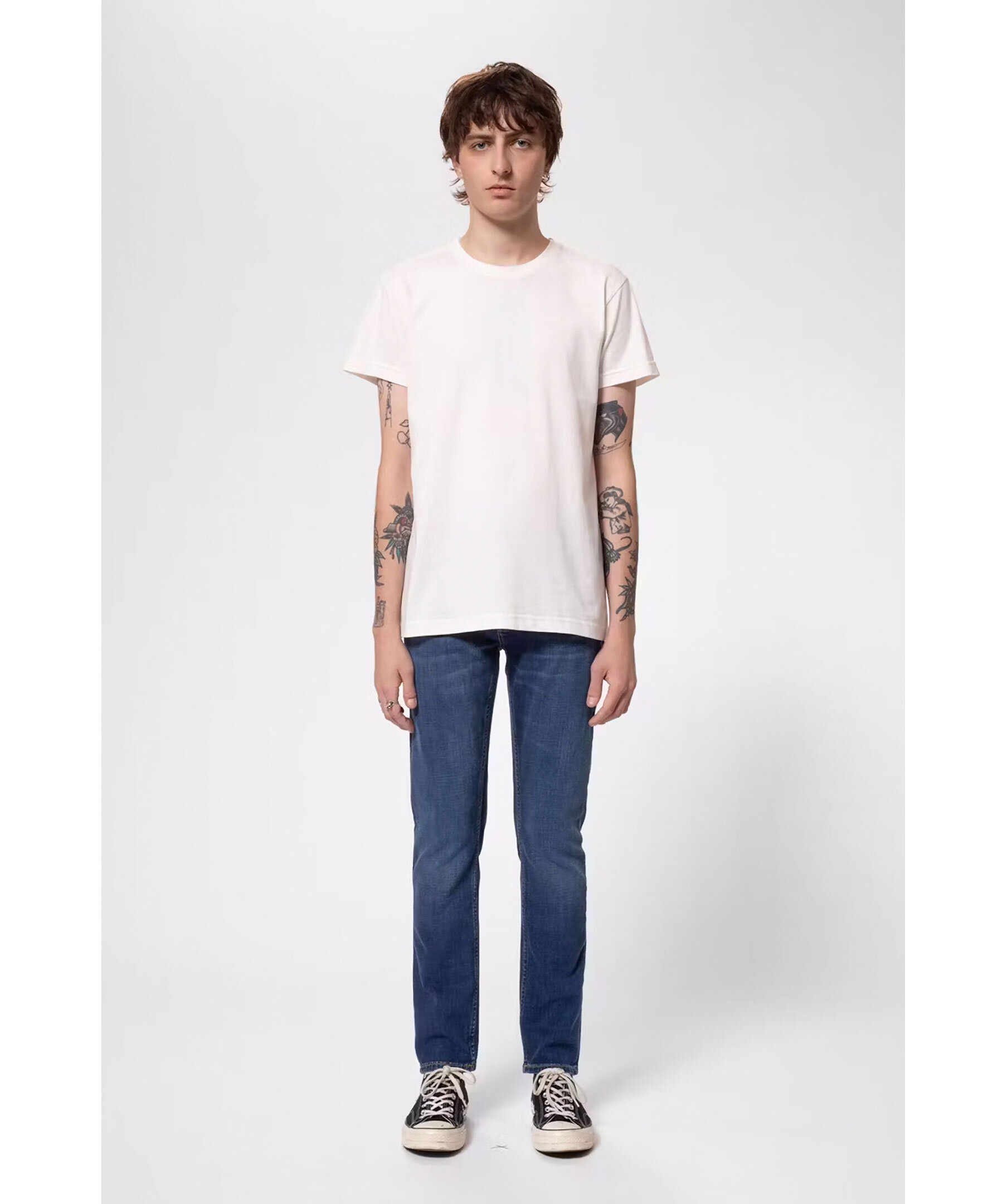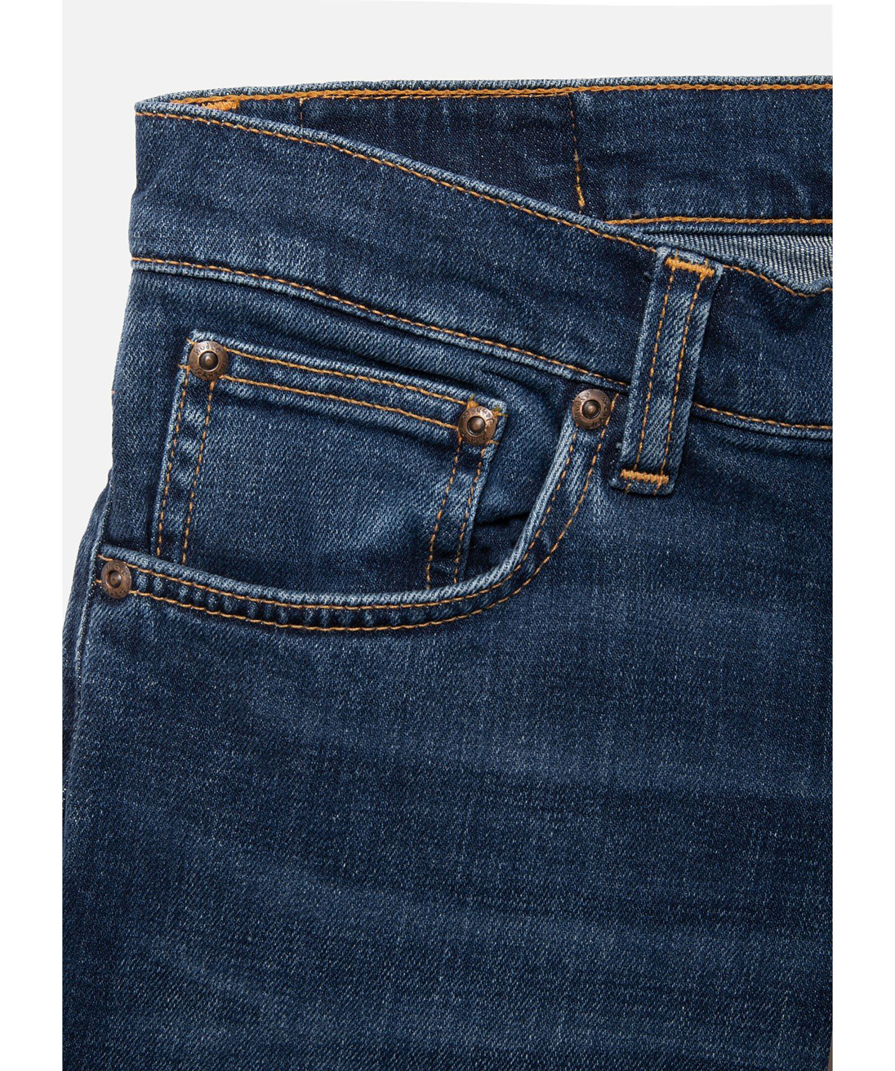 Blåa jeans från Nudie Jeans. Jeansen har en smal passform med raka ben, fem fickor, bälteshällor, låg midja samt orangea sömmar och koppar detaljer. Tillverkade i en bomullsblandning.