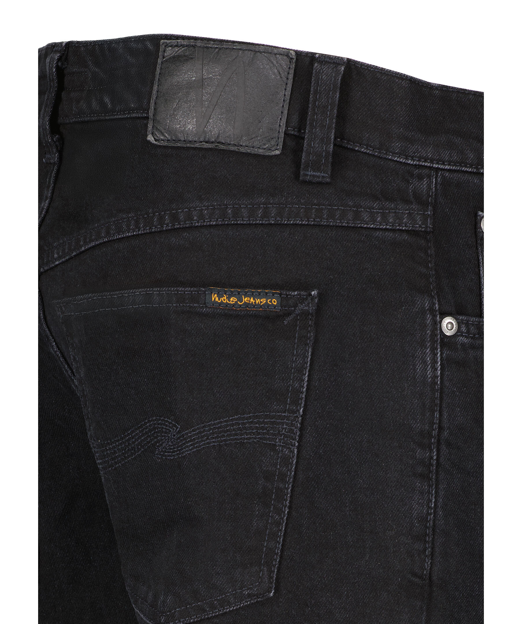 Svarta jeans från Nudie Jeans. Jeansen har fem fickor, bälteshällor och dekorativa sömmar på bakfickorna. Tillverkade av en bomullsblandning.