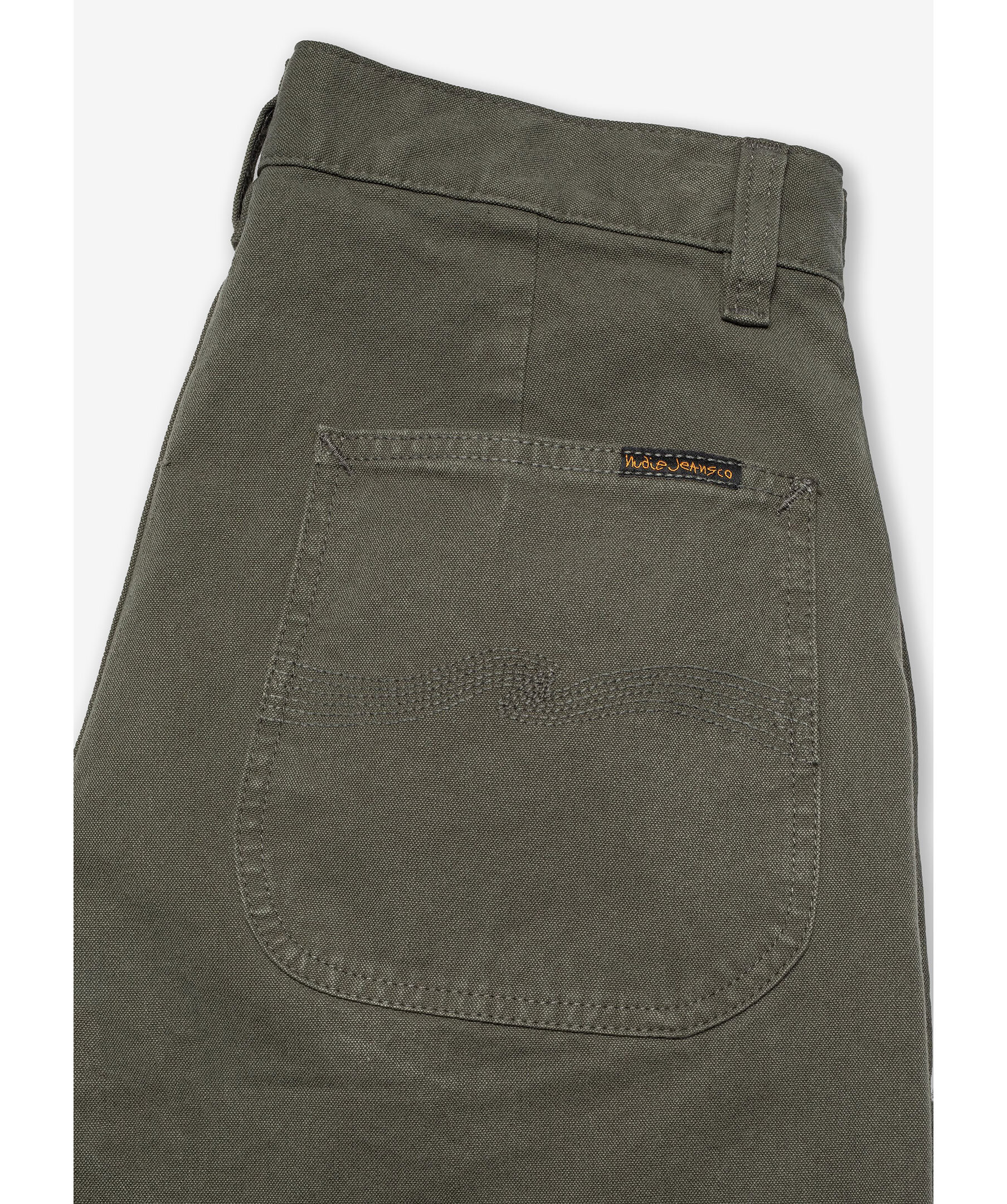 Mörkgröna byxor från Nudie. Byxorna har en hög midja med bälteshällor, vida ben, två snedställda sidfickor, en myntficka samt två bakfickor. Tillverkade i bomull.