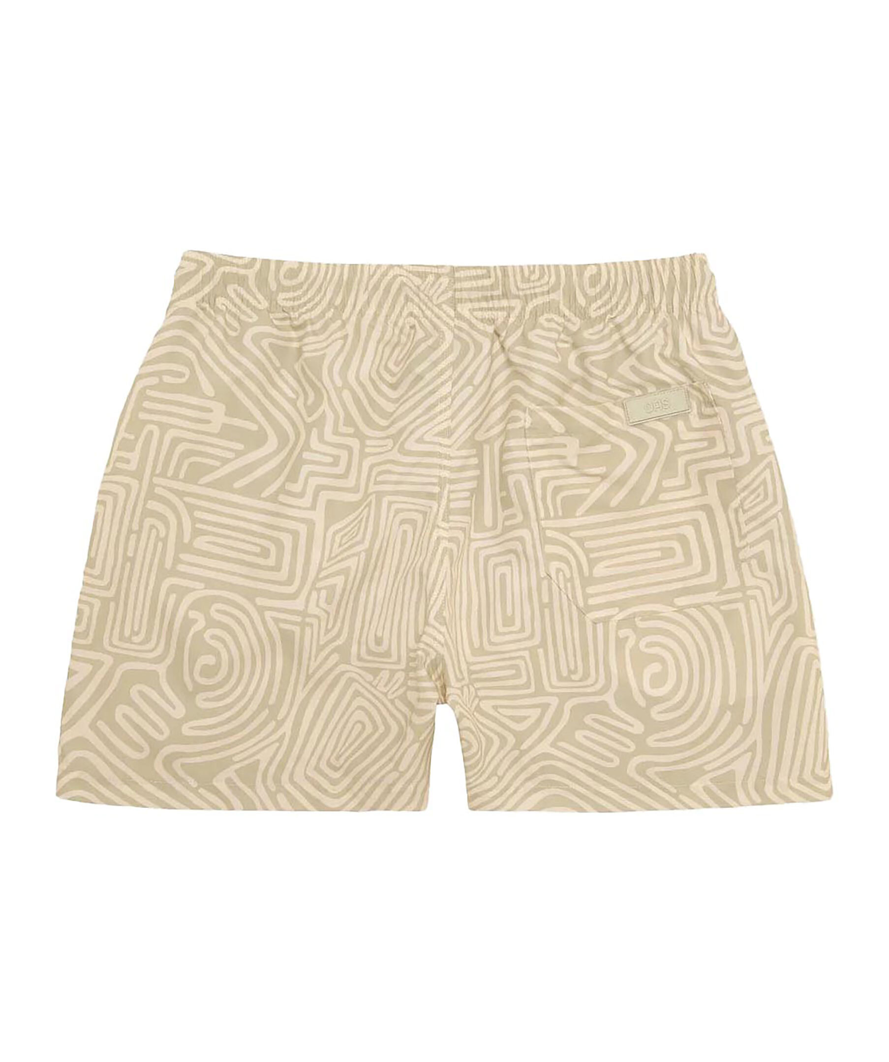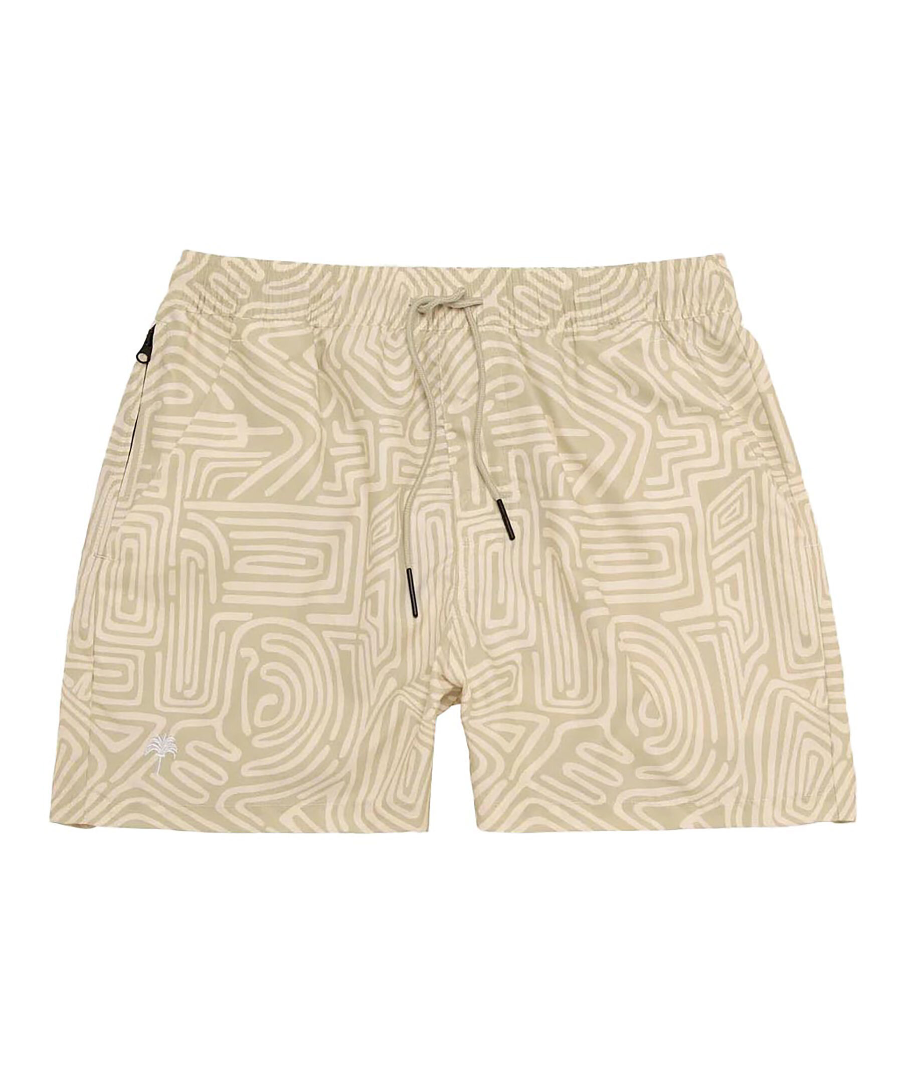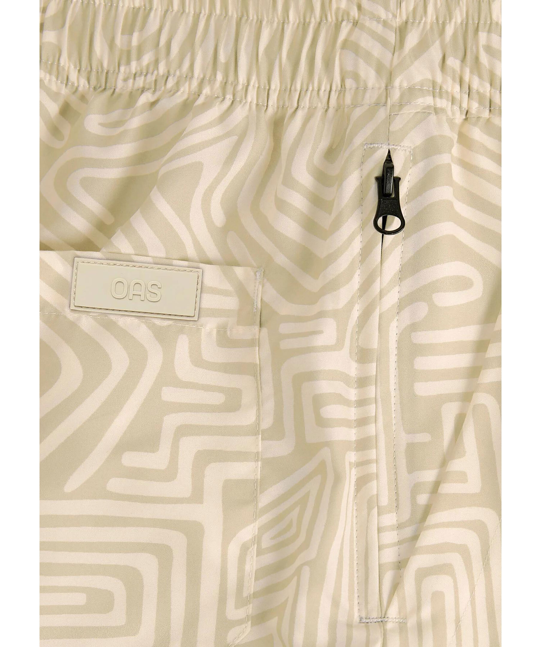 Krämvita, mönstrade badshorts från OAS. Shortsen har elastisk dragsko i midjan och inbyggda meshkalsonger för komfort och stöd. Förvara nycklar och kort säkert i den dolda dragkedjefickan. Shortsen har även två öppna sidfickor och en bakficka med logotyp. Tillverkade i snabbtorkande polyester.