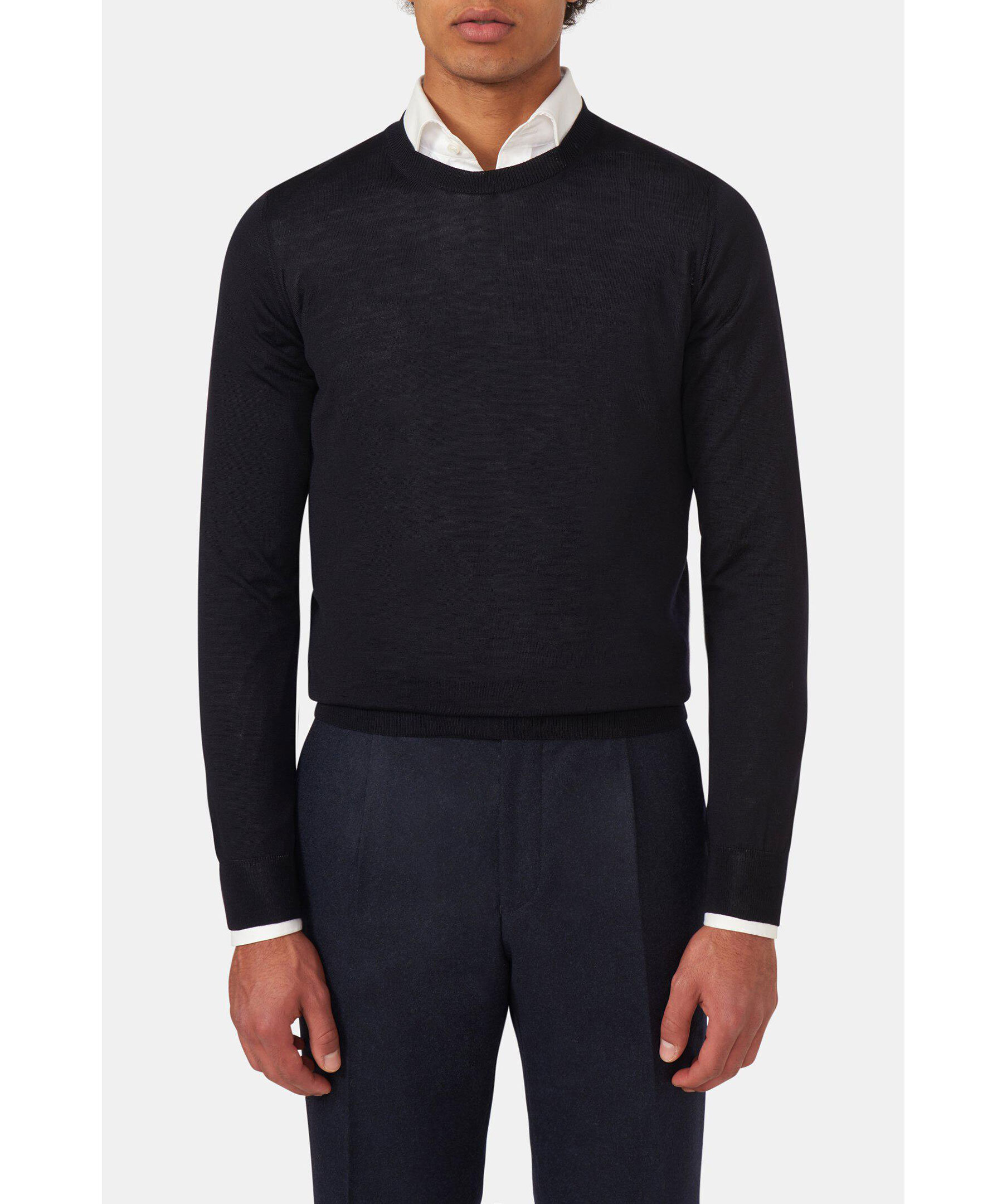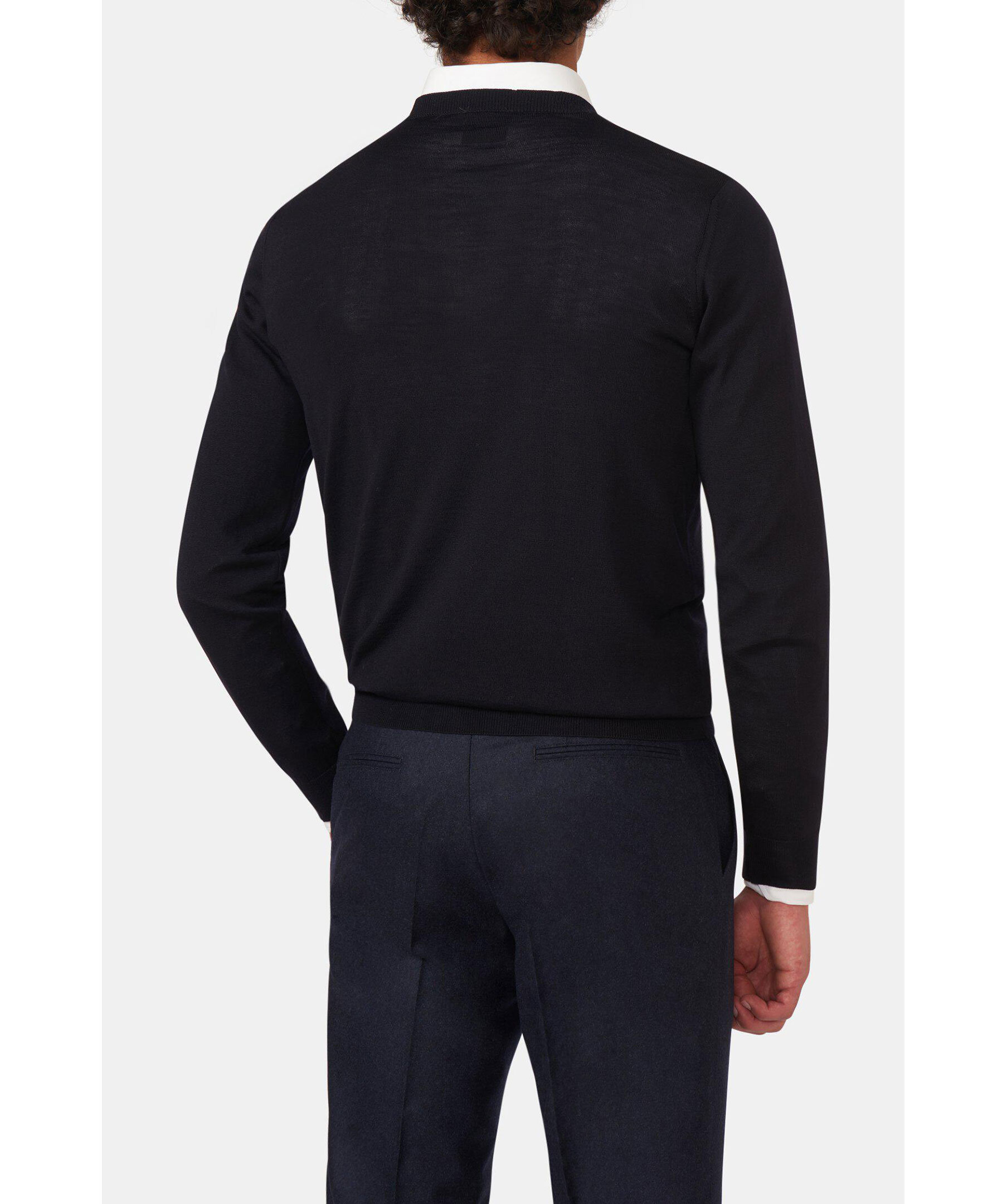 Enkelt och ursnyggt! Den här tröjan är tillverkad i en tunt stickad merinoull från Zegna Baruffa. Bär den över skjortan eller under kavajen för en elegant avskalad look.