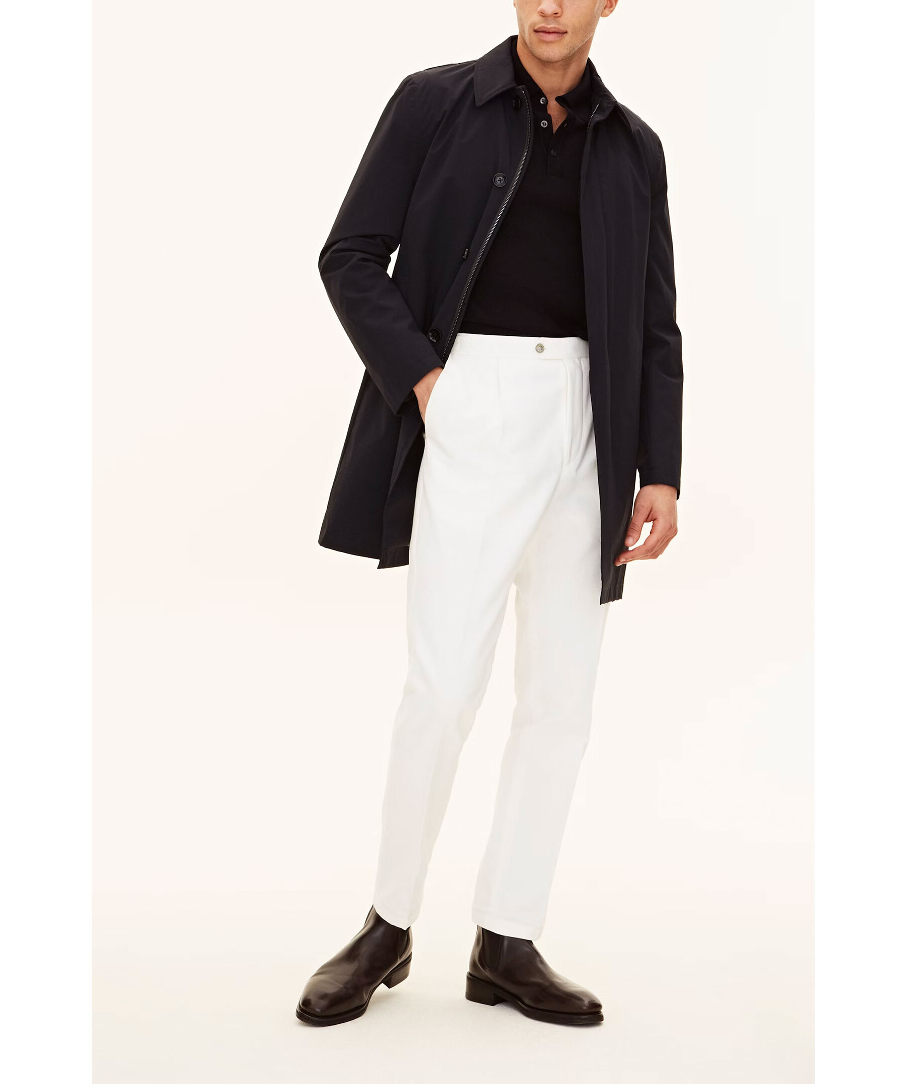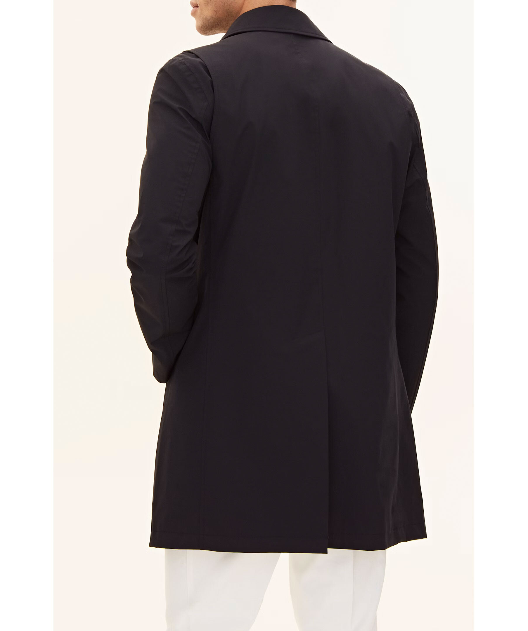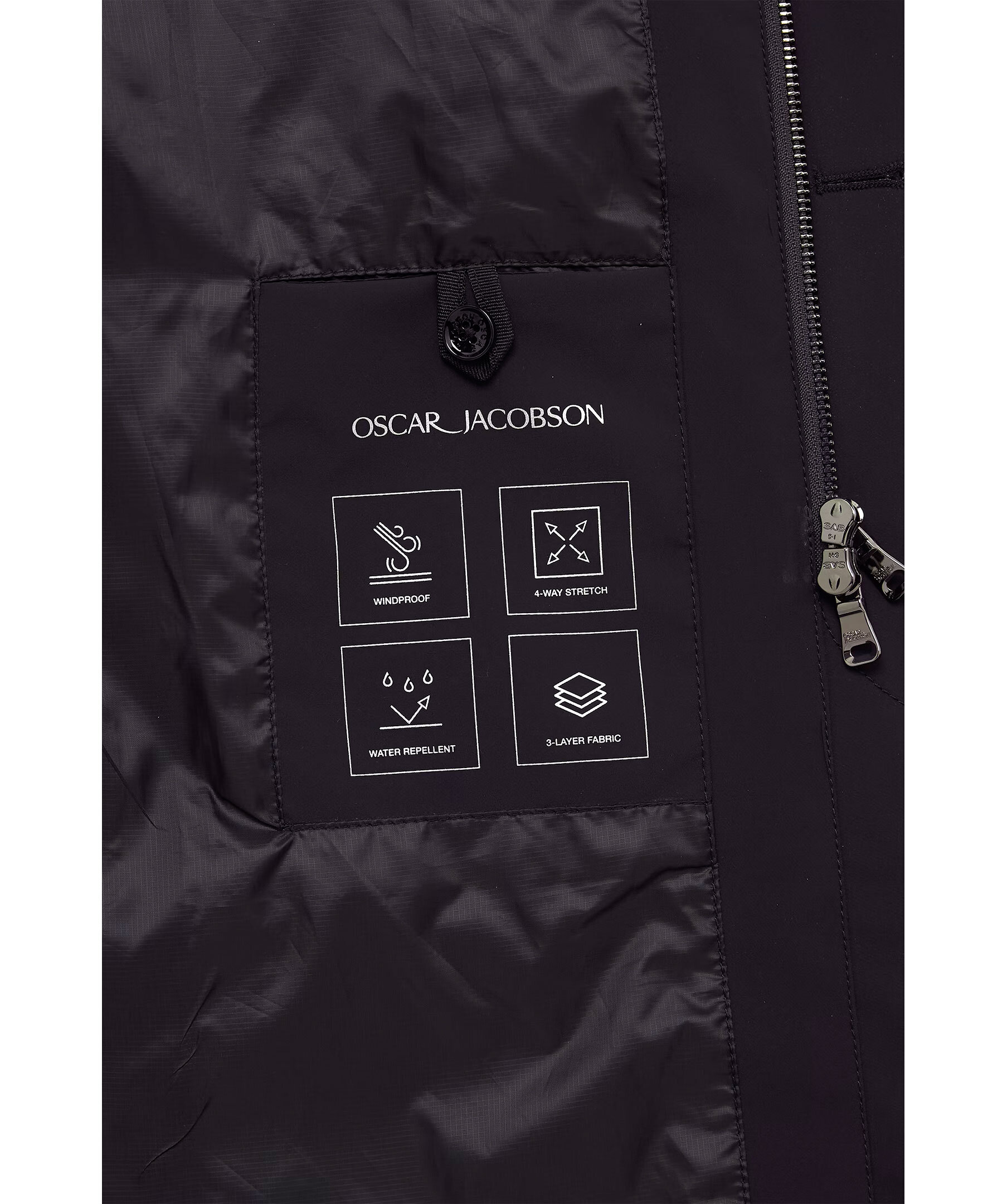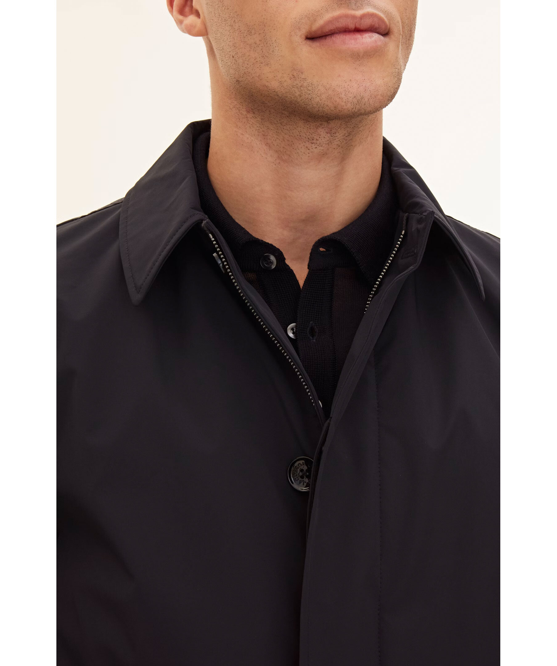 Mörkblå Car Coat från Oscar Jacobson. Gjord i Nylon Shell och är designad för att vara ett heltäckande skalplagg till din vardag och fungera till både formell kostym och lediga jeans. Utöver det vattenavvisande och vattentäta yttertyget så har rocken tejpade sömmar i axel och rygg för att hålla dig torr i tuffare väderförhållanden. Insidan av rocken är täckt i ett slitstarkt ripstop-foder och innehåller tre innerfickor samt knappar till infästning av våra liner-västar. Nylon Shell är vårt tre-lagers skalmaterial, framtaget för att skydda mot väder och vind helt utan att kompromissa på rörlighet, andningsförmåga eller stil.