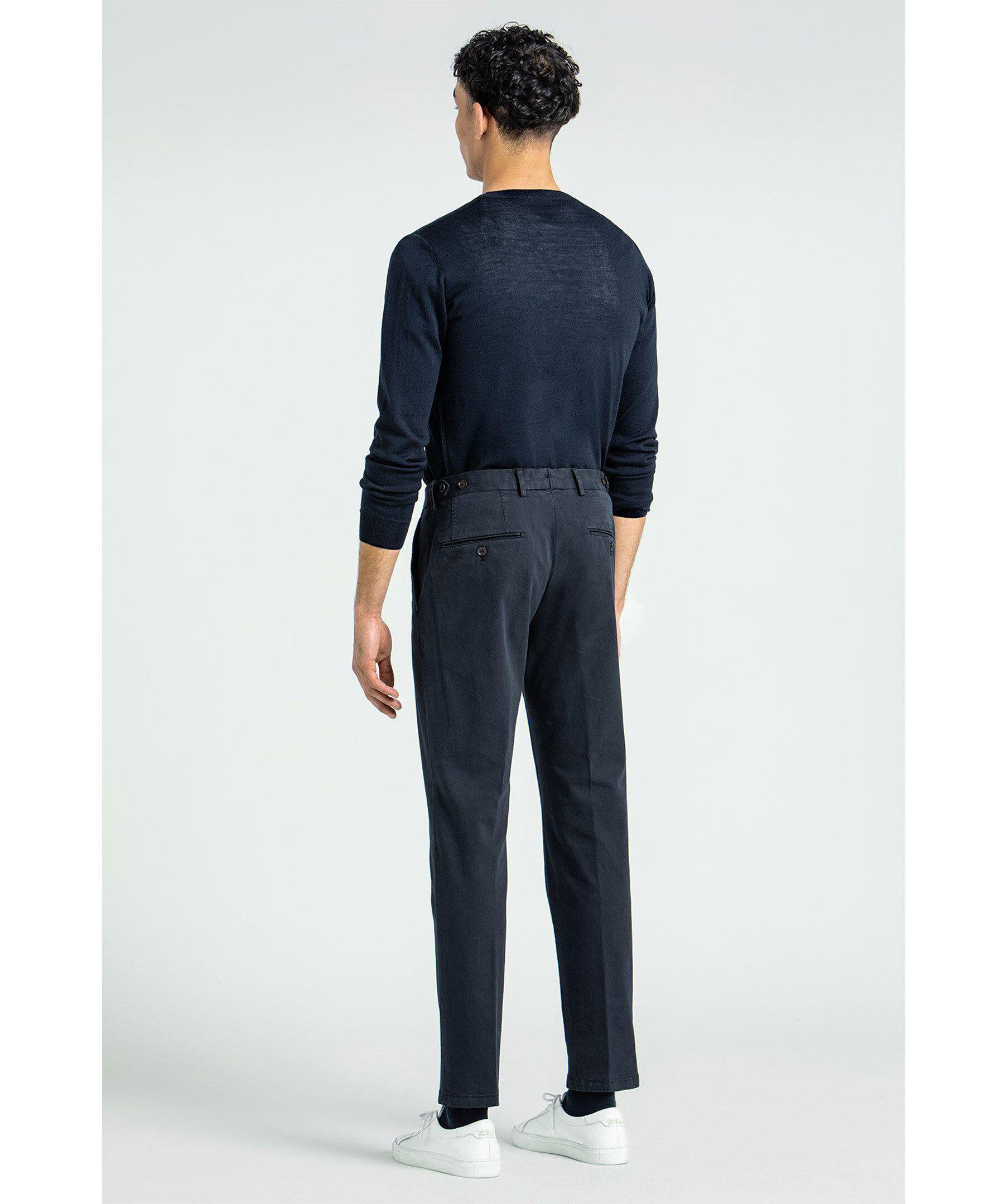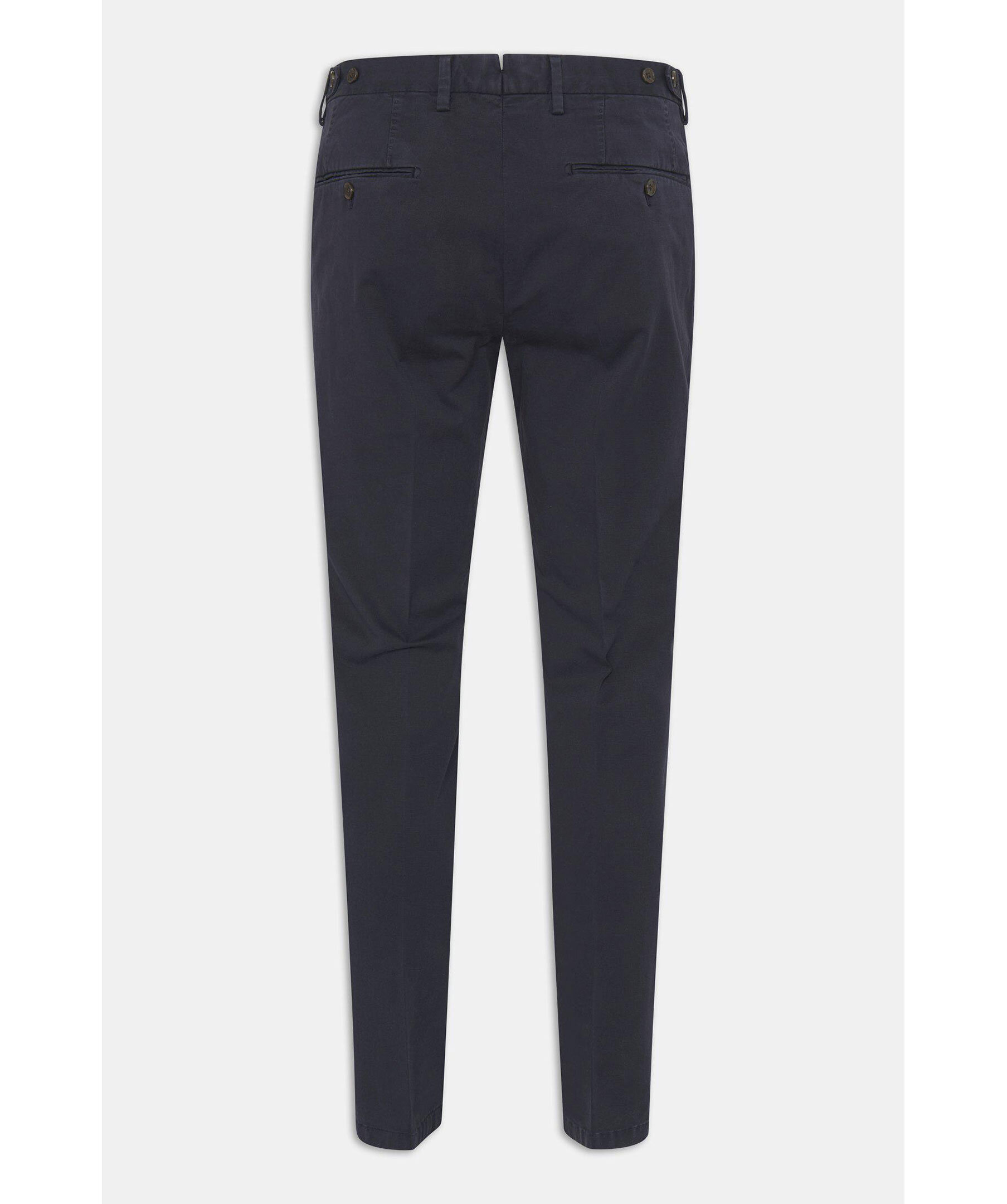 En uppdaterad version av den klassiska chinos-byxan. Den här modellen är regular fit, normalhög midja och en benlängd där byxan slutar precis ovanför skon och får ett naturligt fall utan bryt. Midjan är försedd med side adjusters - en stilfull detalj som dessutom kan användas för att göra byxans midjemått några cm mindre.
