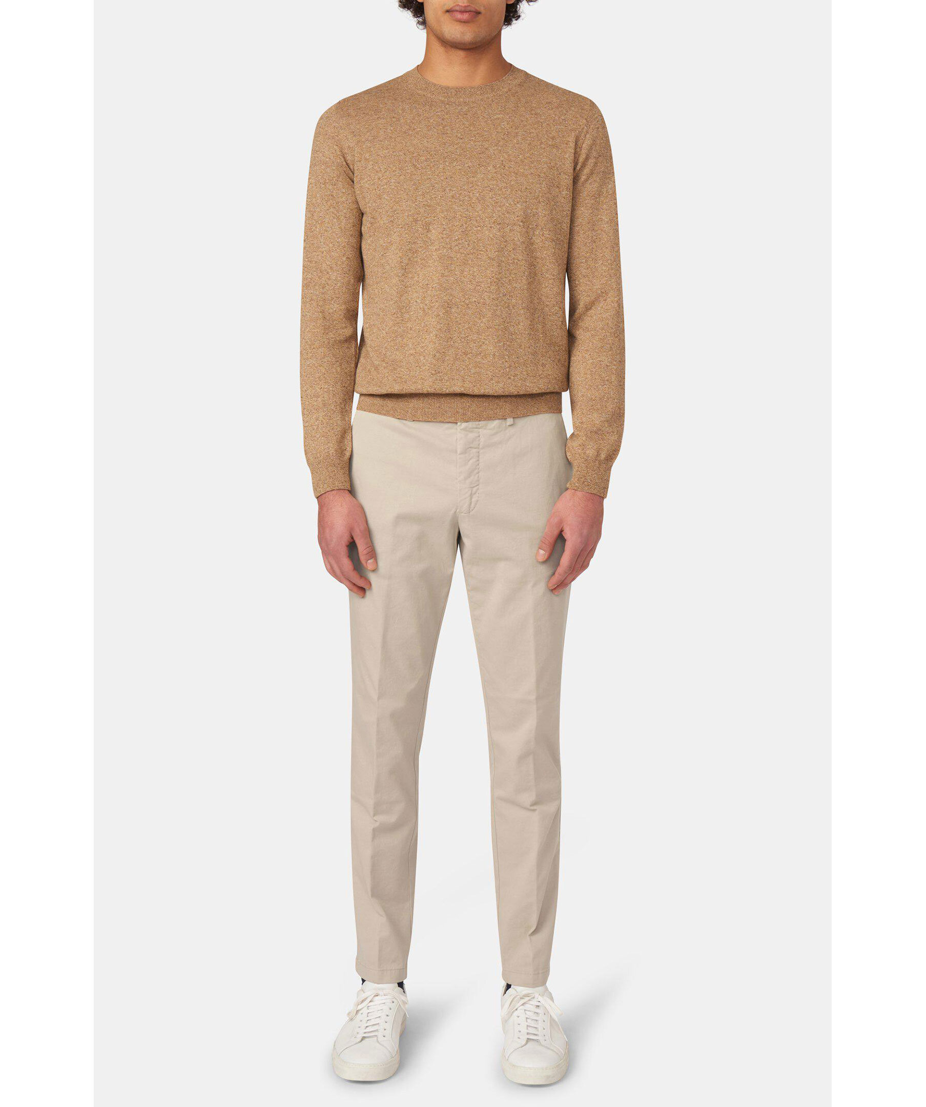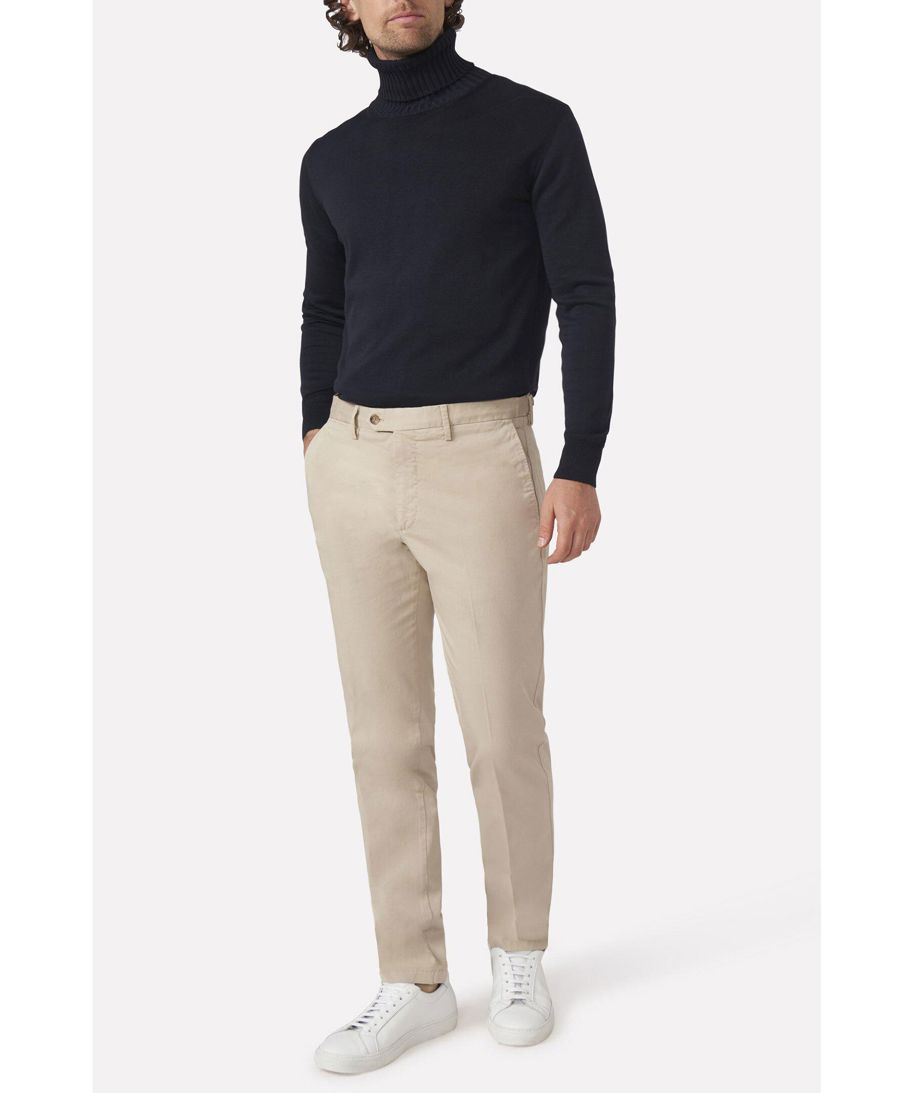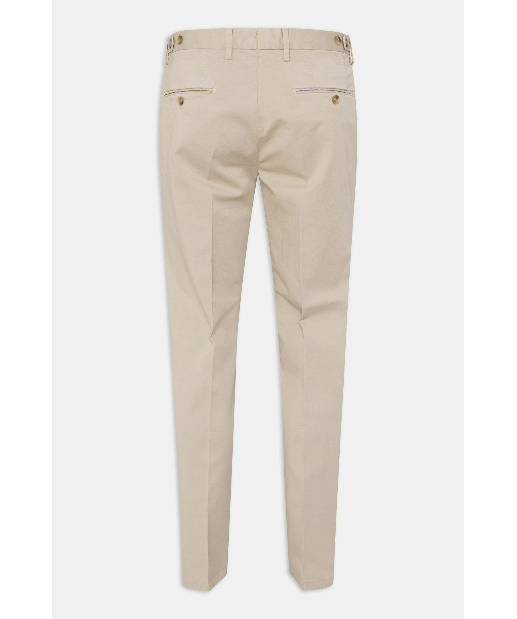 En uppdaterad version av den klassiska chinos-byxan. Den här modellen är regular fit, normalhög midja och en benlängd där byxan slutar precis ovanför skon och får ett naturligt fall utan bryt. Midjan är försedd med side adjusters - en stilfull detalj som dessutom kan användas för att göra byxans midjemått några cm mindre.