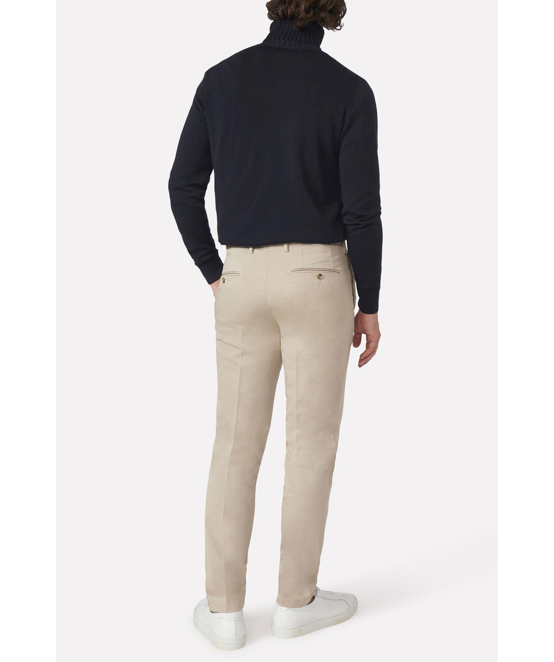En uppdaterad version av den klassiska chinos-byxan. Den här modellen är regular fit, normalhög midja och en benlängd där byxan slutar precis ovanför skon och får ett naturligt fall utan bryt. Midjan är försedd med side adjusters - en stilfull detalj som dessutom kan användas för att göra byxans midjemått några cm mindre.