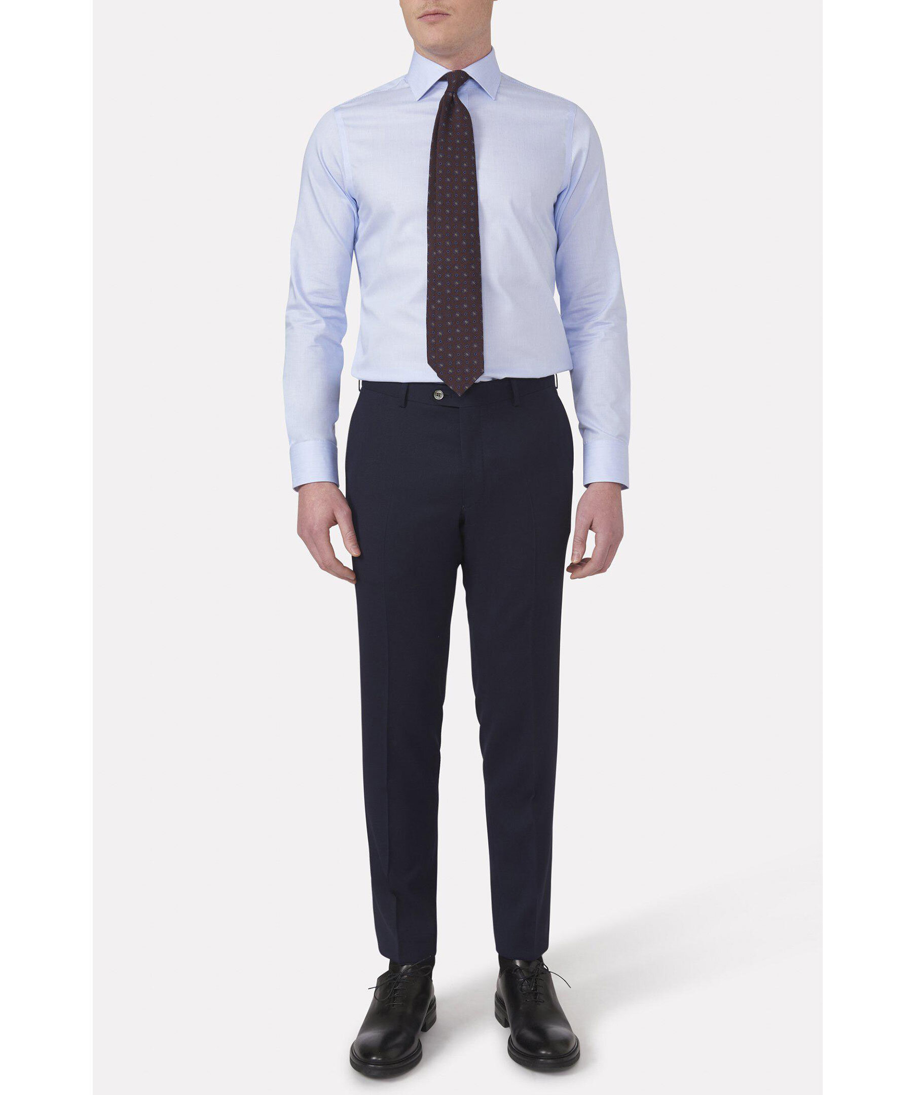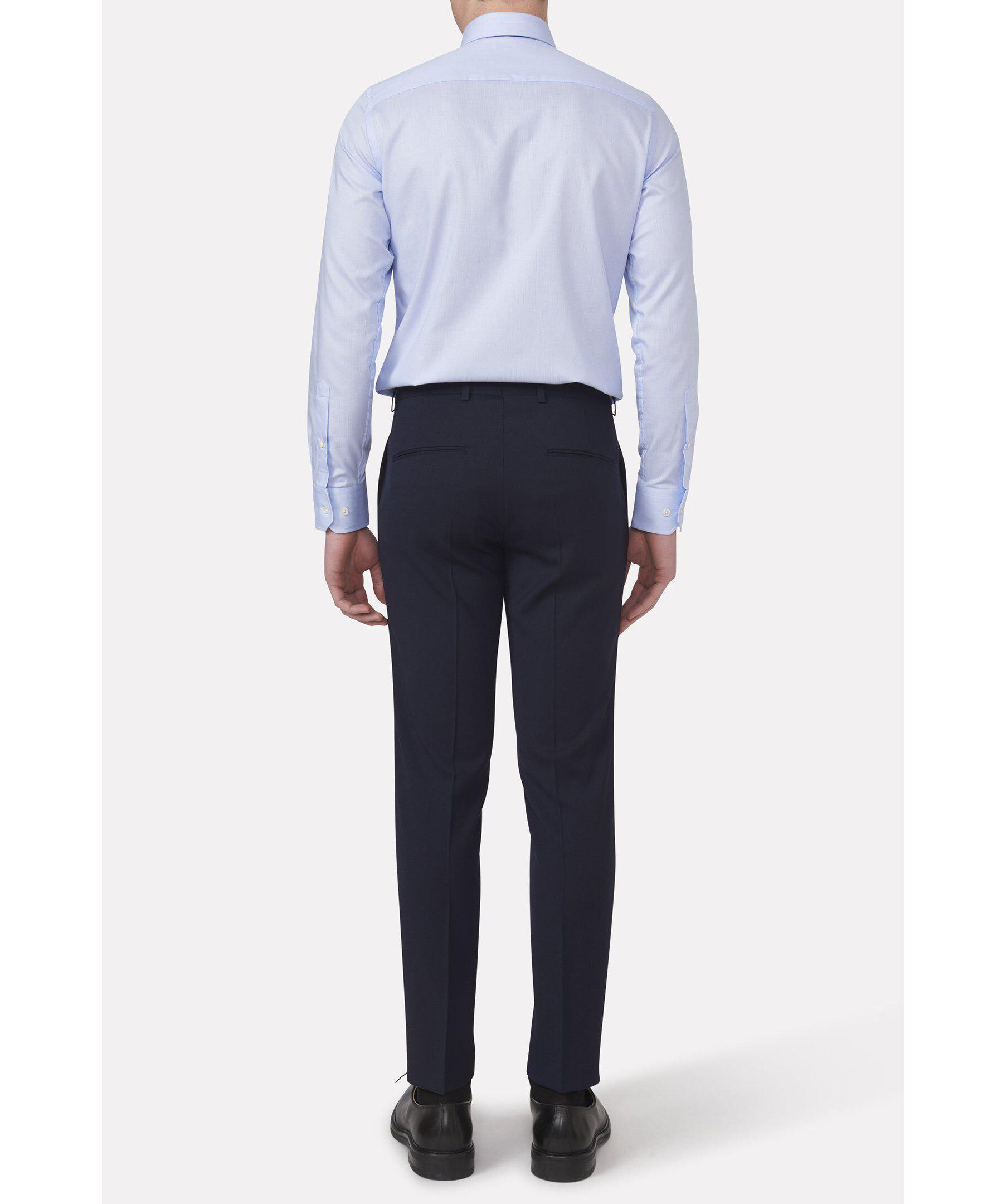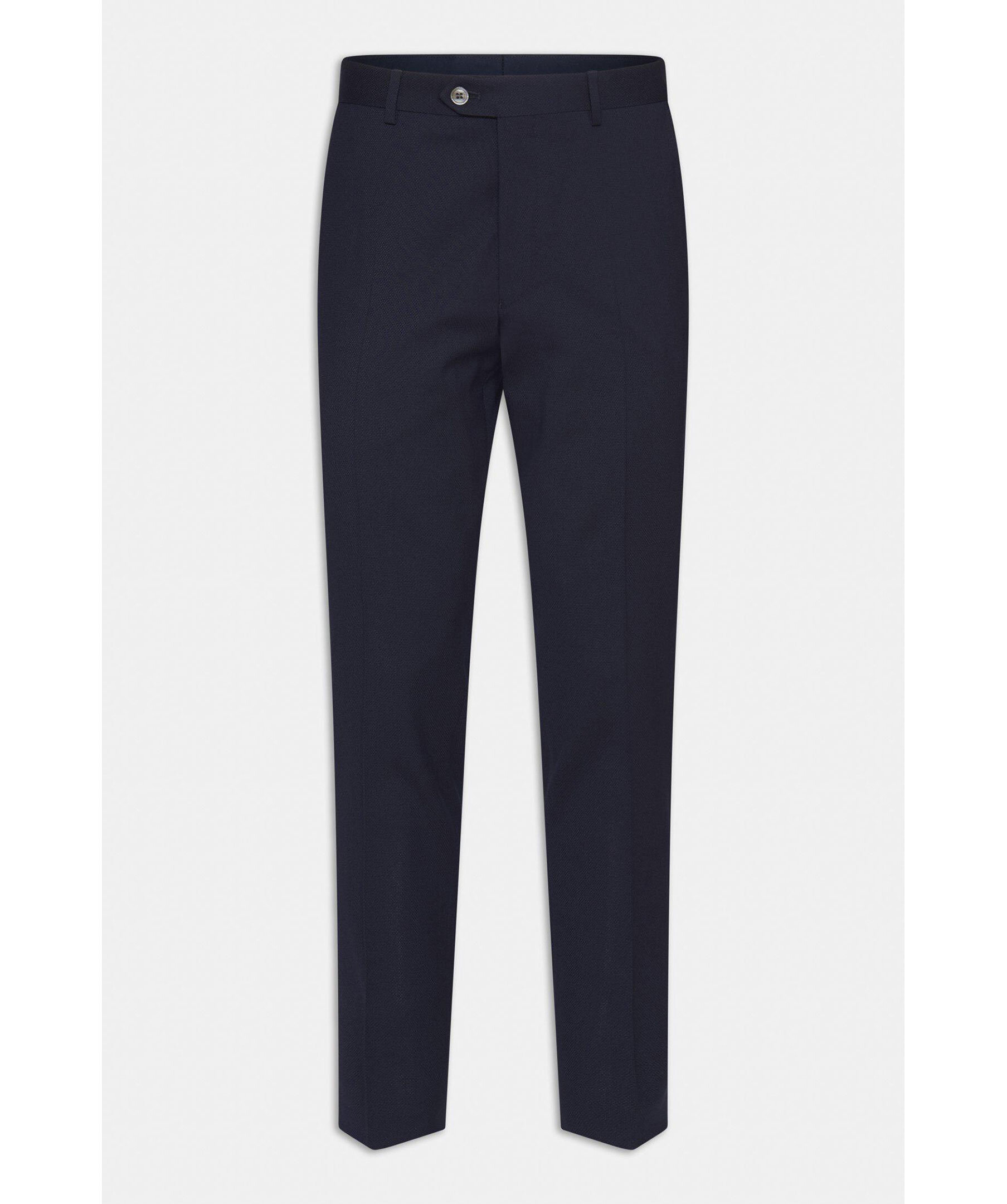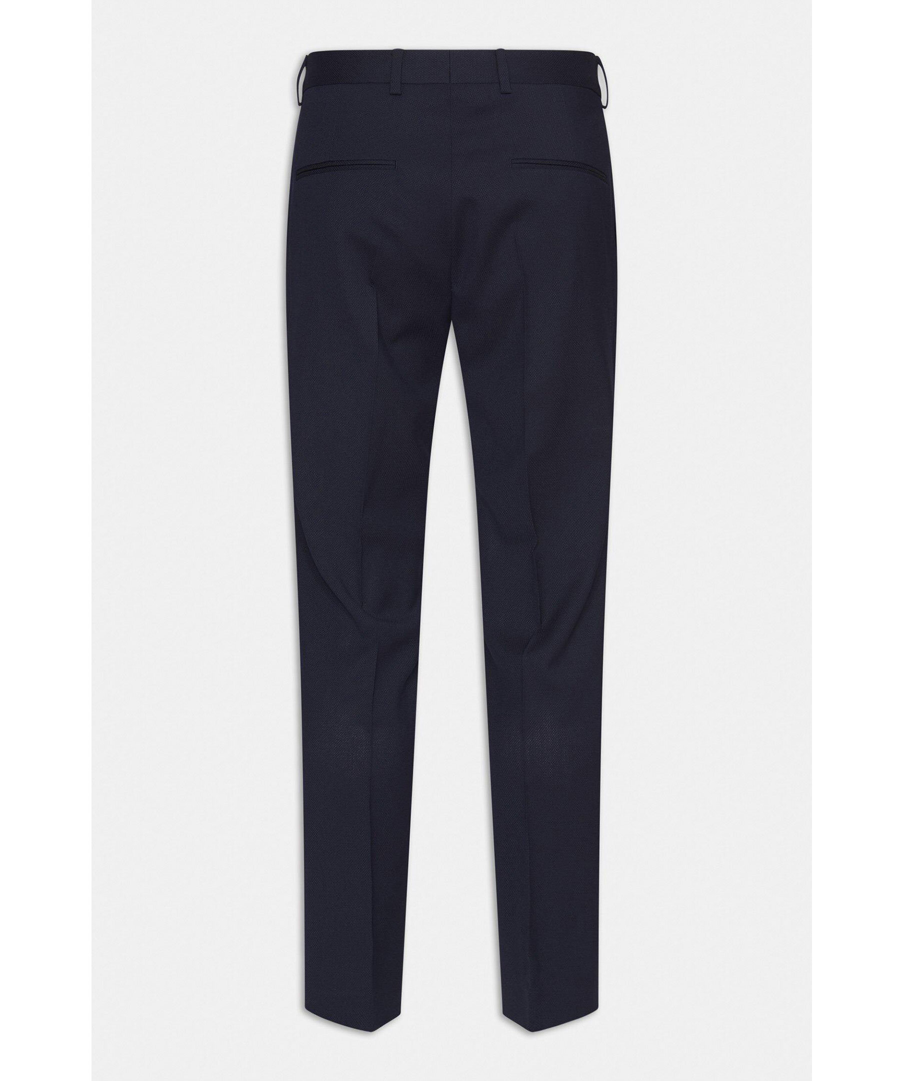 Ullbyxor med elegant mikrostruktur. Den här modellen har en smal passform, normalhög midja och en benlängd där byxan slutar precis ovanför skon och får ett naturligt fall utan bryt. Matcha med kavajen Ego för en komplett kostym.