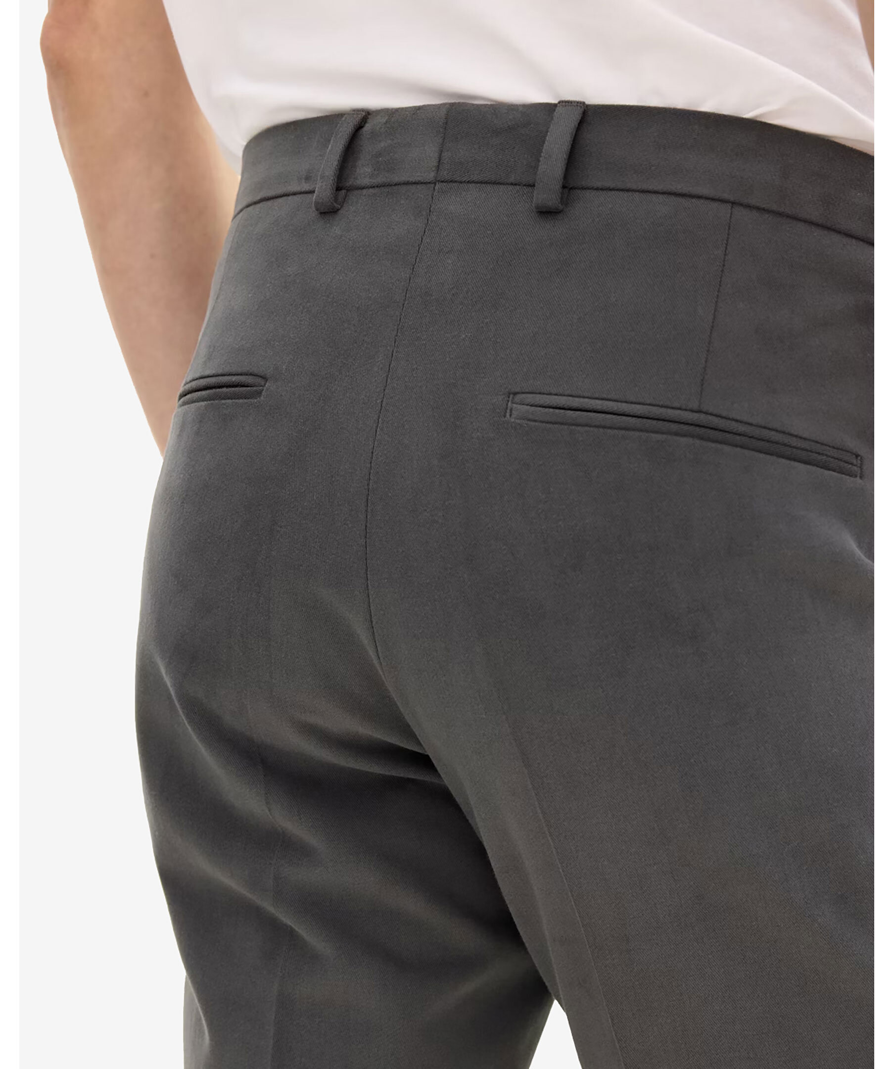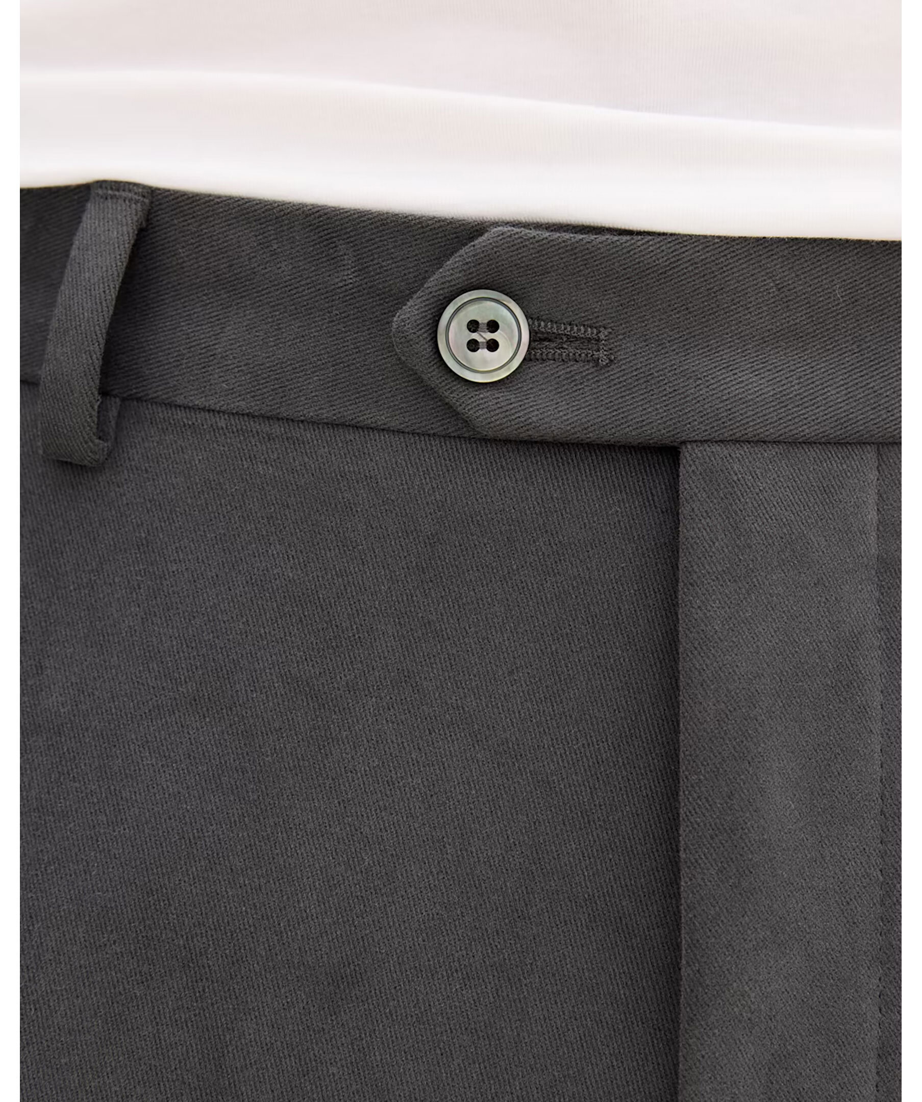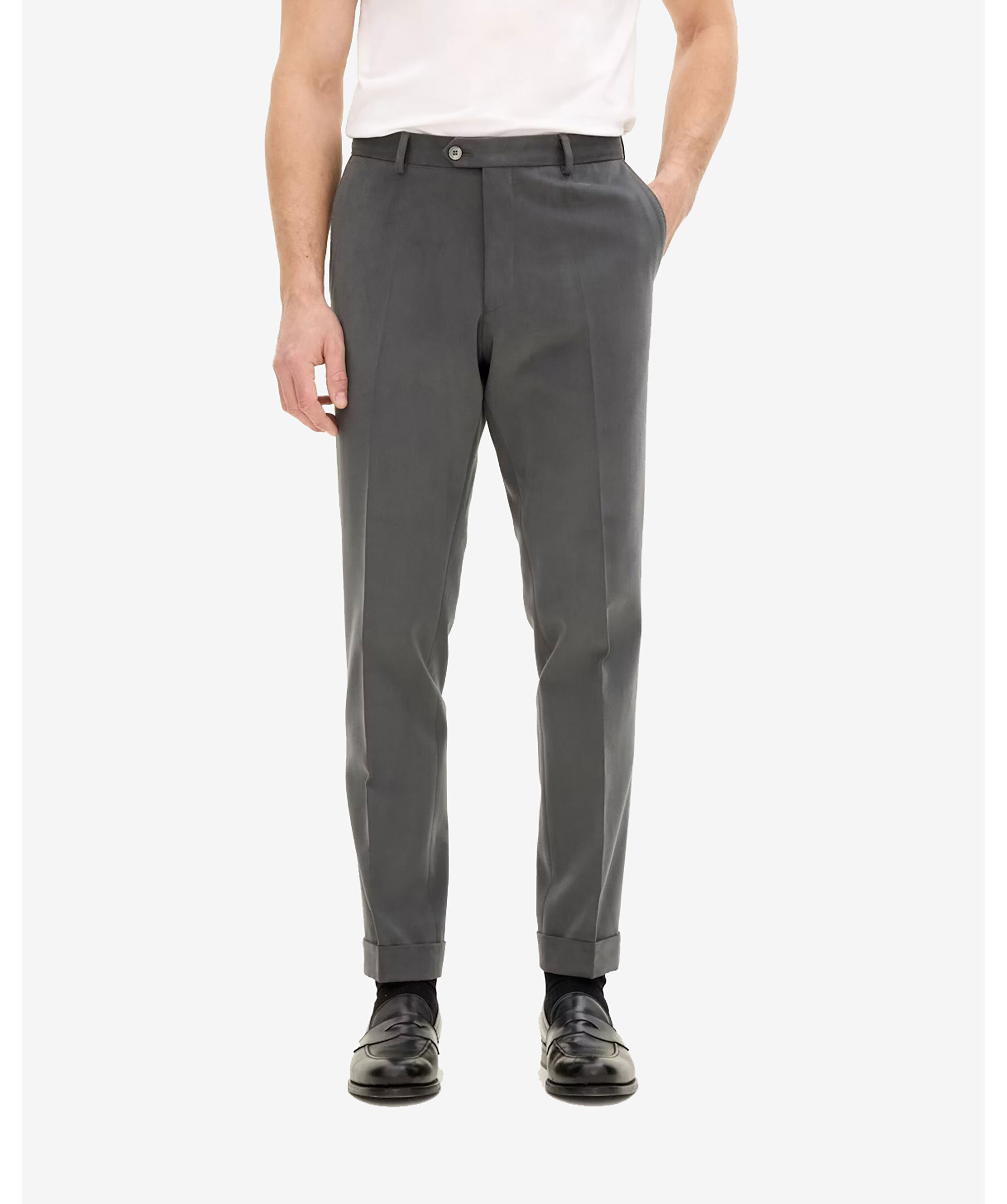 Gråa dressade byxor med smal passform från Oscar Jacobson. Uppslag i benslut och normalhög midja. Tillverkade i semi-formell kvalitet av borstad bomullstwill som ger både stil och komfort. Den mörkgrå färgen skapar ett sofistikerat intryck och gör byxorna perfekta för både kontoret och mer uppklädda tillfällen.