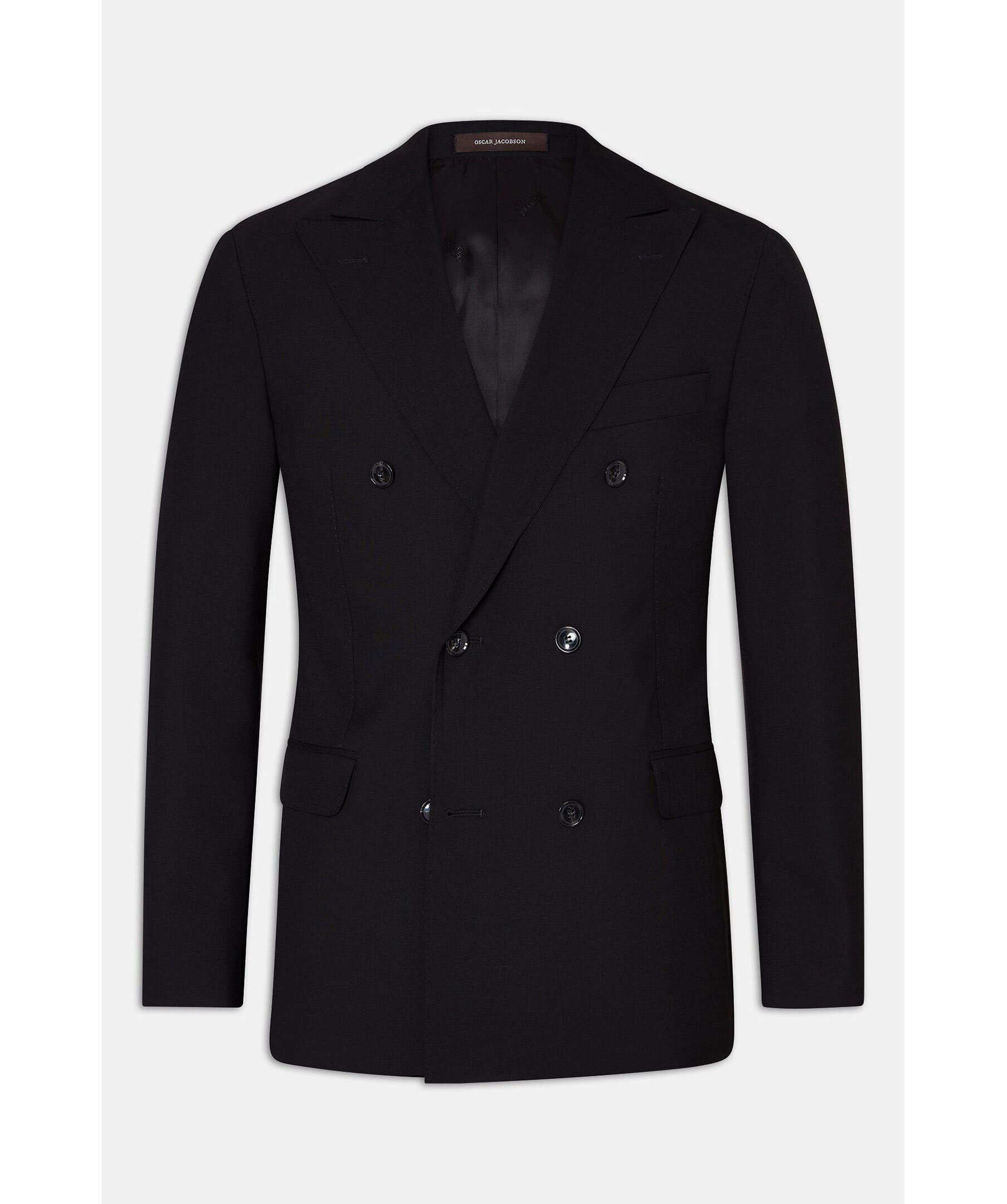Klassisk dubbelknäppt kavaj i normal passform med spetsiga slag och mjuk konstruerad axel. Tillverkad i slät Super 120’S ull. För en tredelad kostym: Lägg till Diego byxa och Carlo väst.