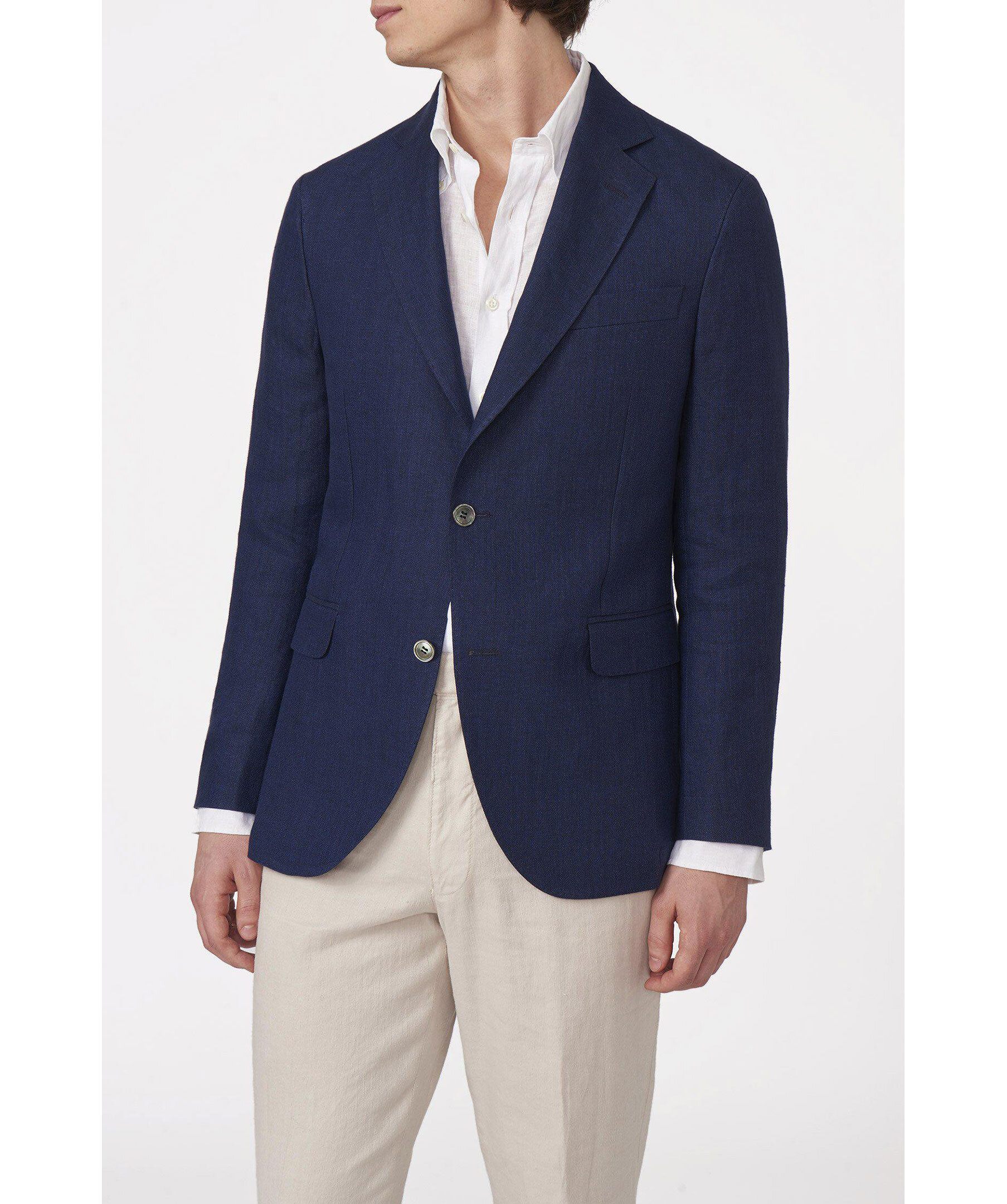 Enkelknäppt kavaj med halvfodrad insida och ett mjukt konstruerat axelparti som bidrar till ökad komfort och ett ledigare uttryck. Här i vårt populäraste italienska linnetyg. Kan matchas med följande byxor: - Nico linnebyxor