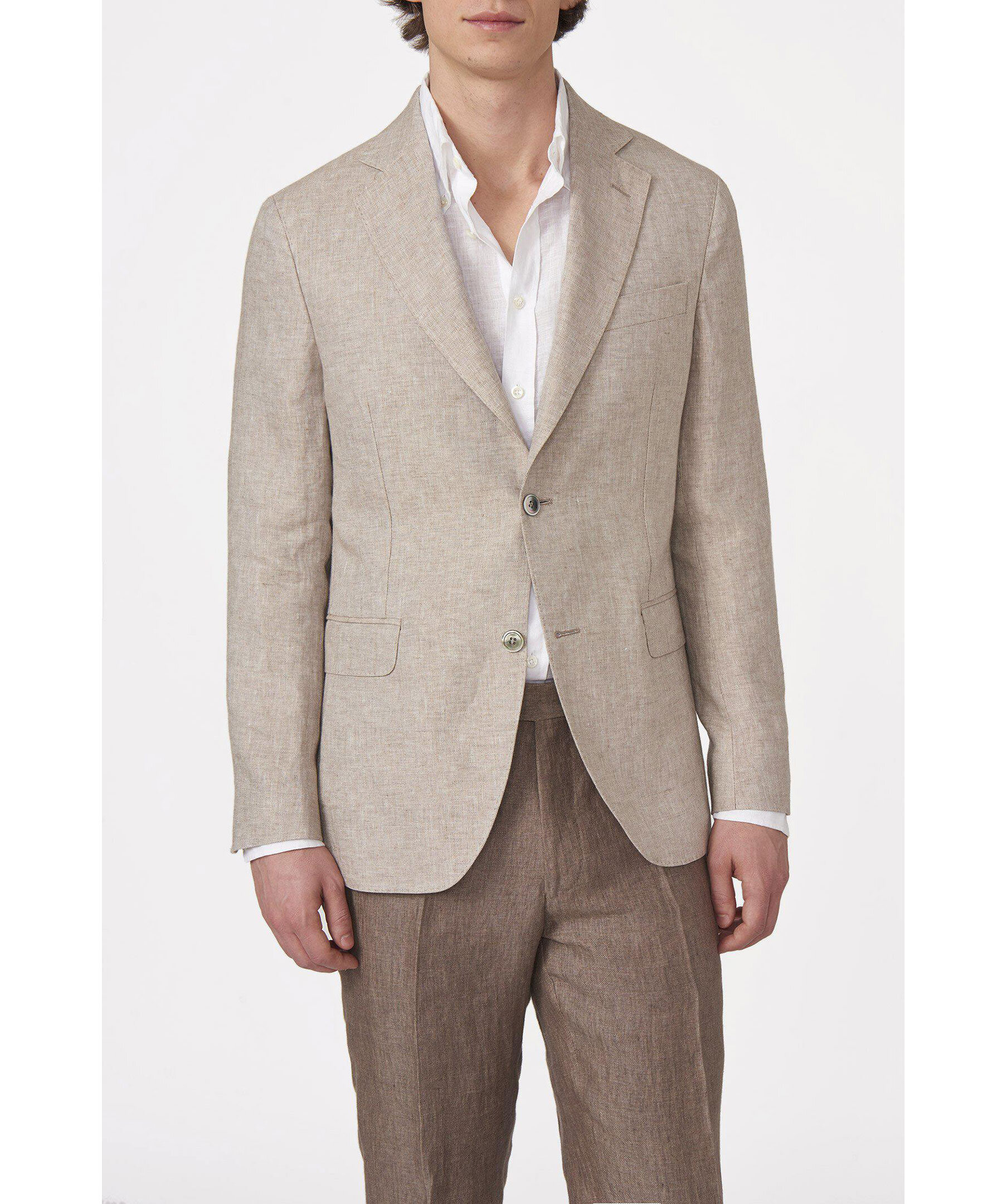 Enkelknäppt kavaj med halvfodrad insida och ett mjukt konstruerat axelparti som bidrar till ökad komfort och ett ledigare uttryck. Här i vårt populäraste italienska linnetyg. Kan matchas med följande byxor: - Nico linnebyxor