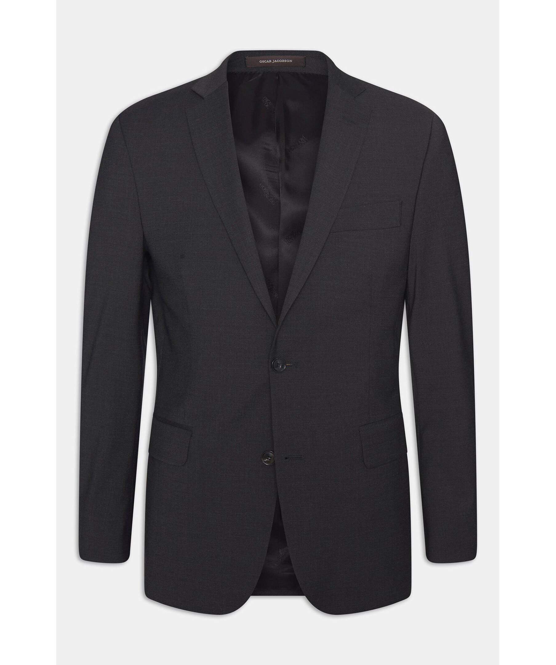 Kavaj i svart, modellen Floyd från Oscar Jacobson. Normal passform med sidslitsar. Tyget är en ullblandning med stretch vilket ger en härlig komfort.
