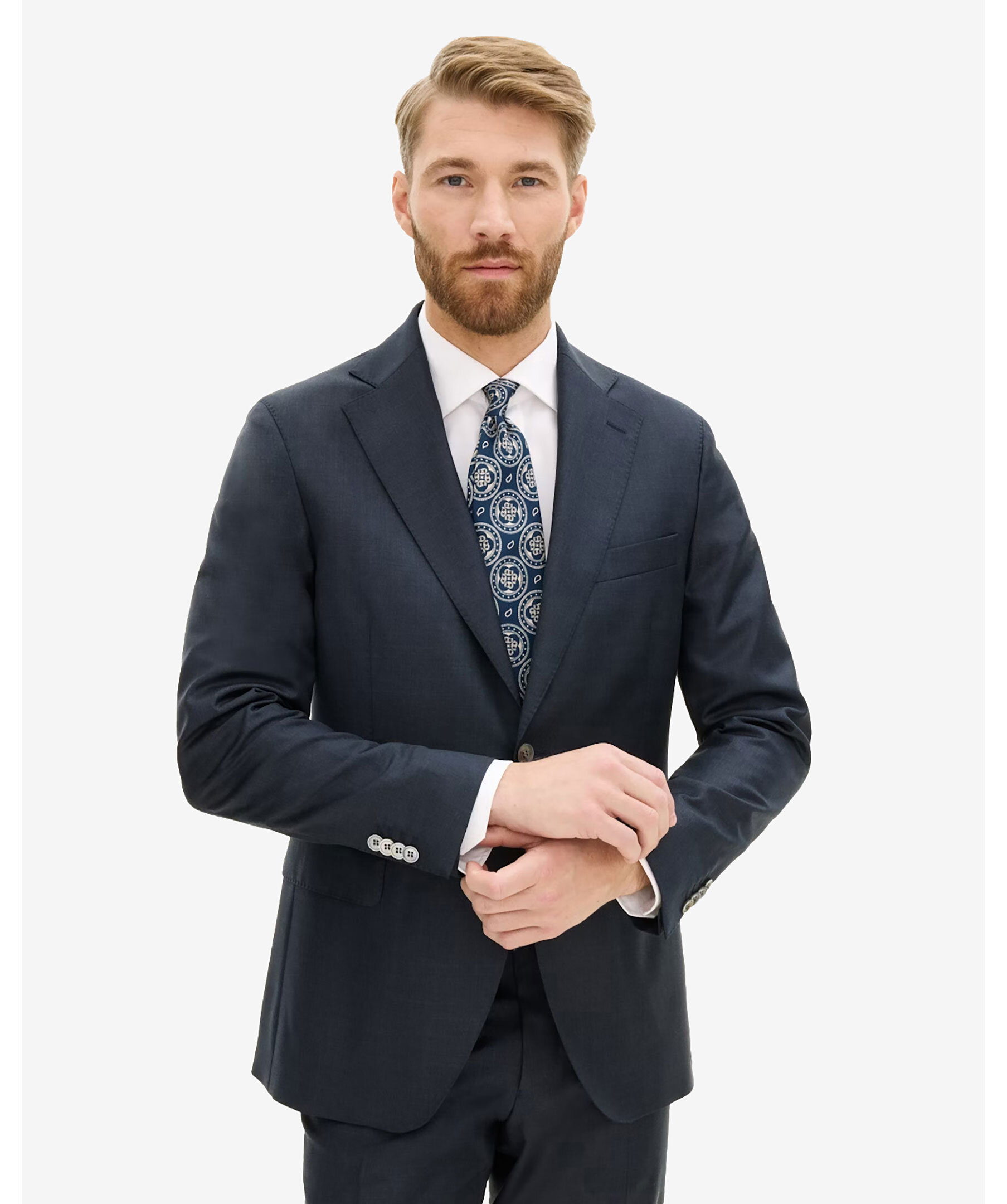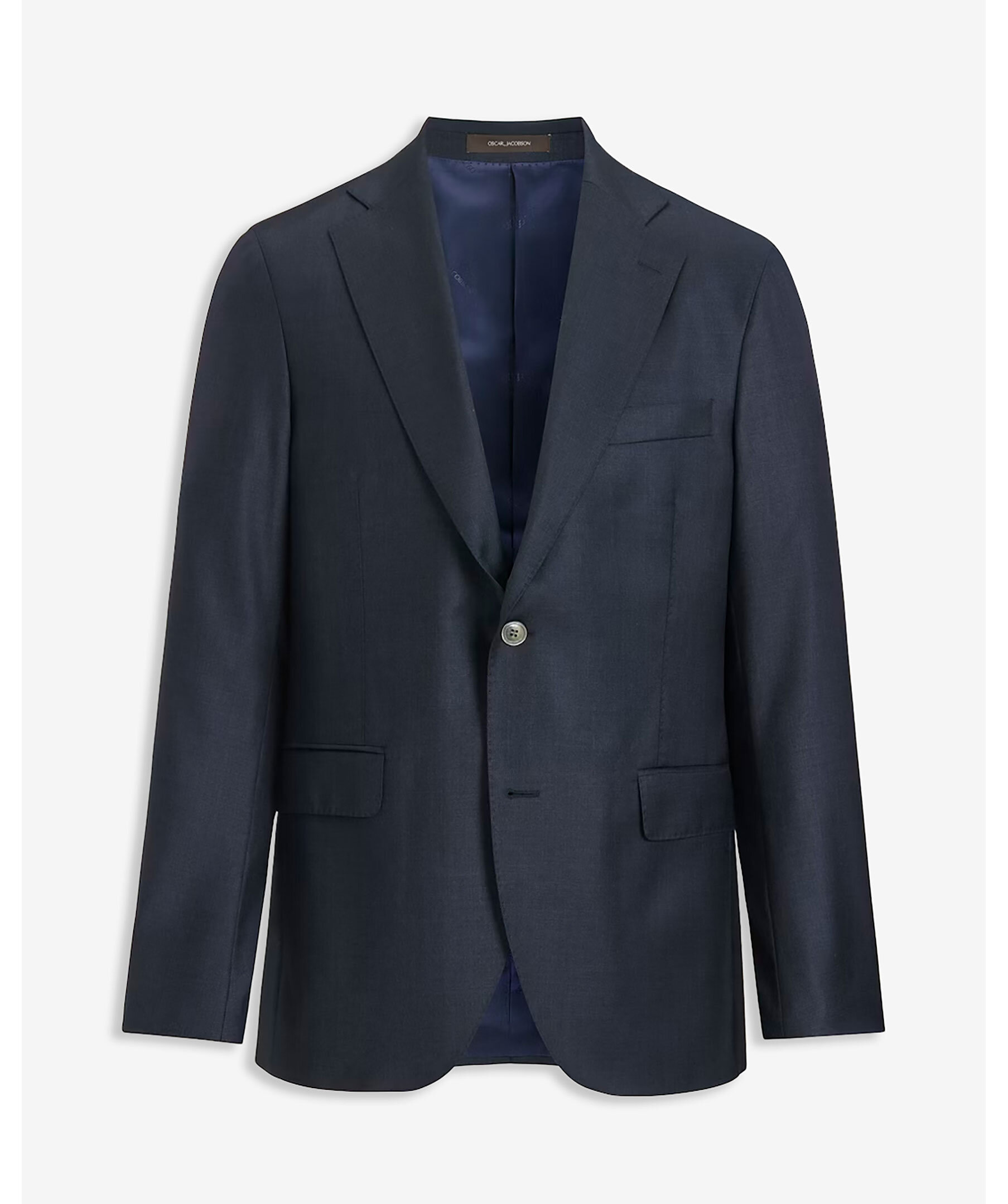 Mörkblå slät kavaj i regular fit från Oscar Jacobson. Kavajen har en stilren look som passar både kontoret och festligare tillfällen. Med klassisk enkelknäppt design och tidlös silhuett balanserar den mellan formell och casual. Gjord i 100% ull.